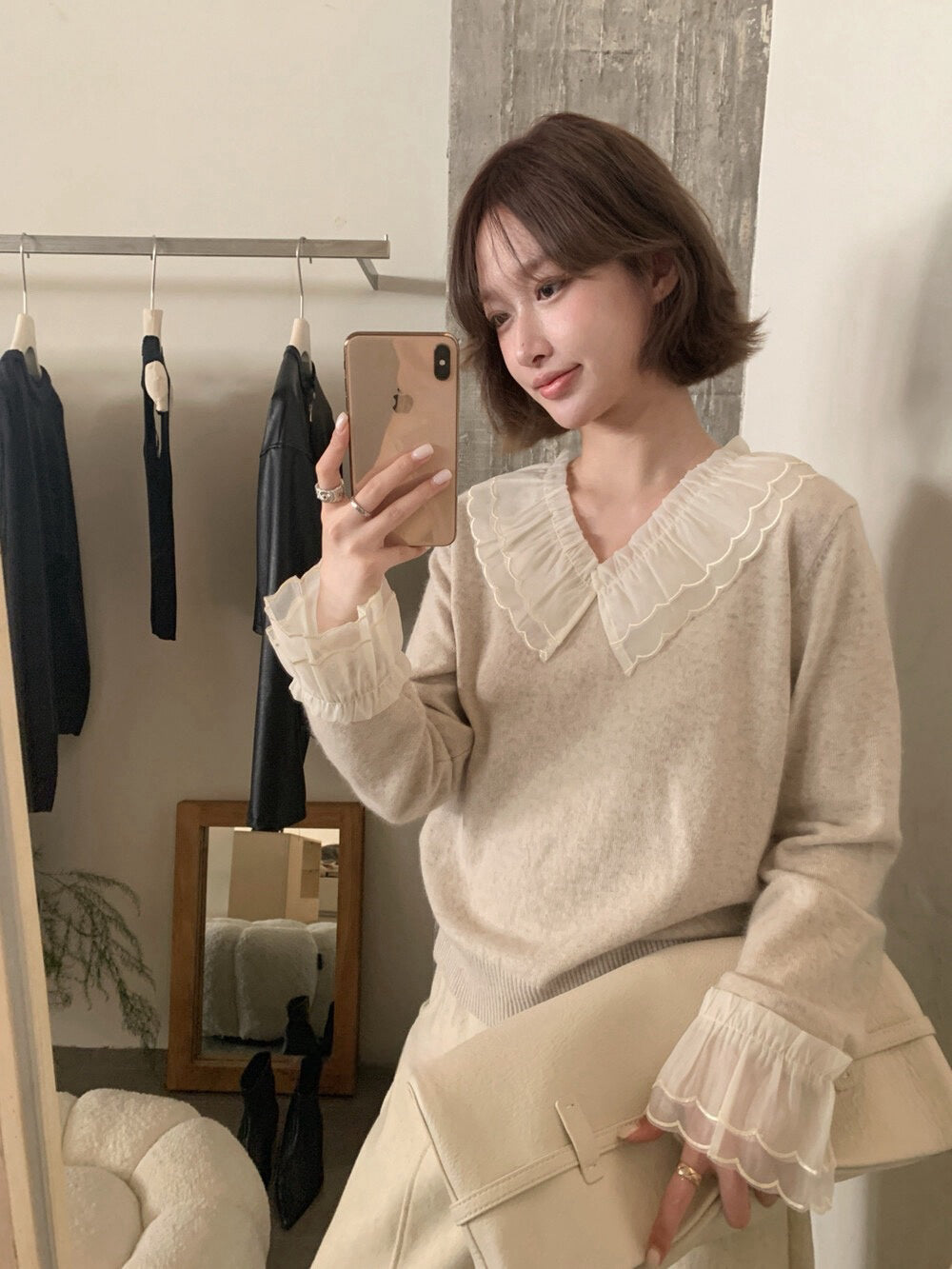 // 20%兔毛雙層荷葉領束袖口毛衣