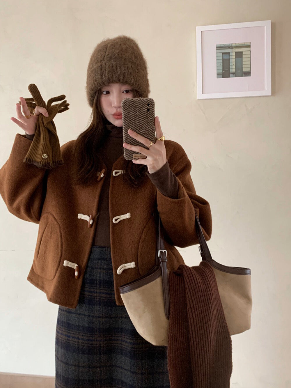 (現貨) // 100%羊毛V領牛角鈕雙面手工外套
