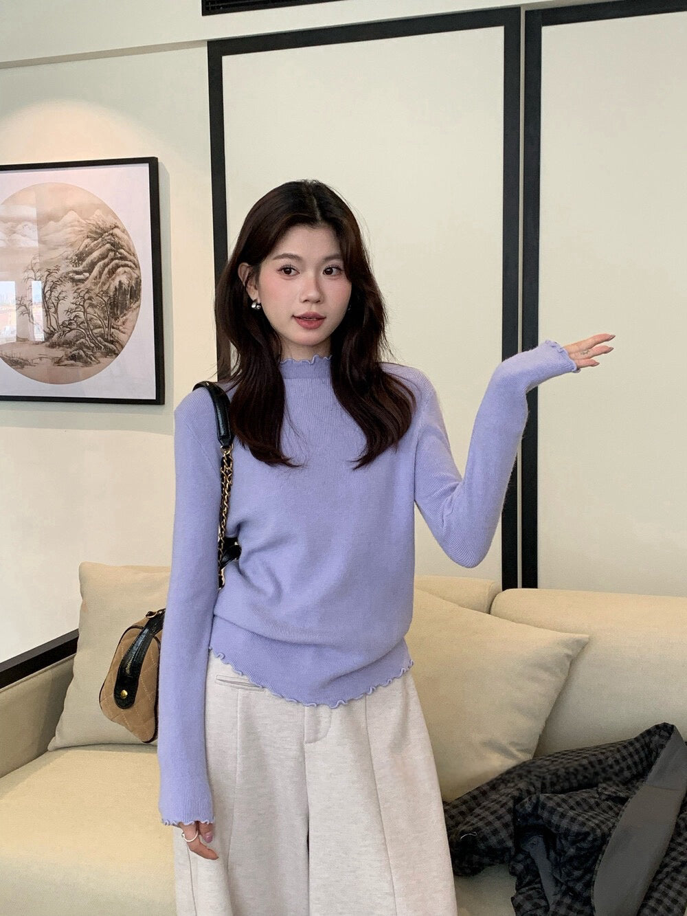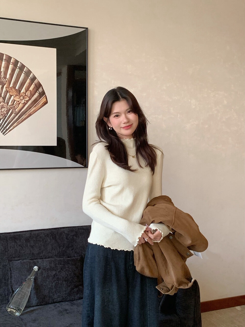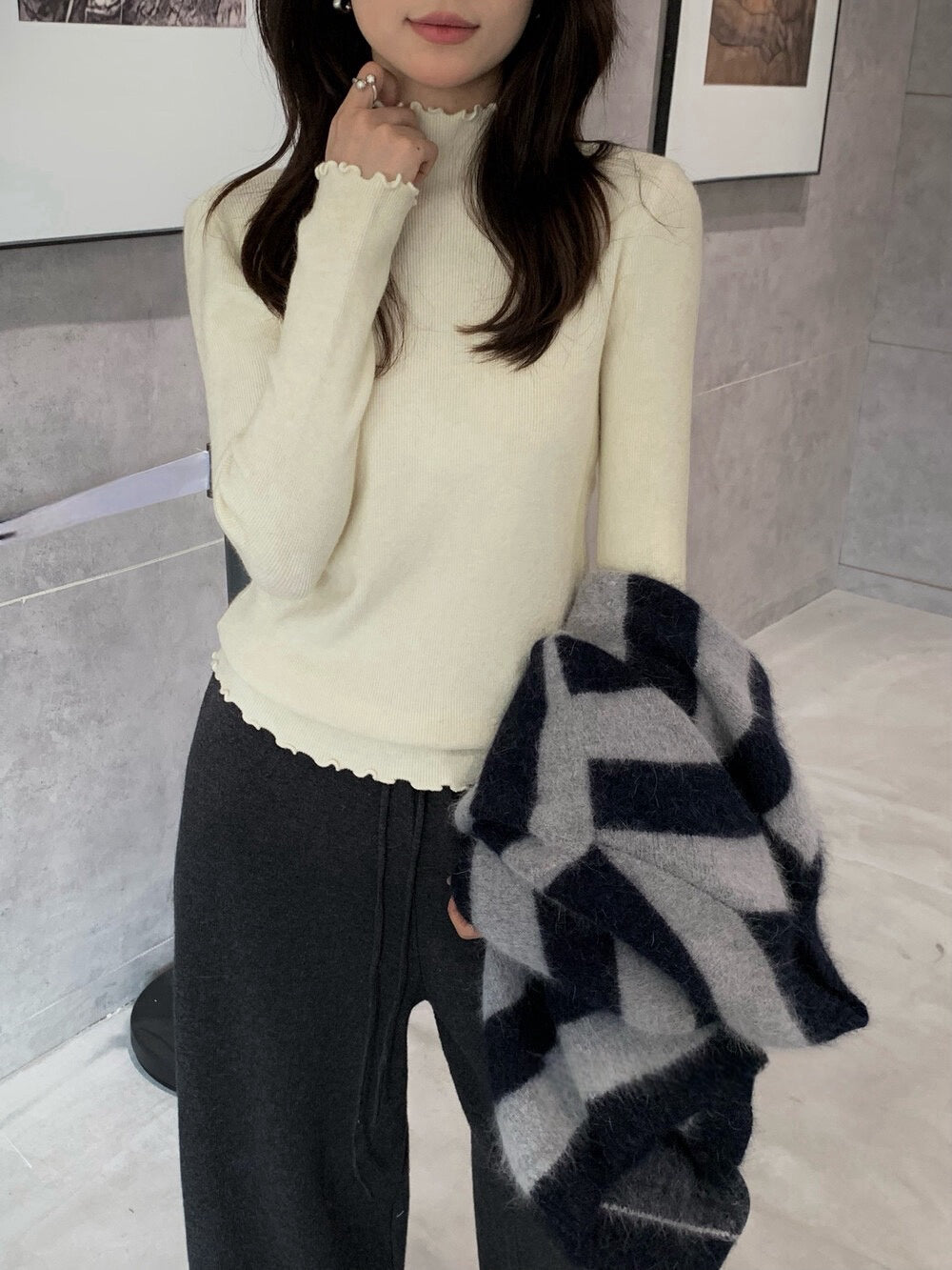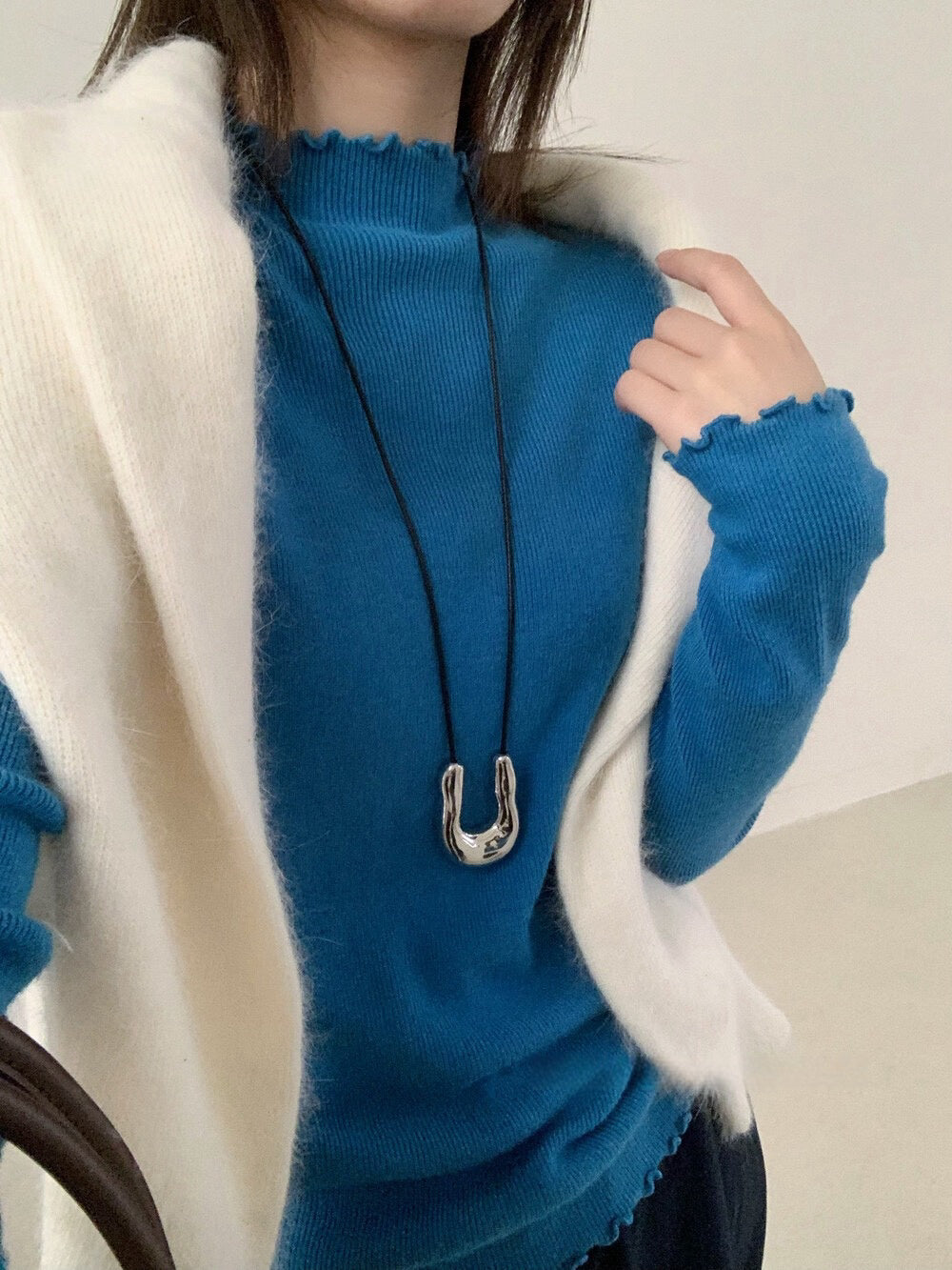 // 人手一件卷卷邊半領針織NT