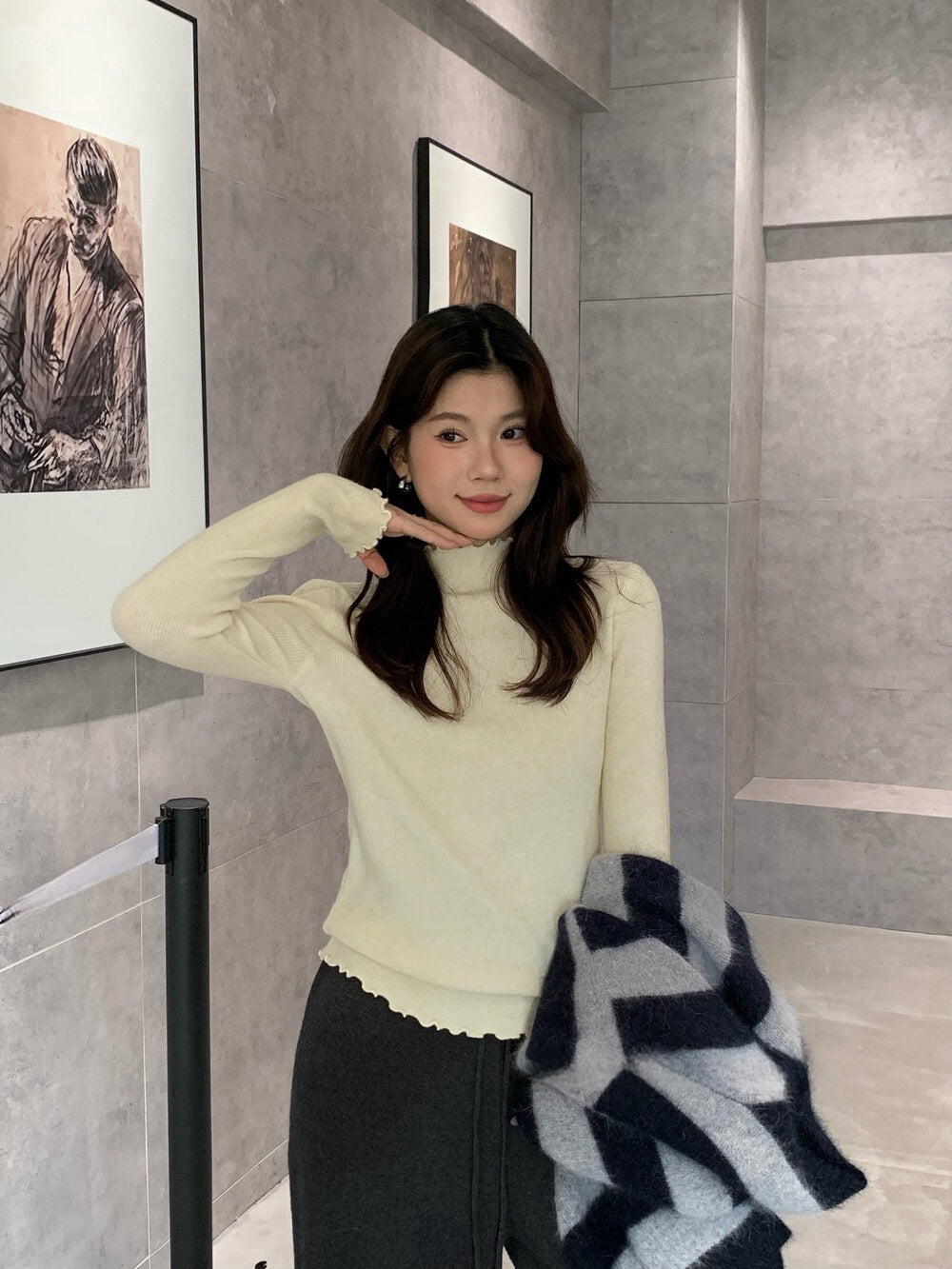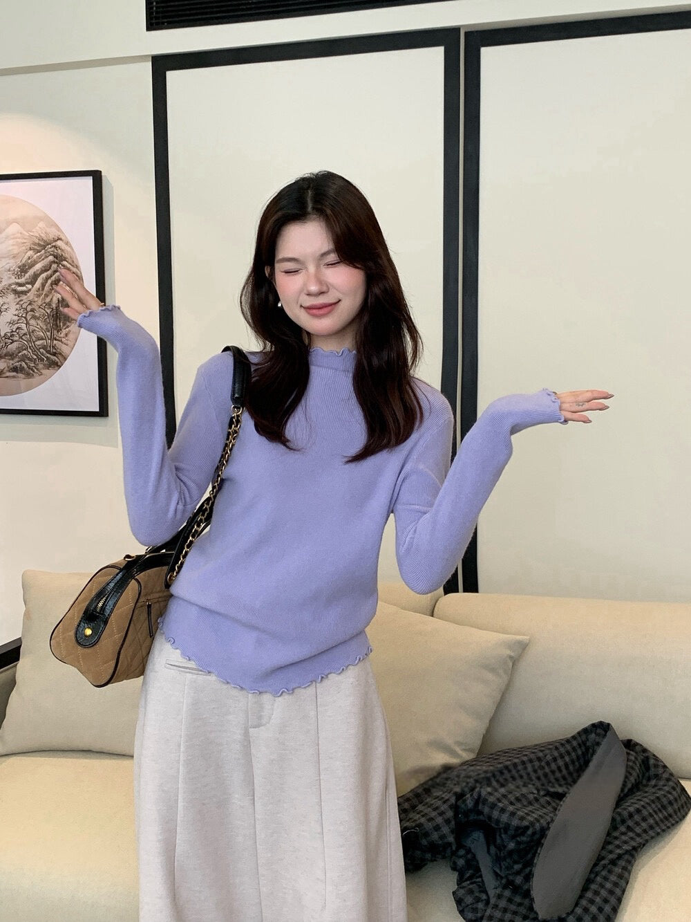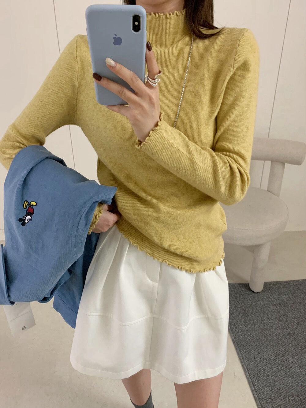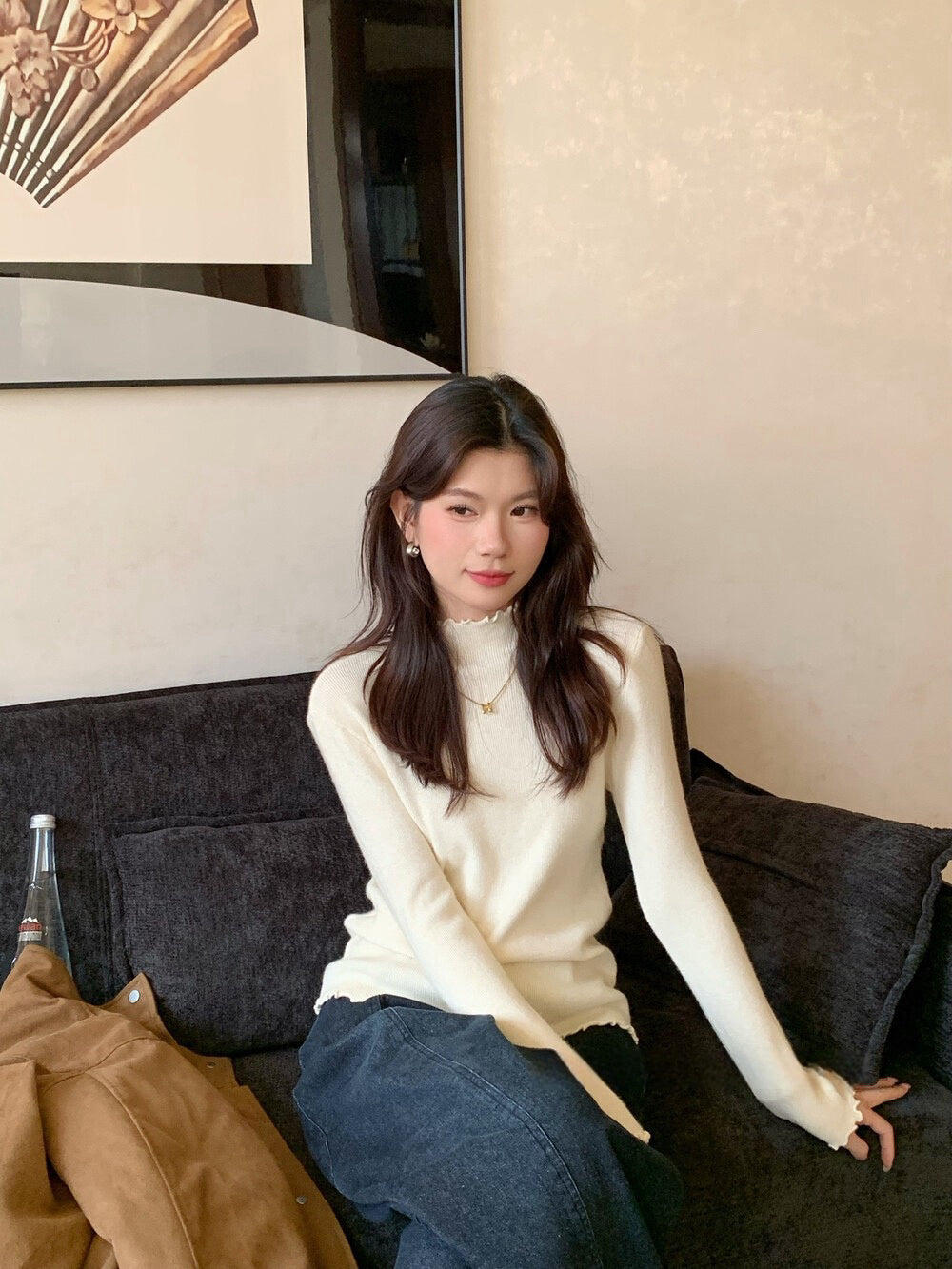 // 人手一件卷卷邊半領針織NT