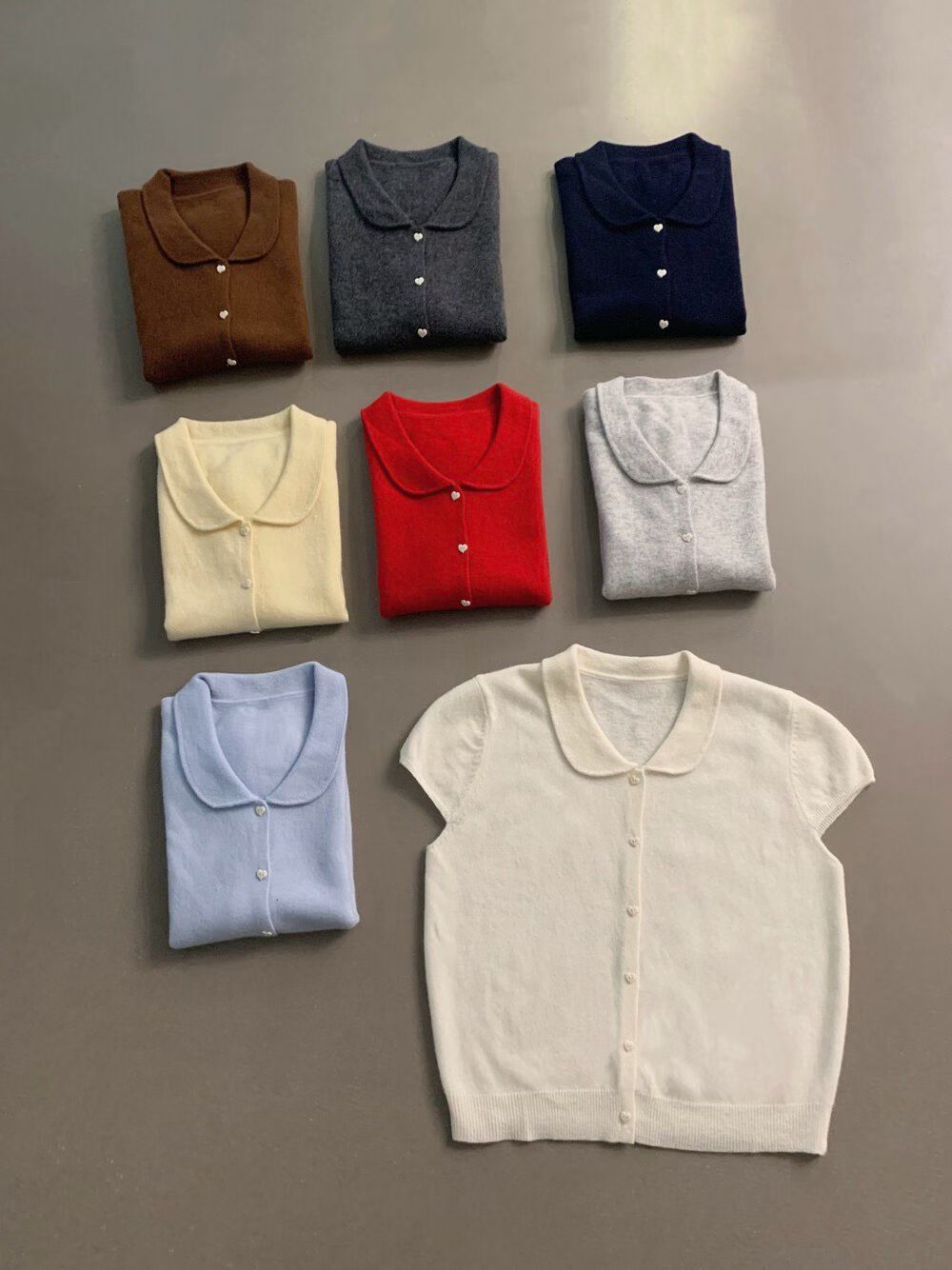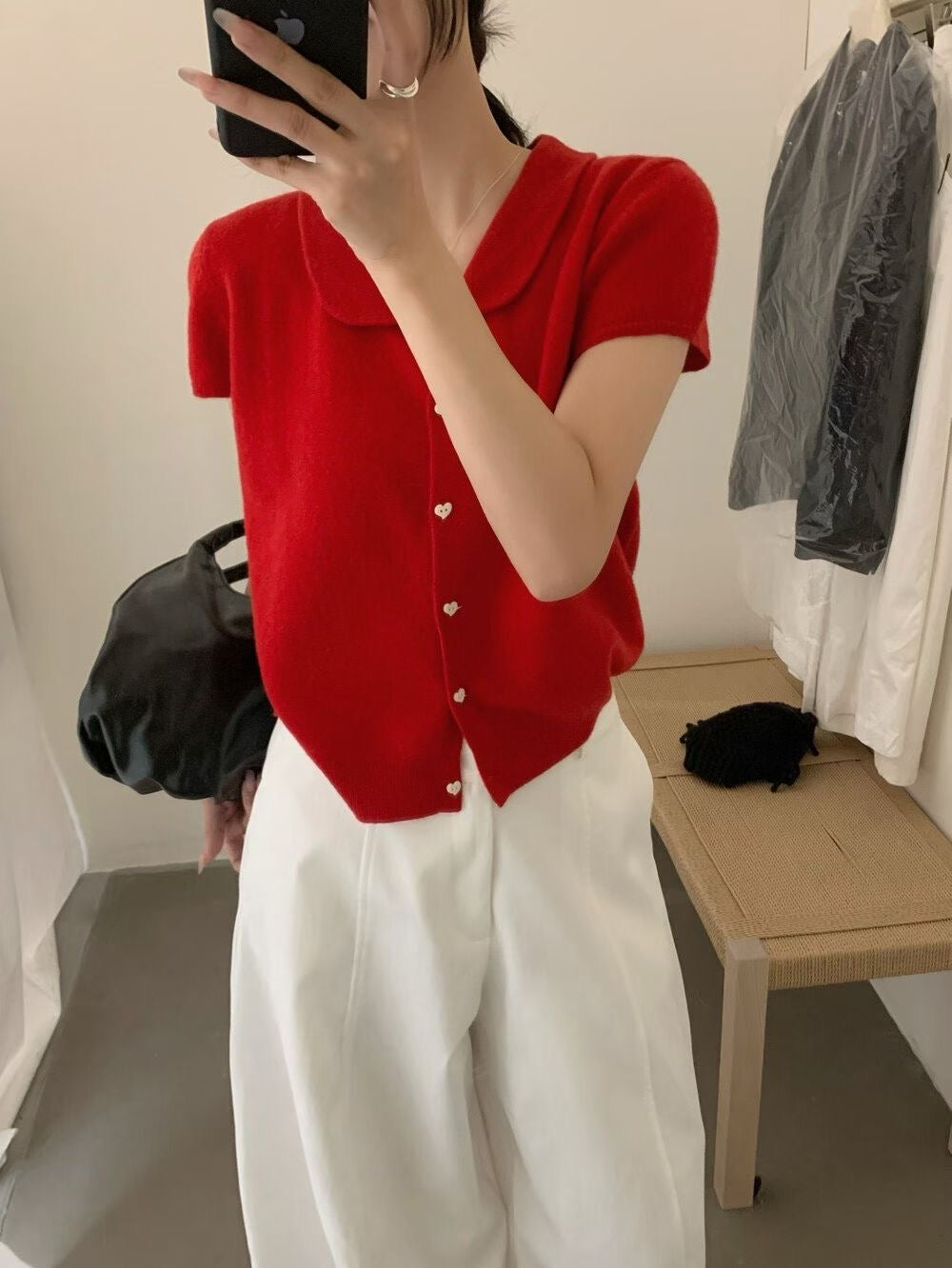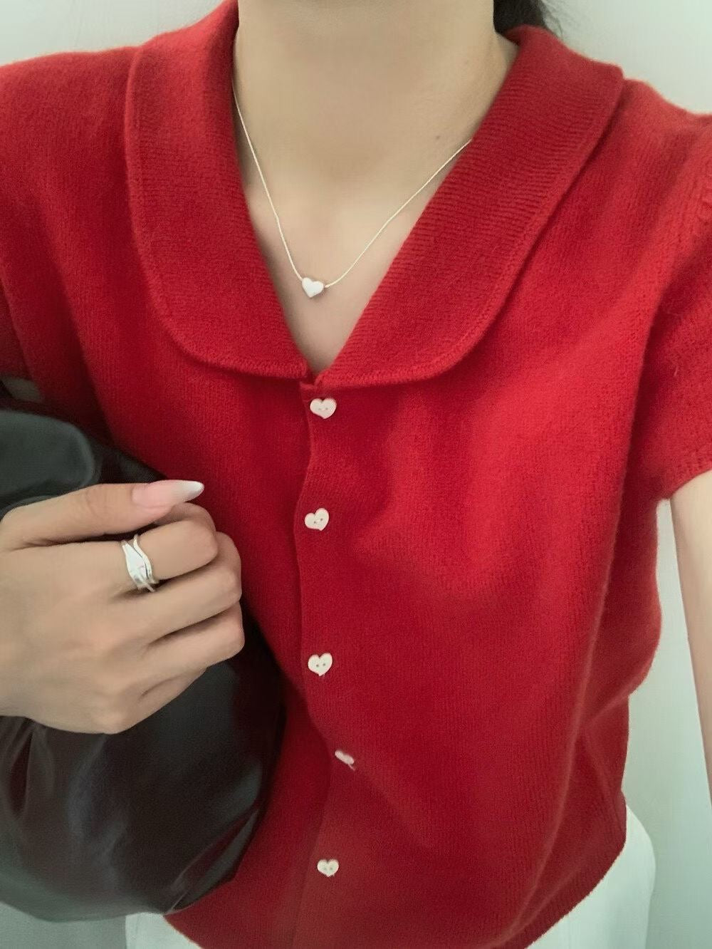 // 全羊毛心心鈕扣圓翻領小短袖NT