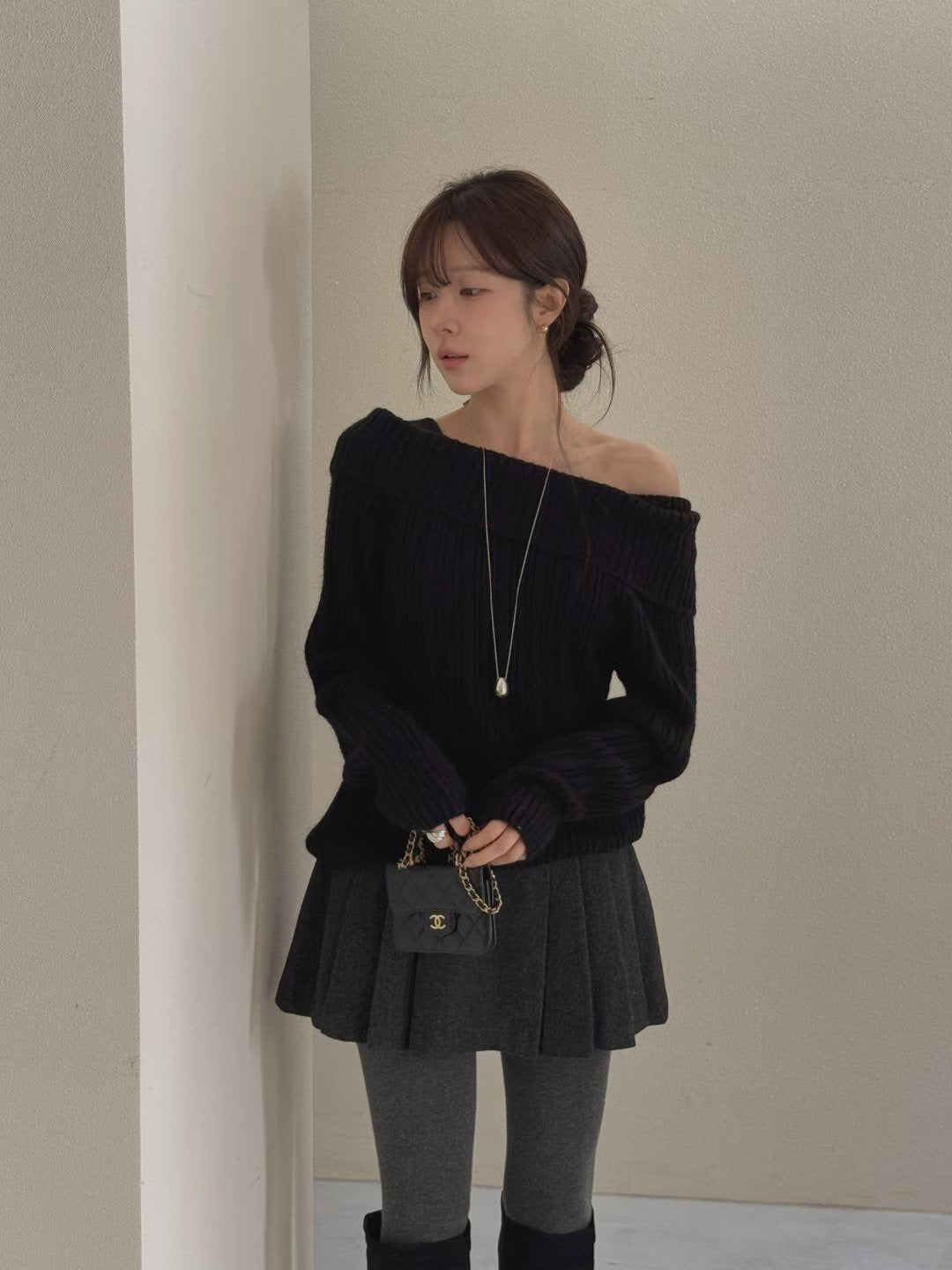 // 可前後兩穿一字領直織紋排扣NT
