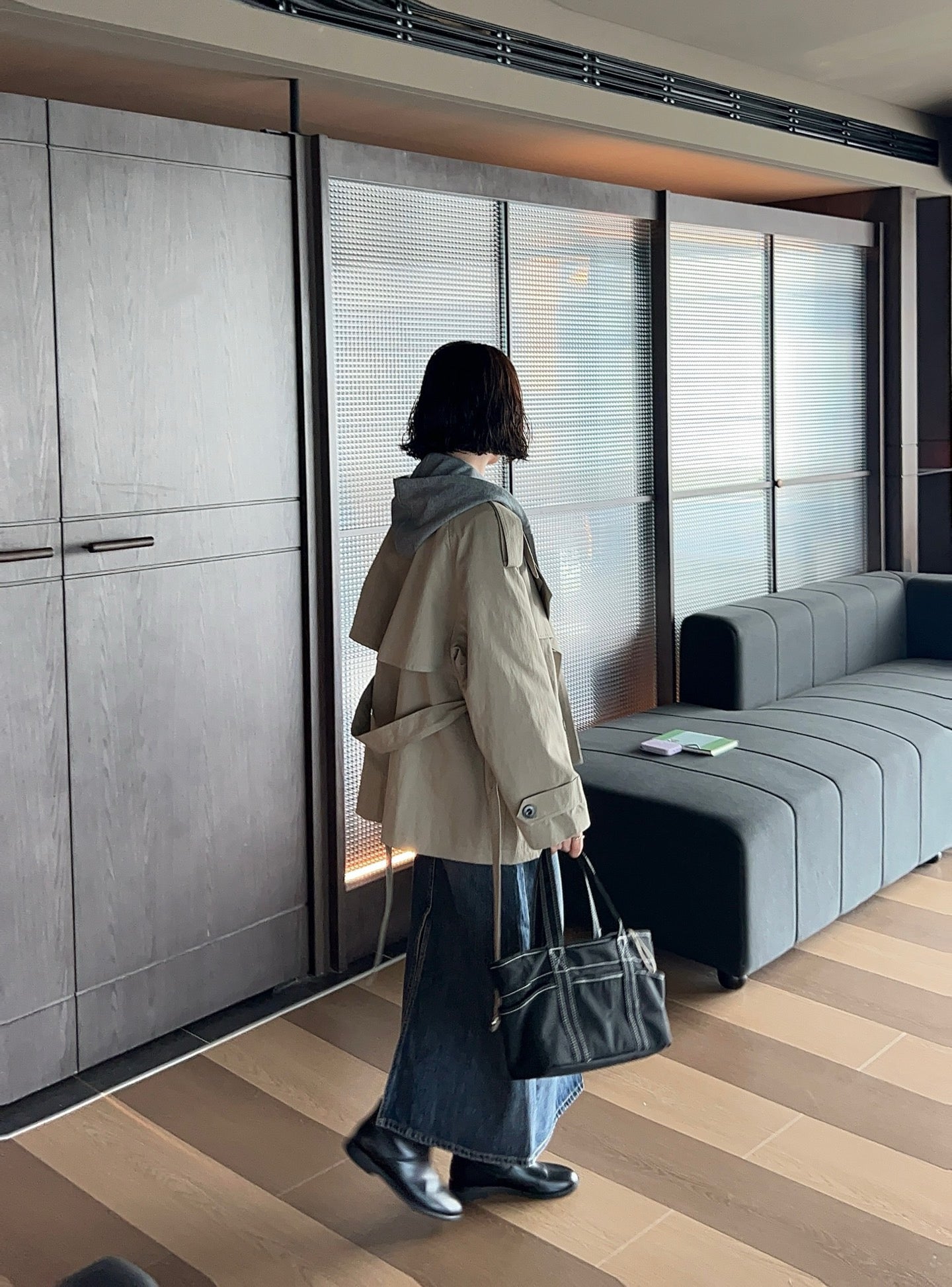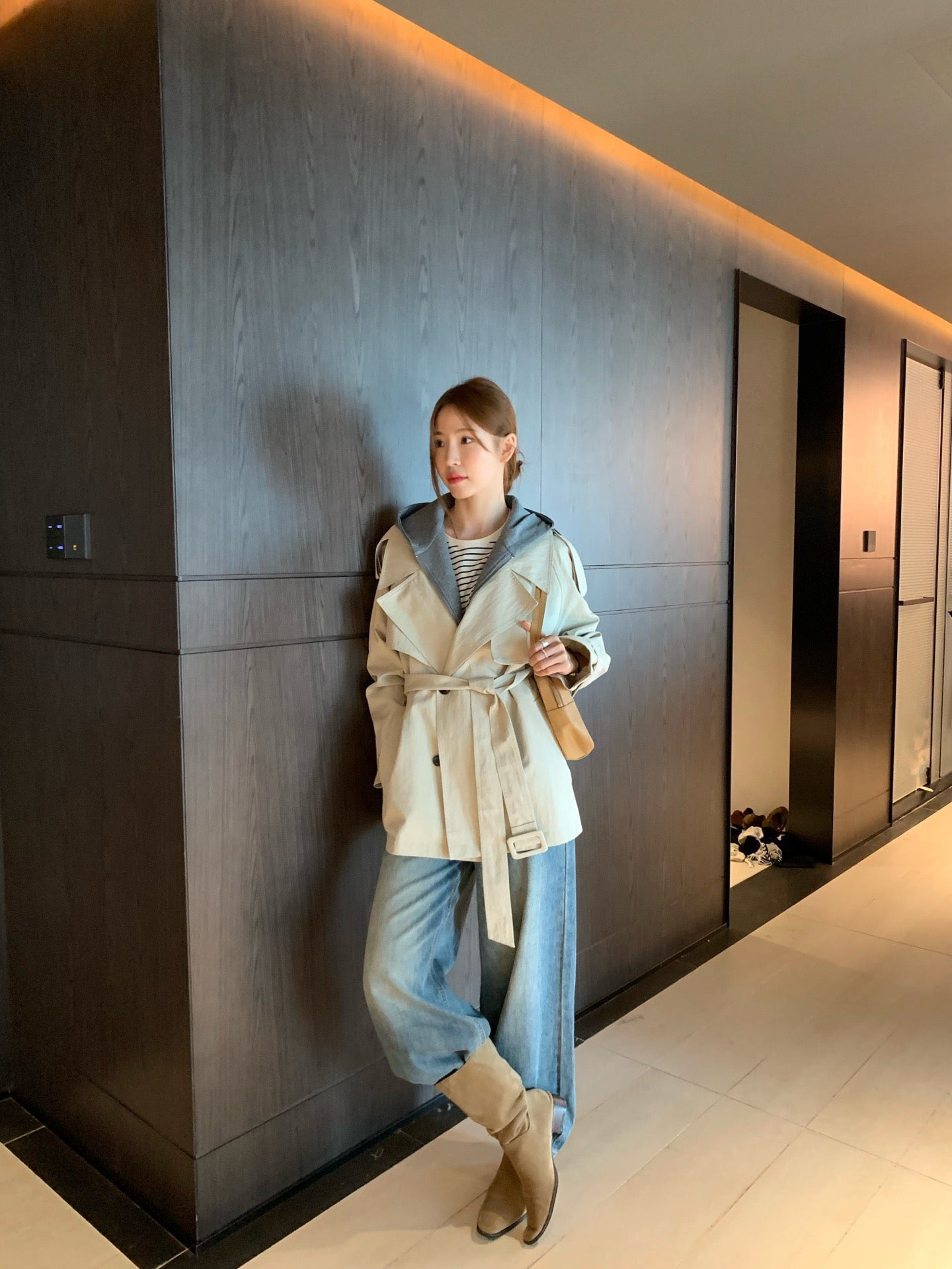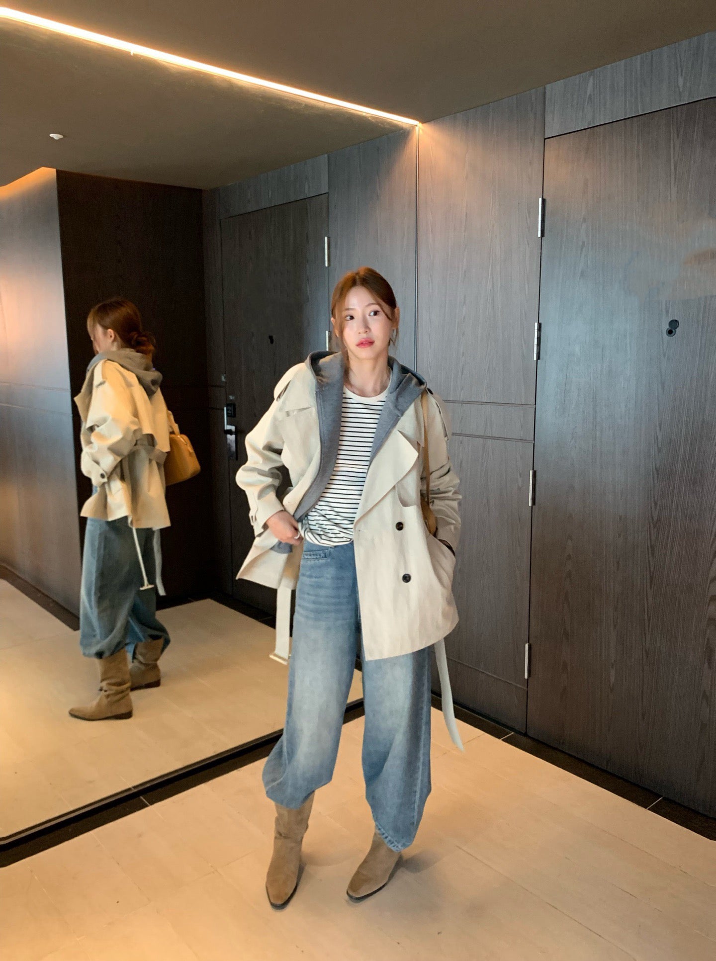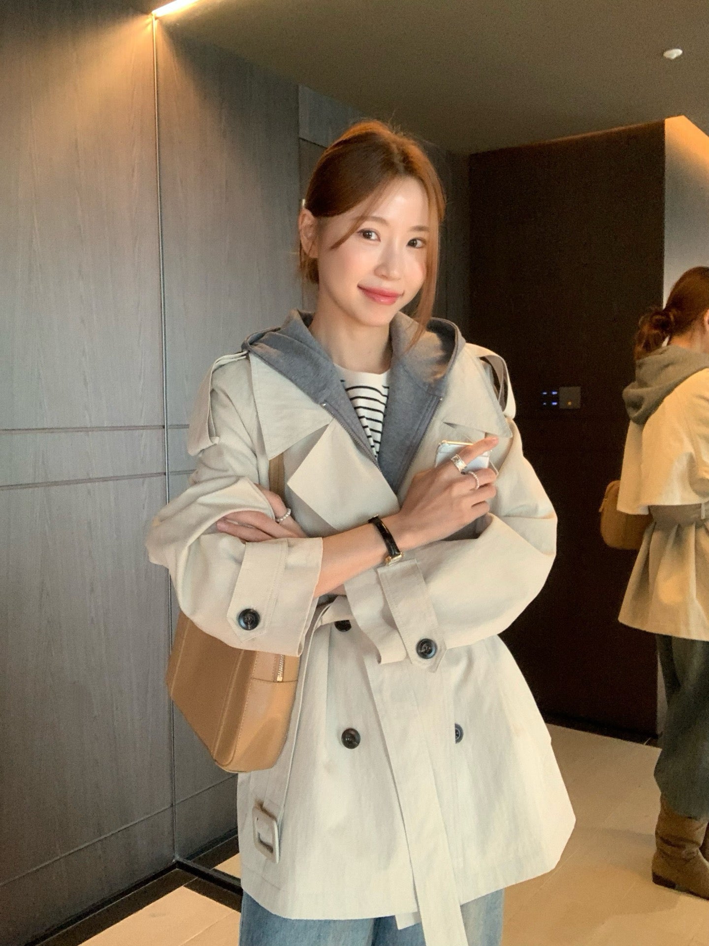 (部分現貨) // 可拆卸連帽衛衣拼接孖襟trench coat