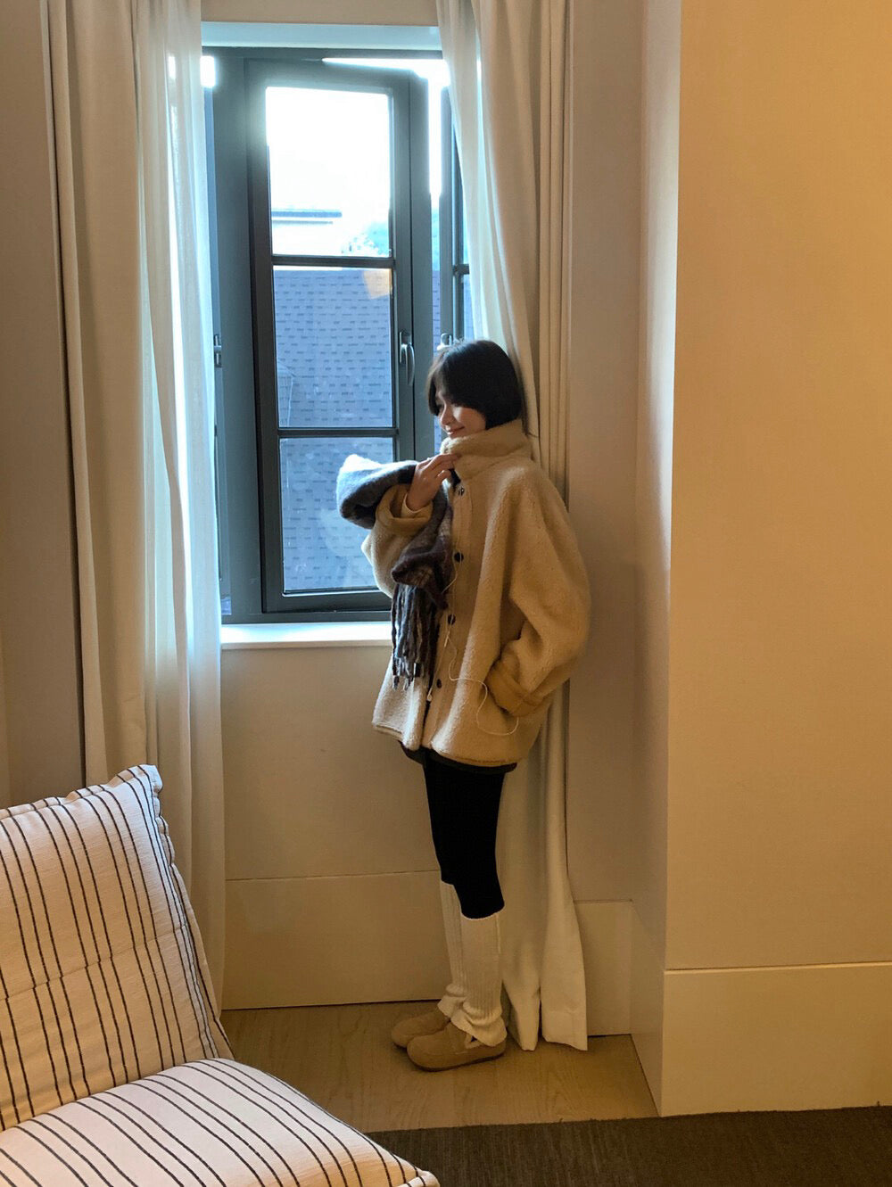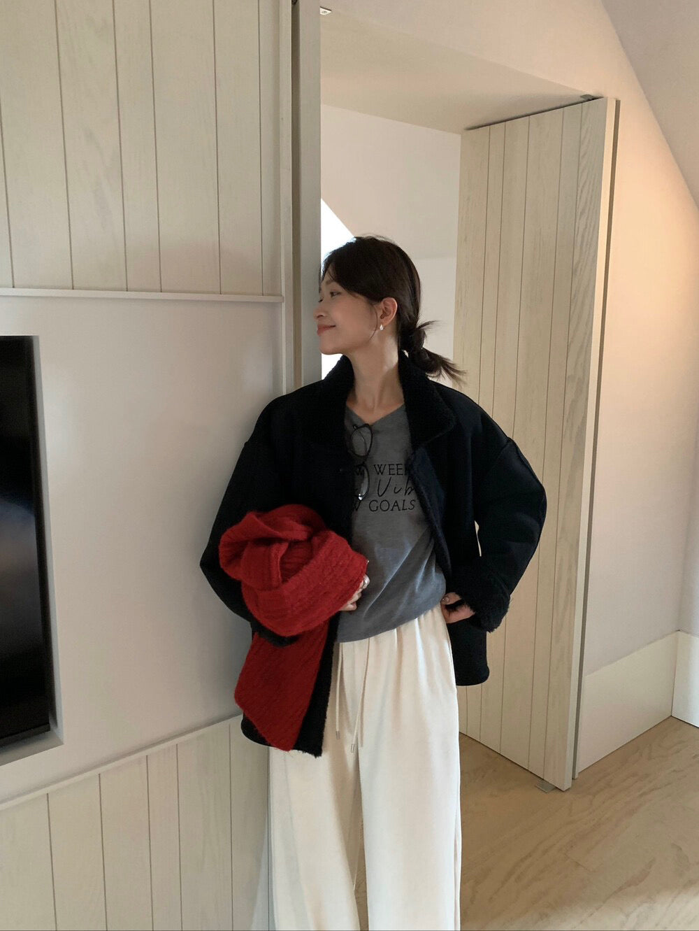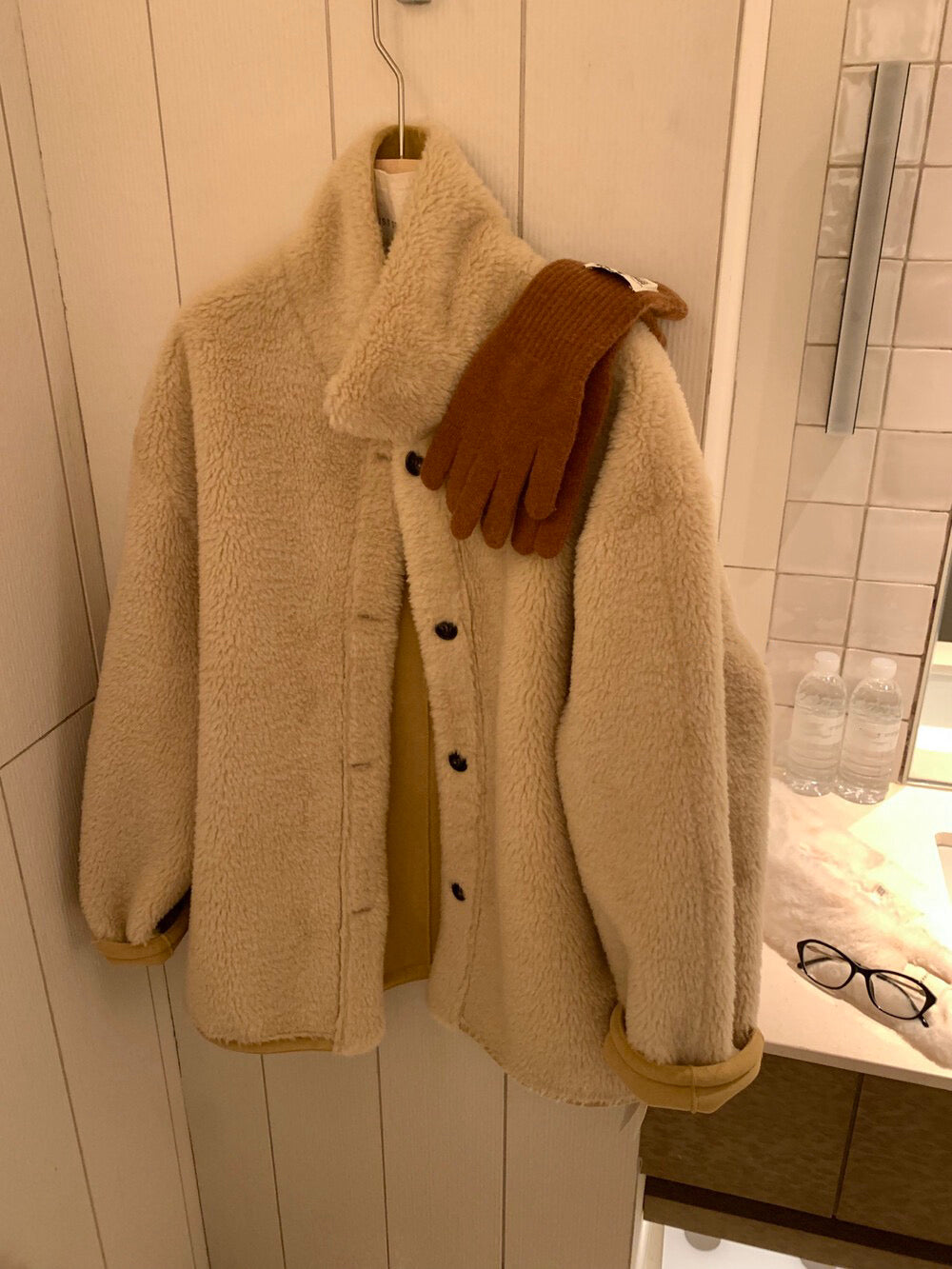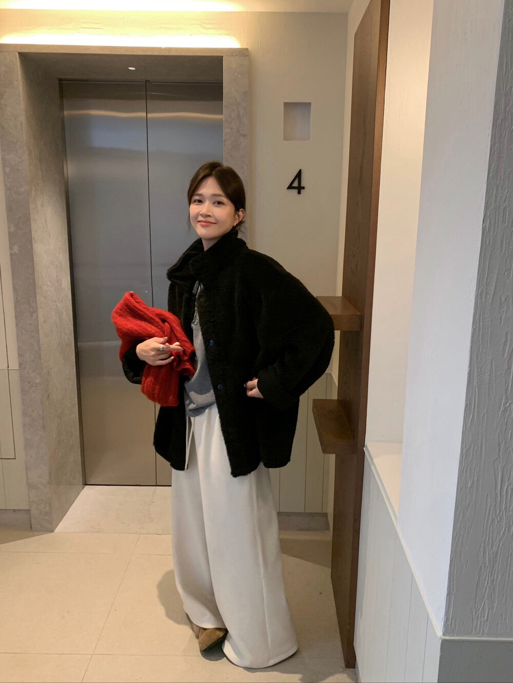 // 可雙面穿皮毛一體翻領中長外套