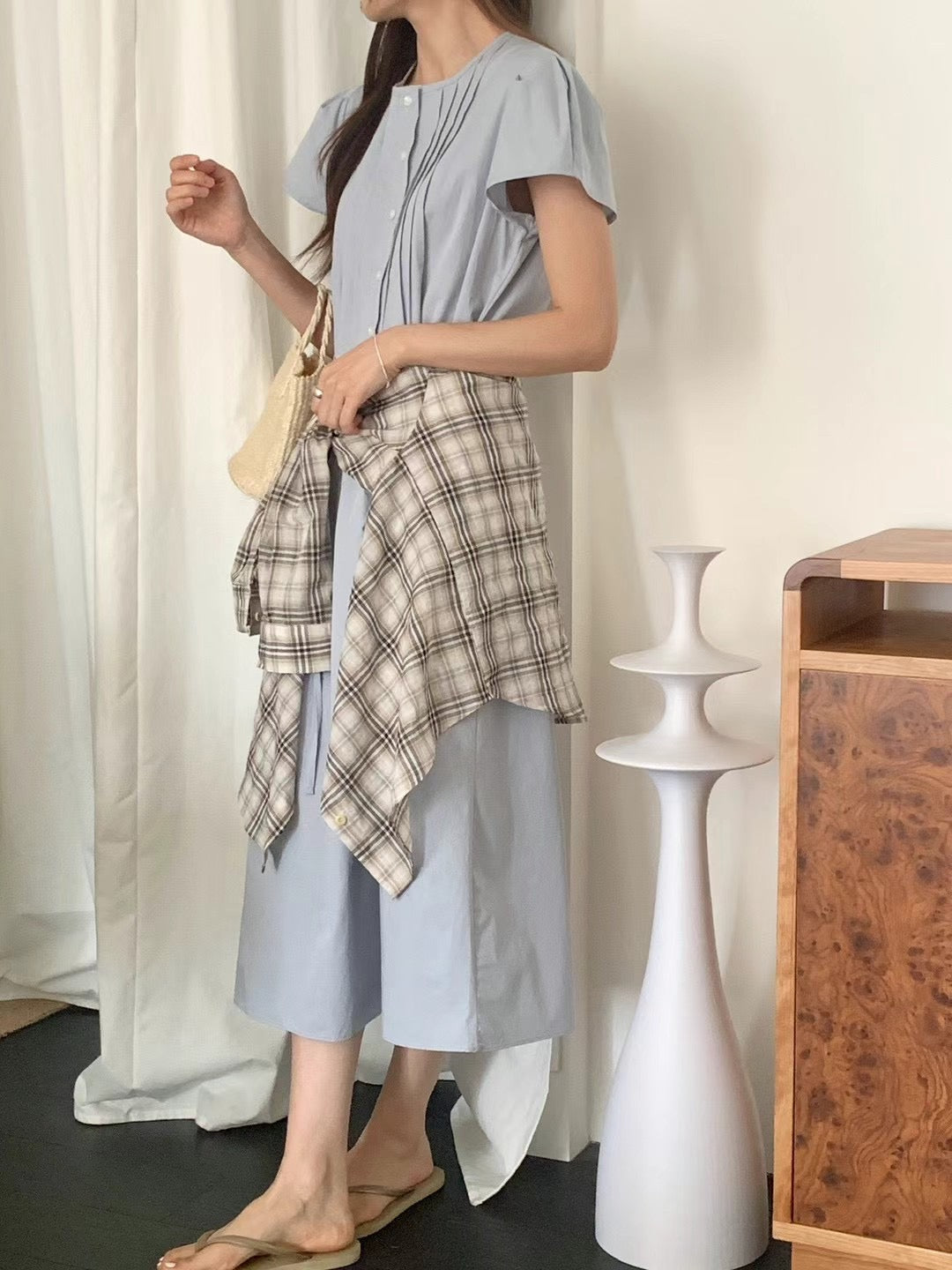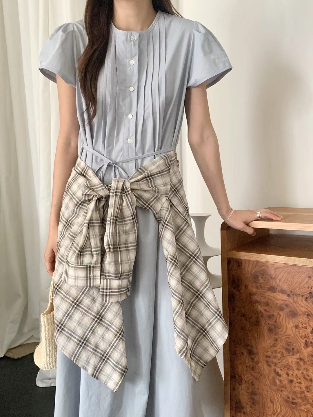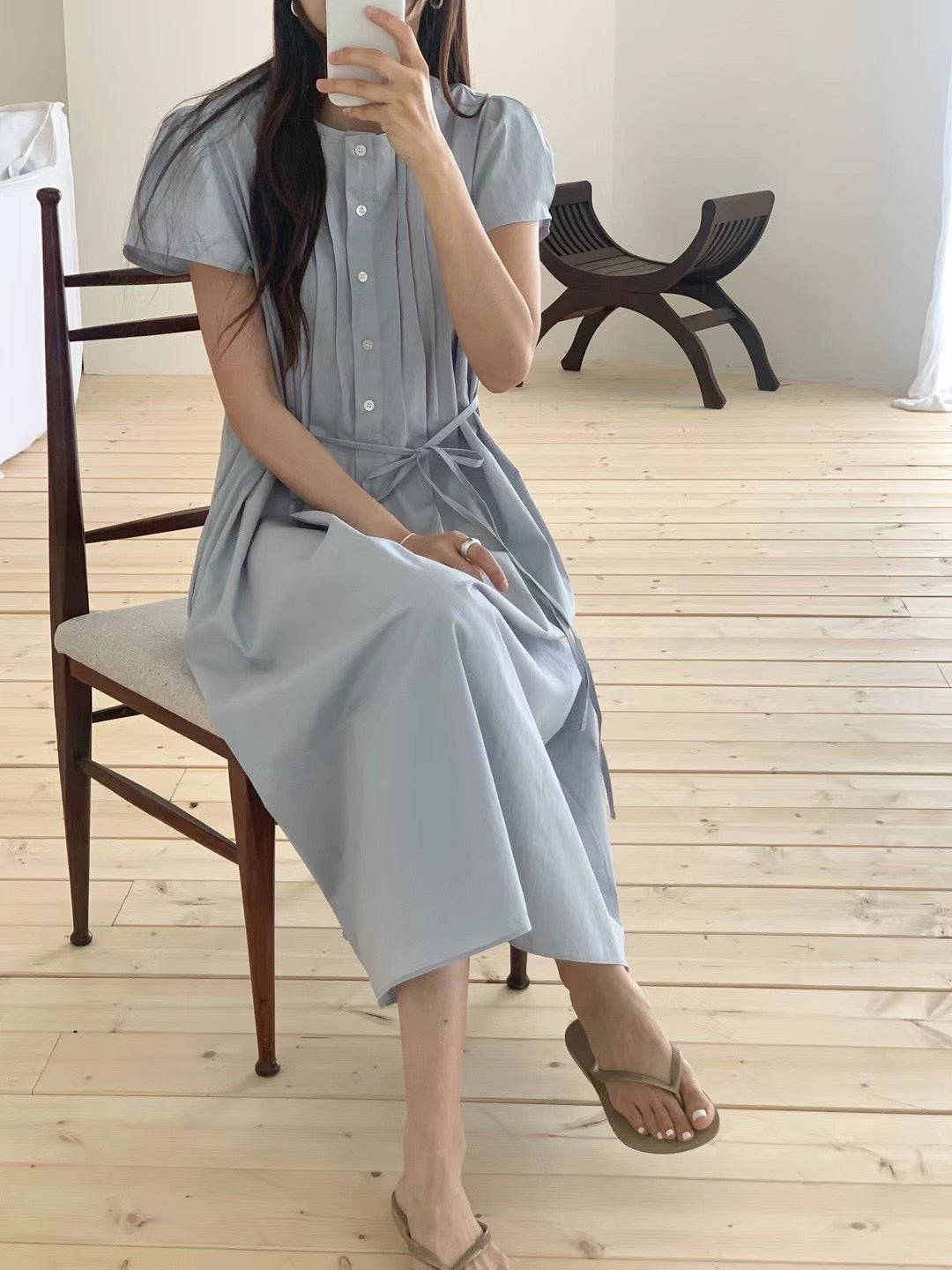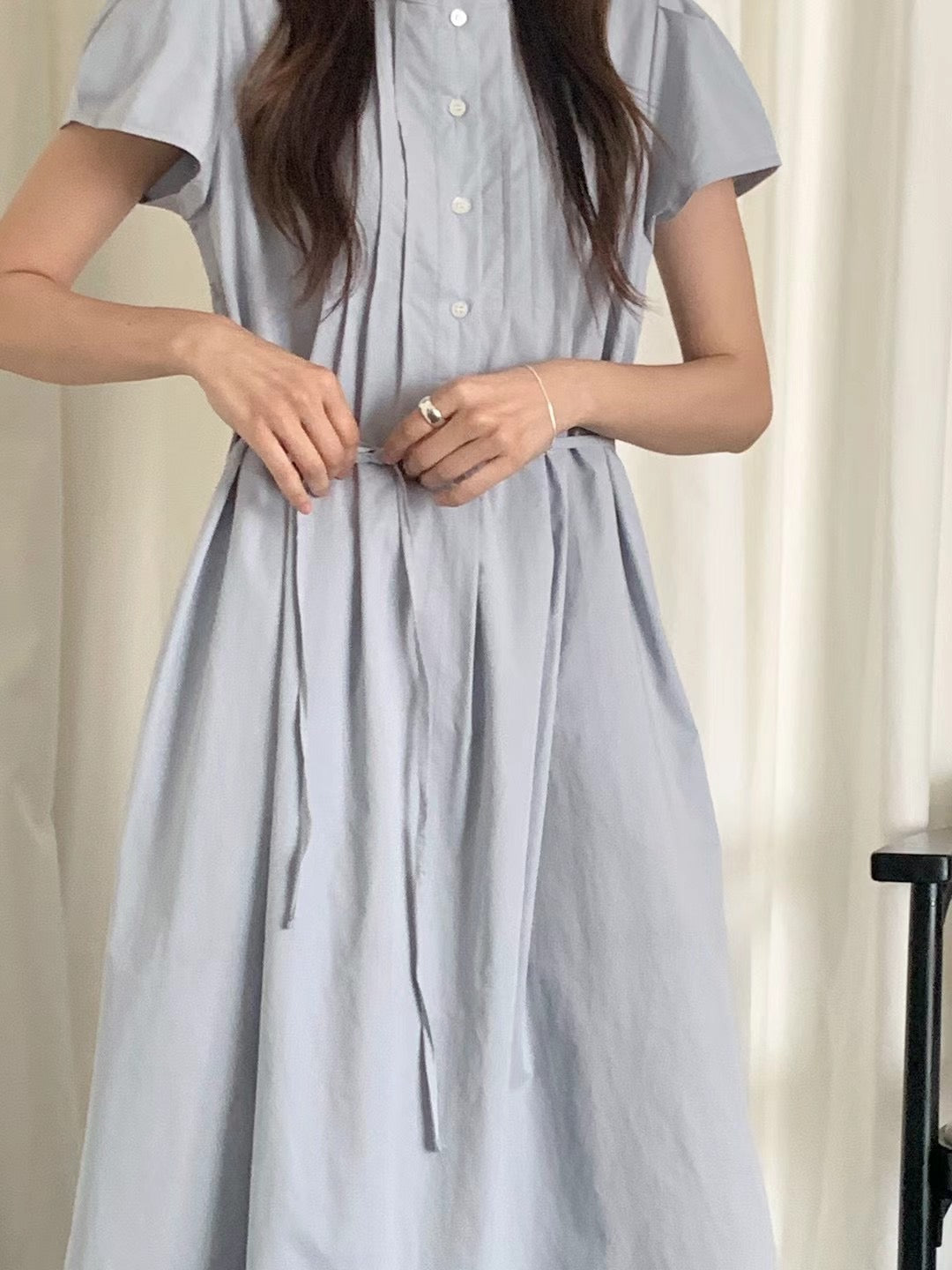 (現貨) // 小廓型袖子壓褶連腰繩恤衫款OPS