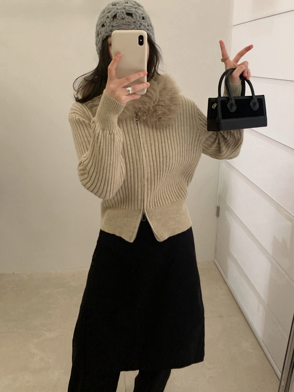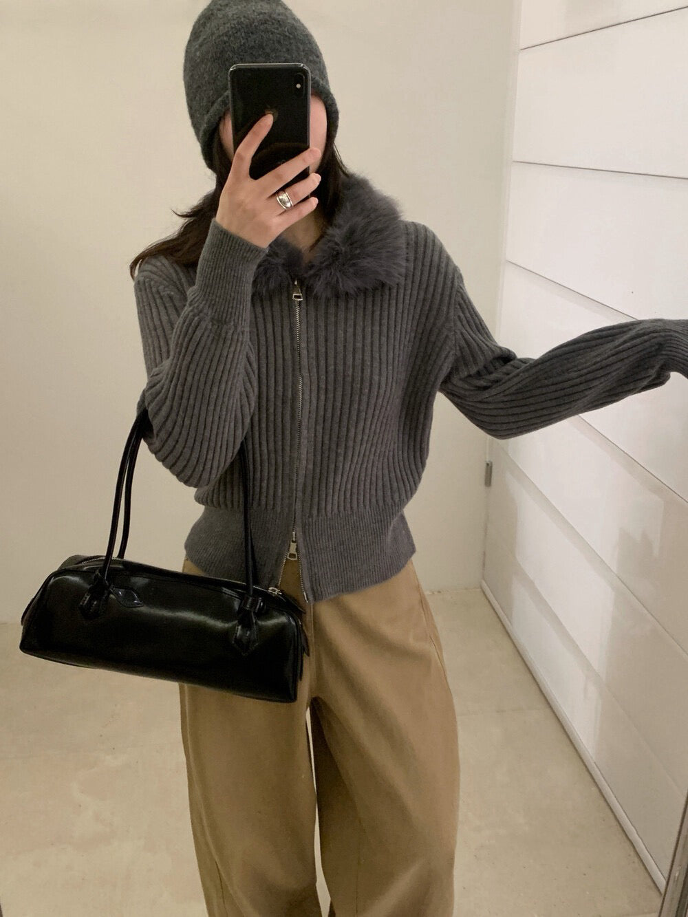 // 復古感毛毛領拉鍊CD