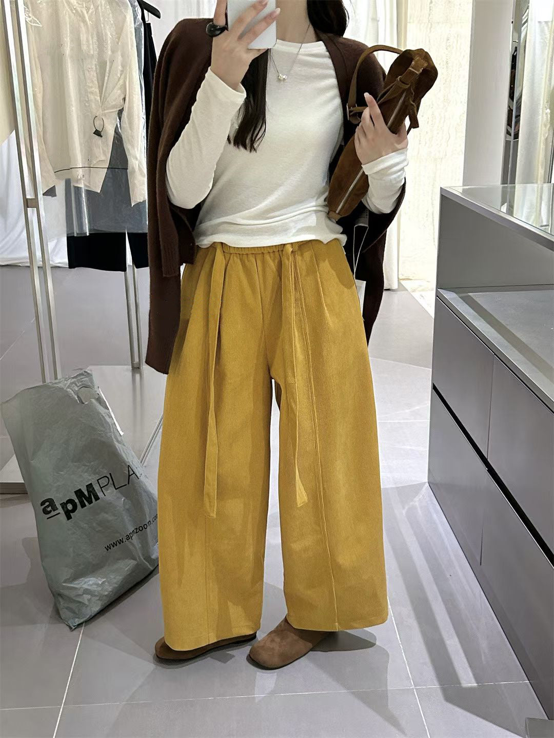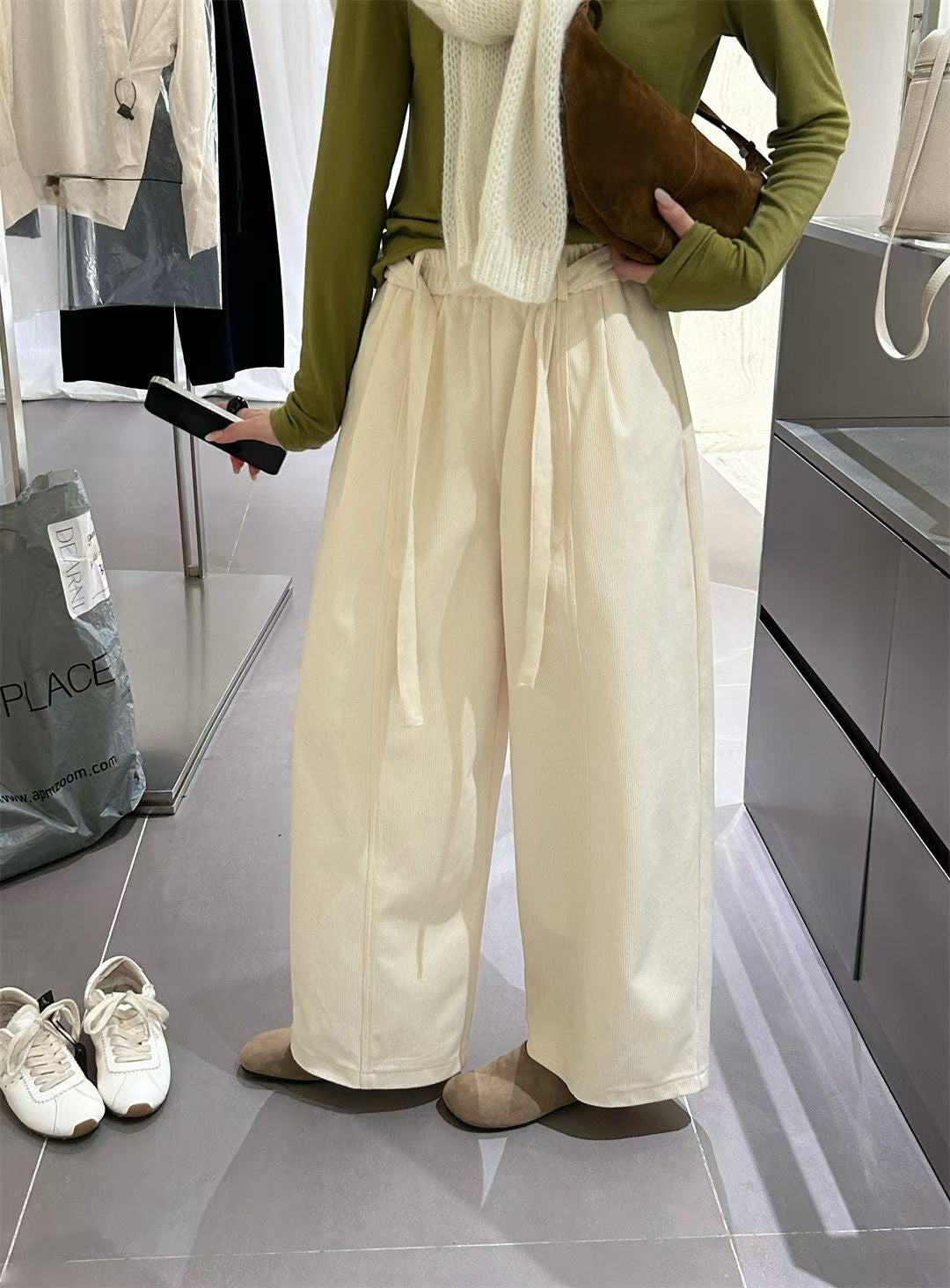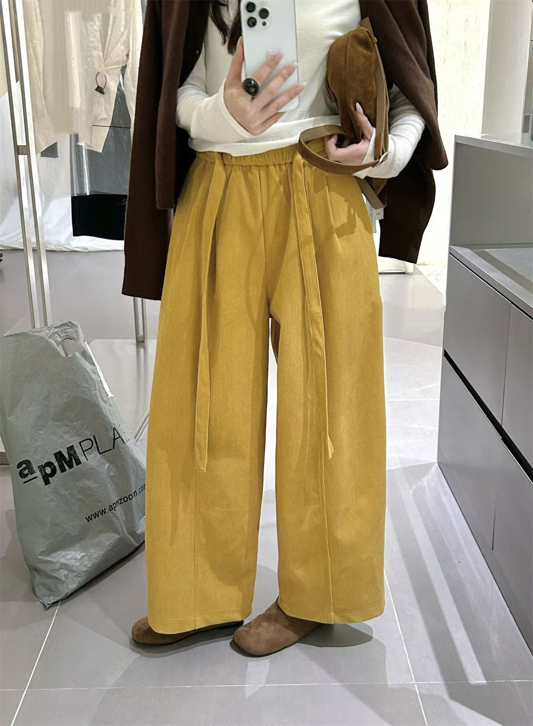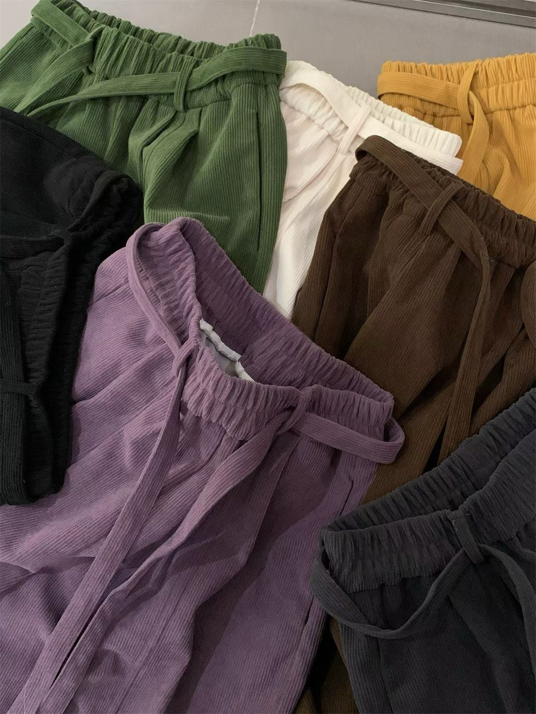 // 復古連腰帶燈芯絨褲