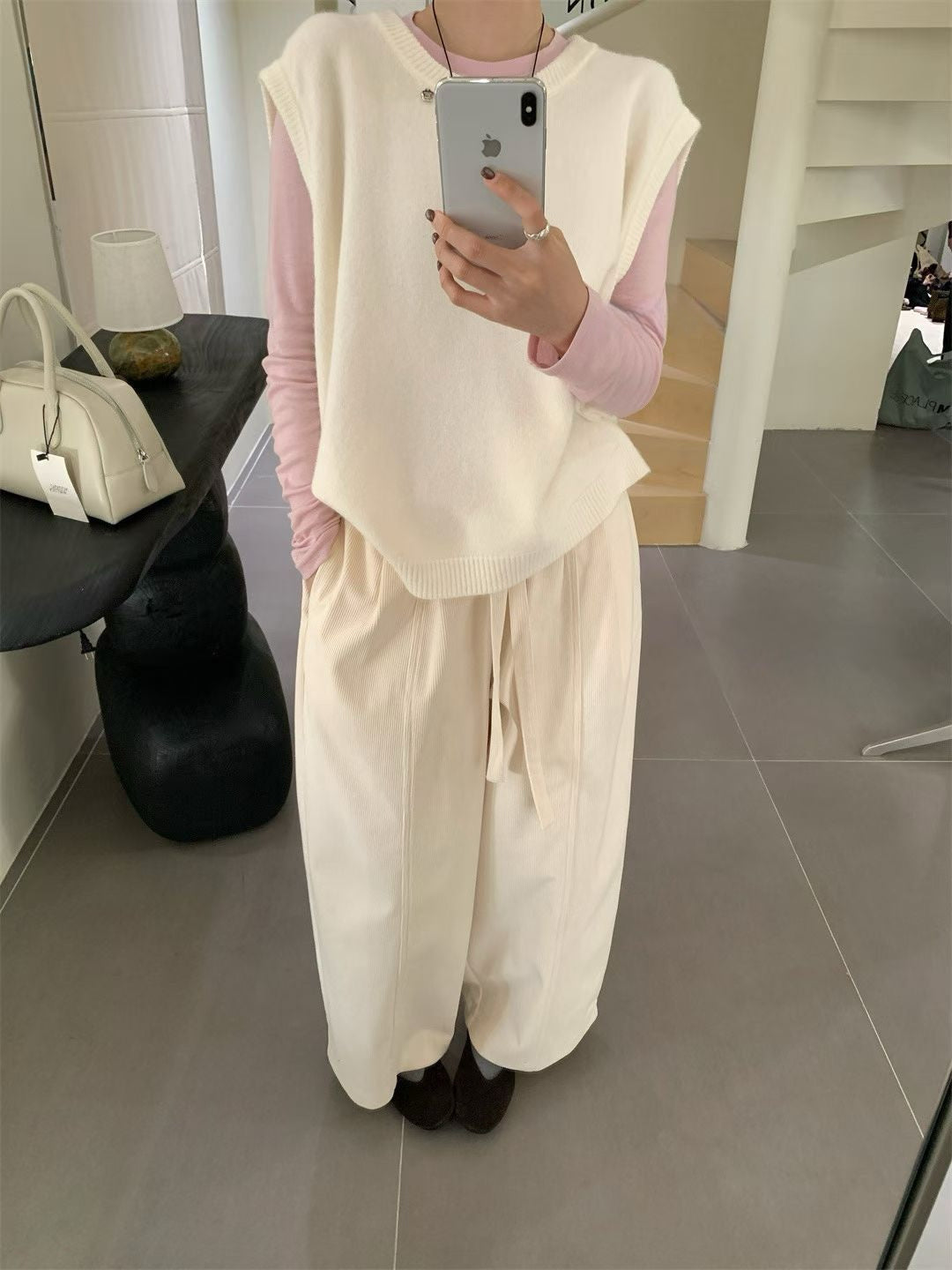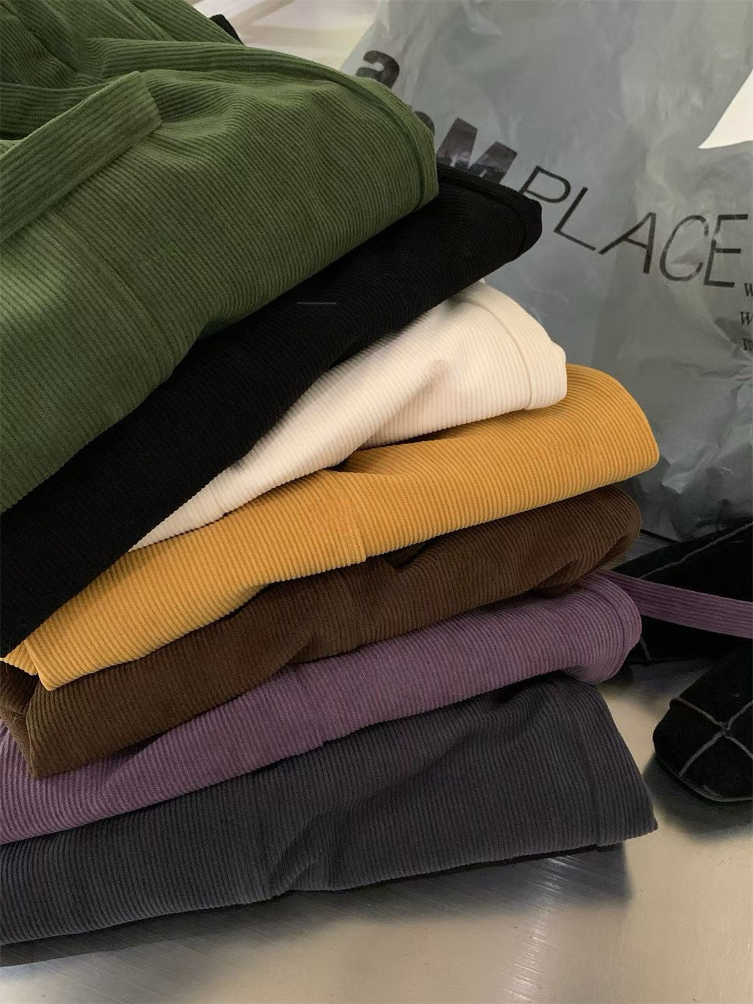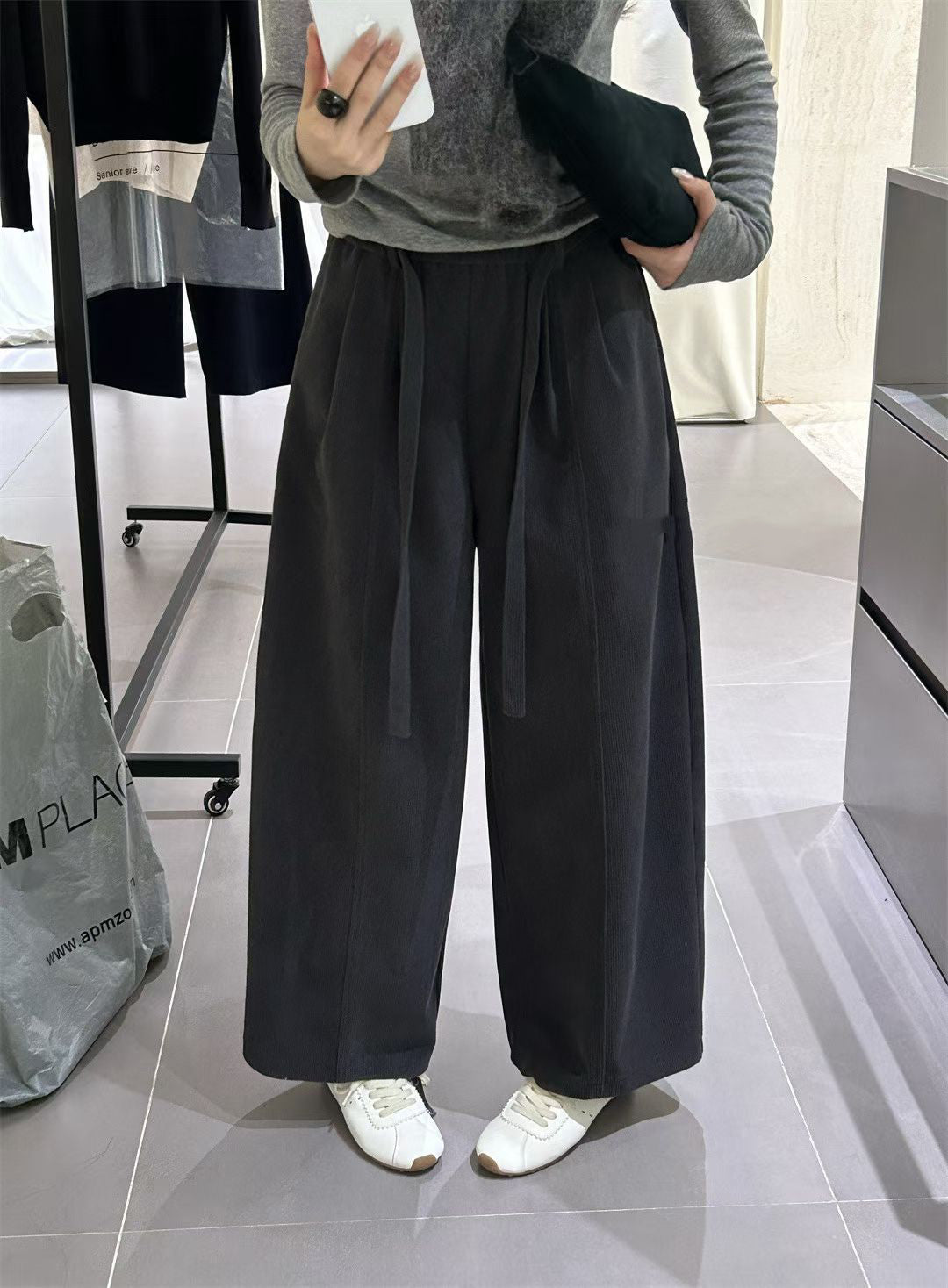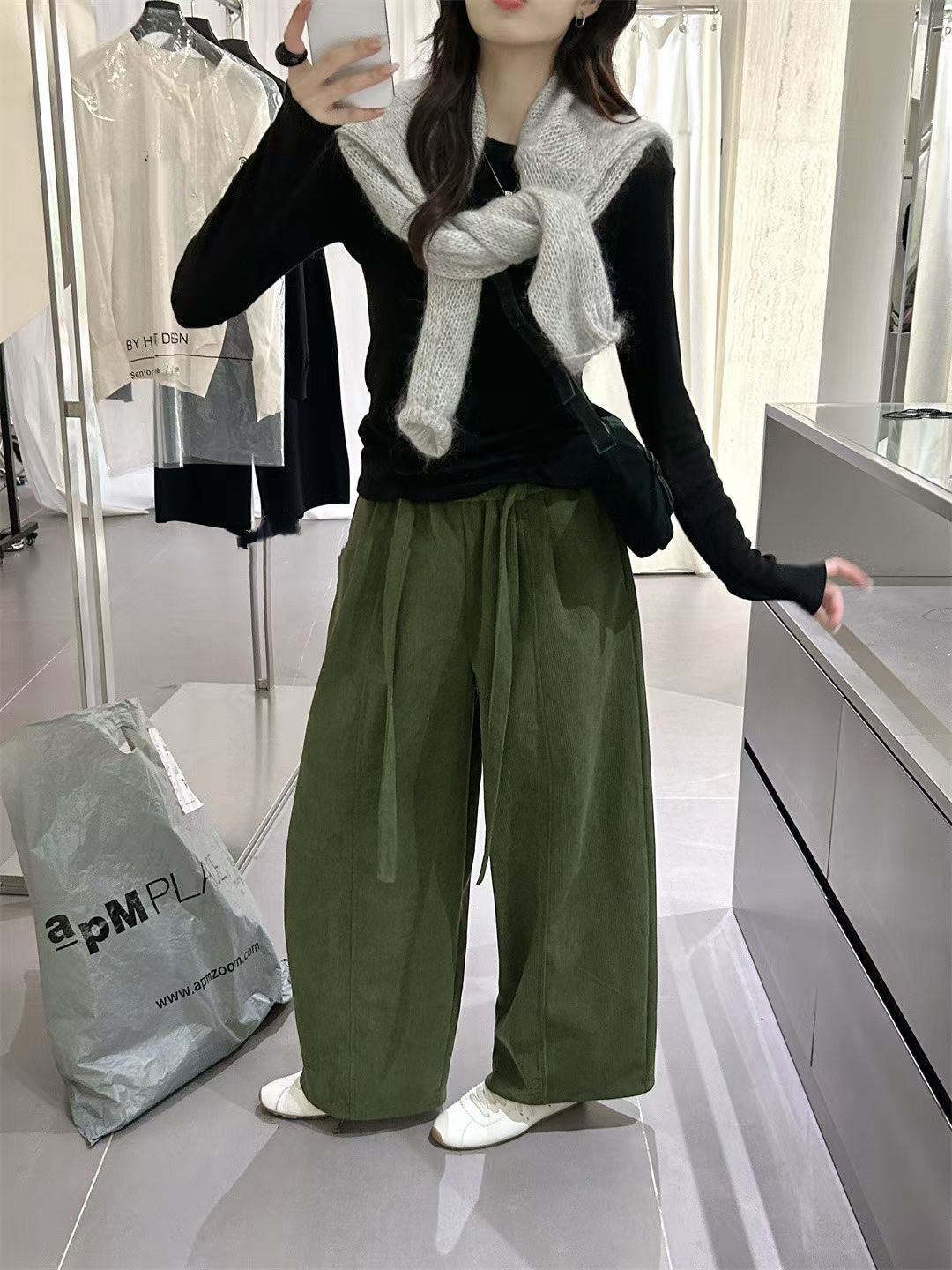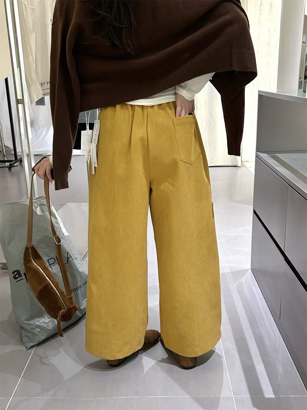 // 復古連腰帶燈芯絨褲