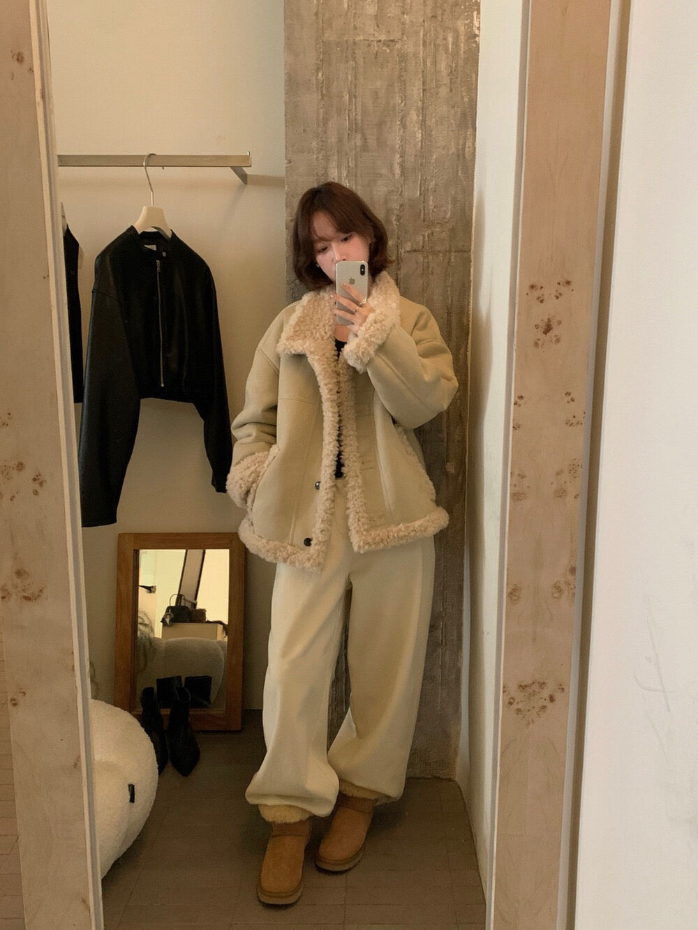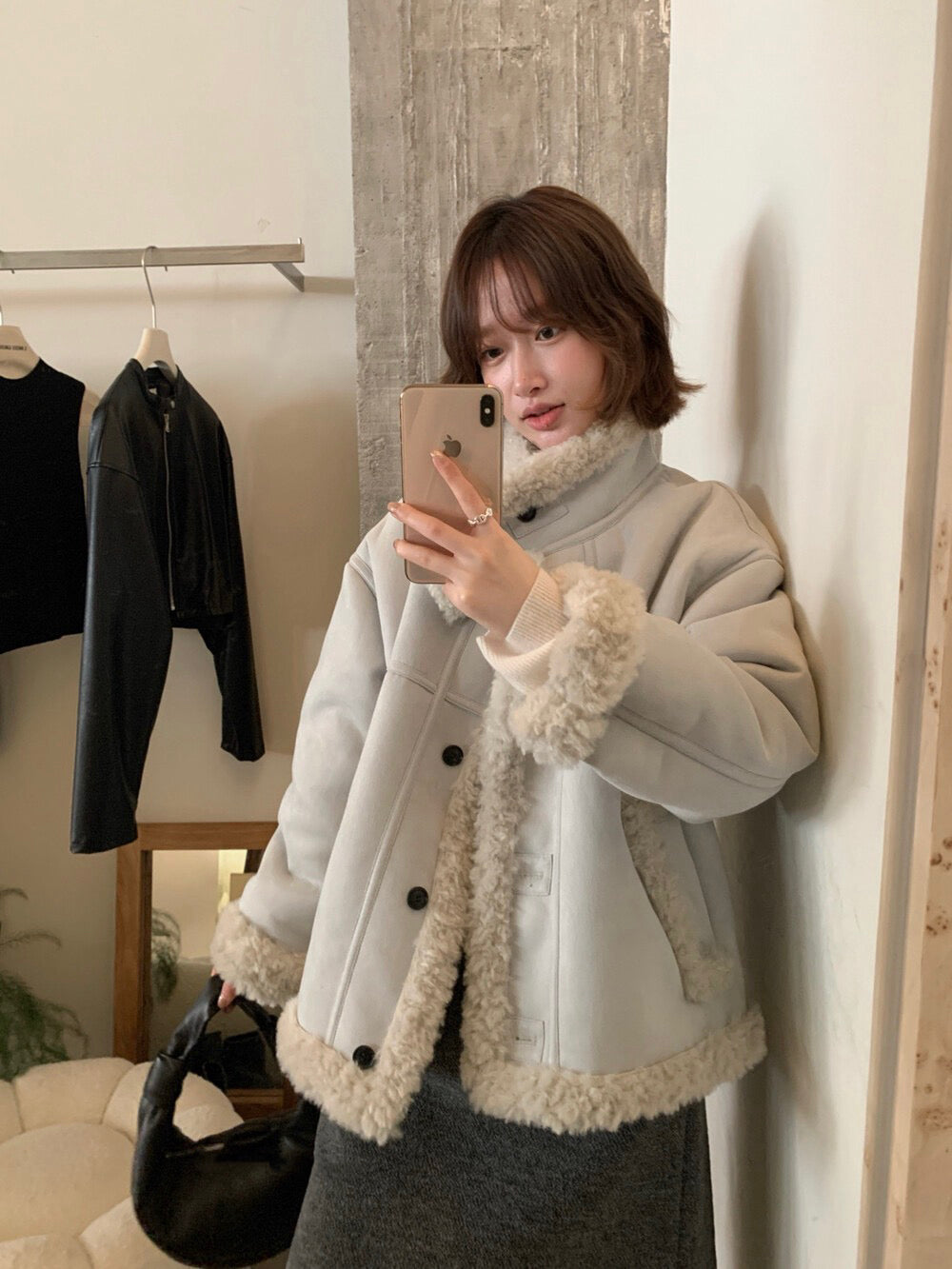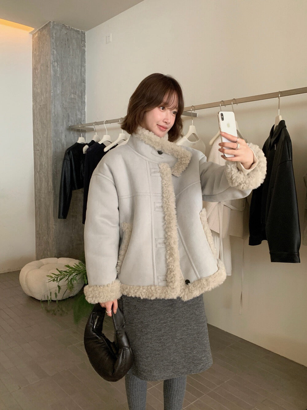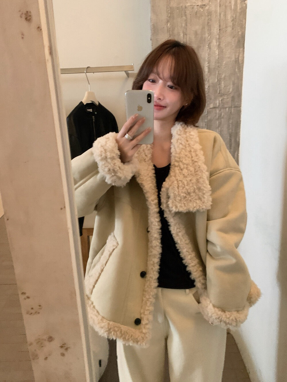 // 性價比極高皮毛一體羊羔毛麂皮外套