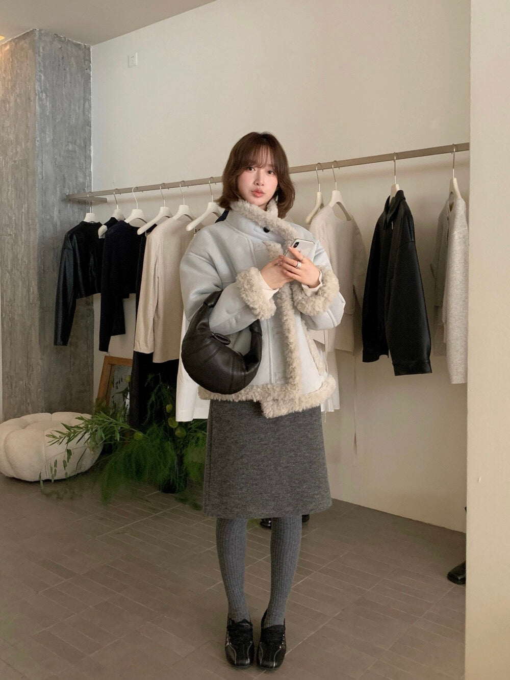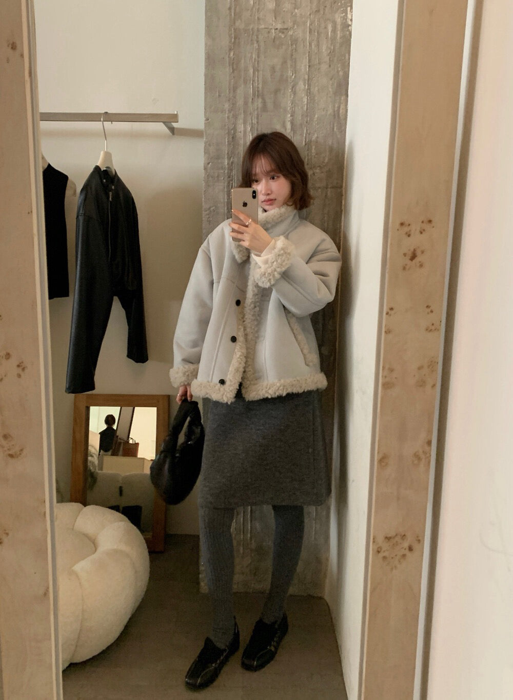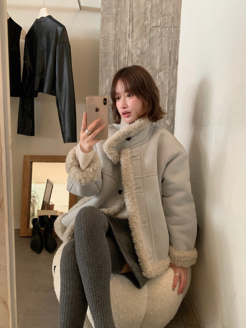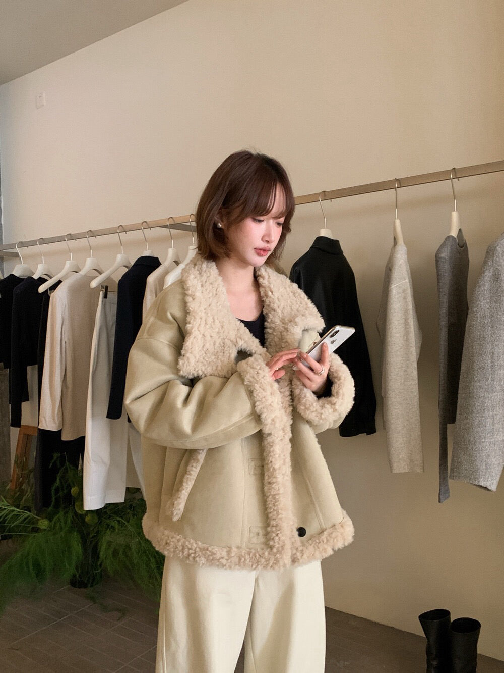 // 性價比極高皮毛一體羊羔毛麂皮外套