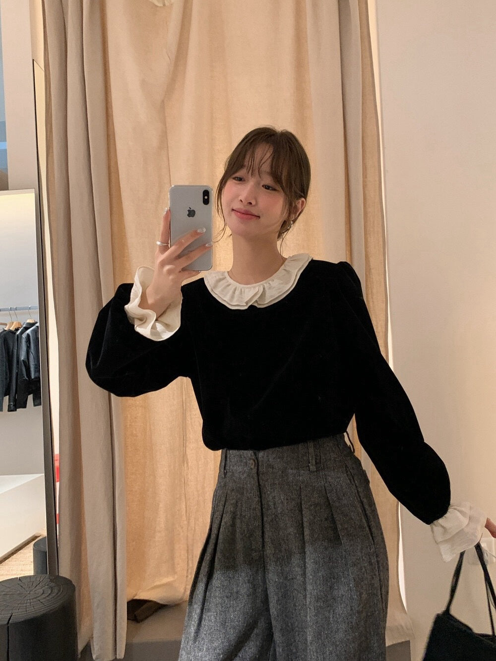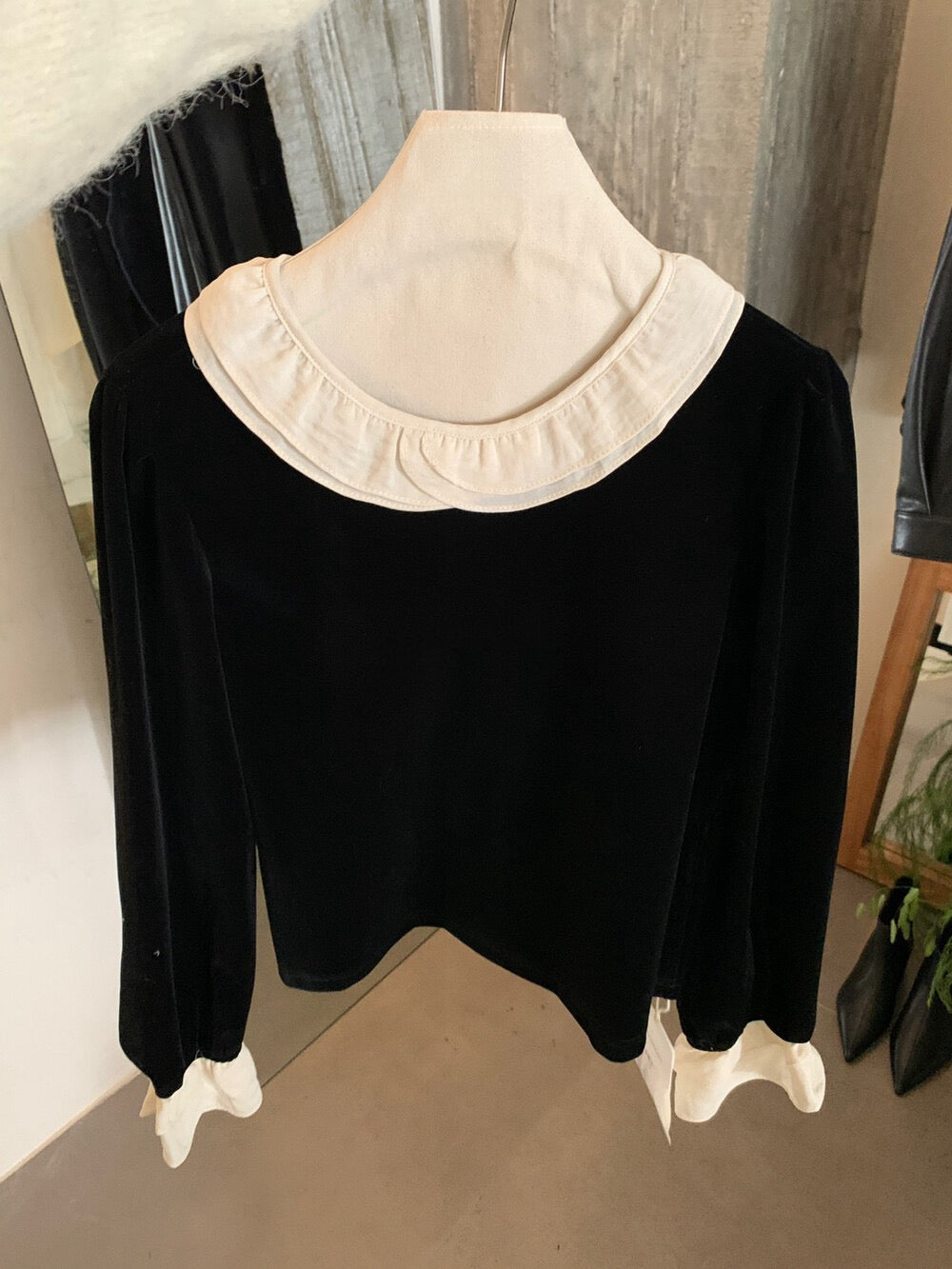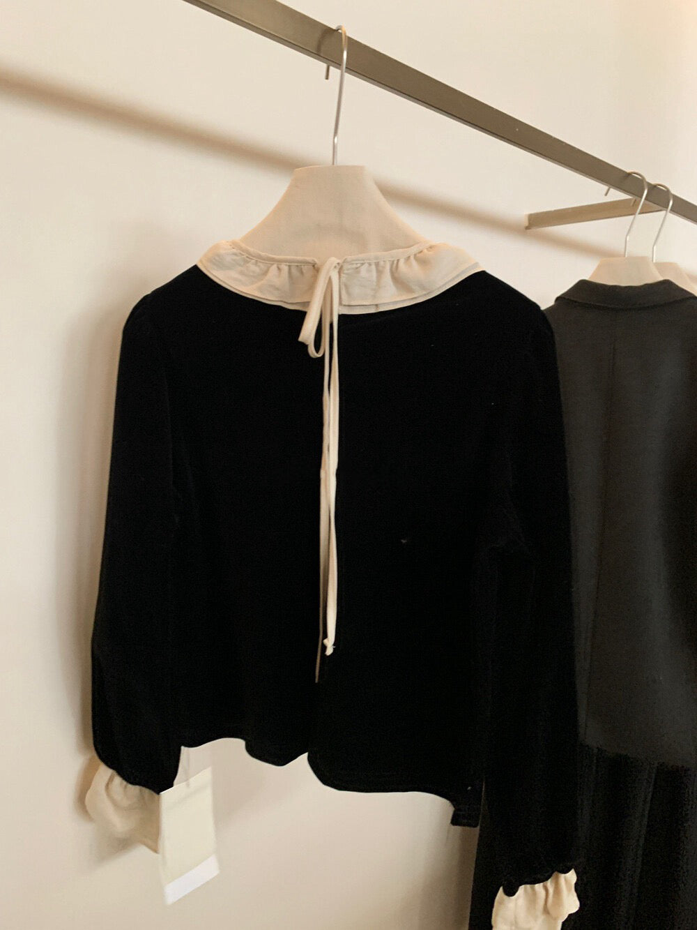 // 拼接荷葉花邊後綁帶絲絨BL
