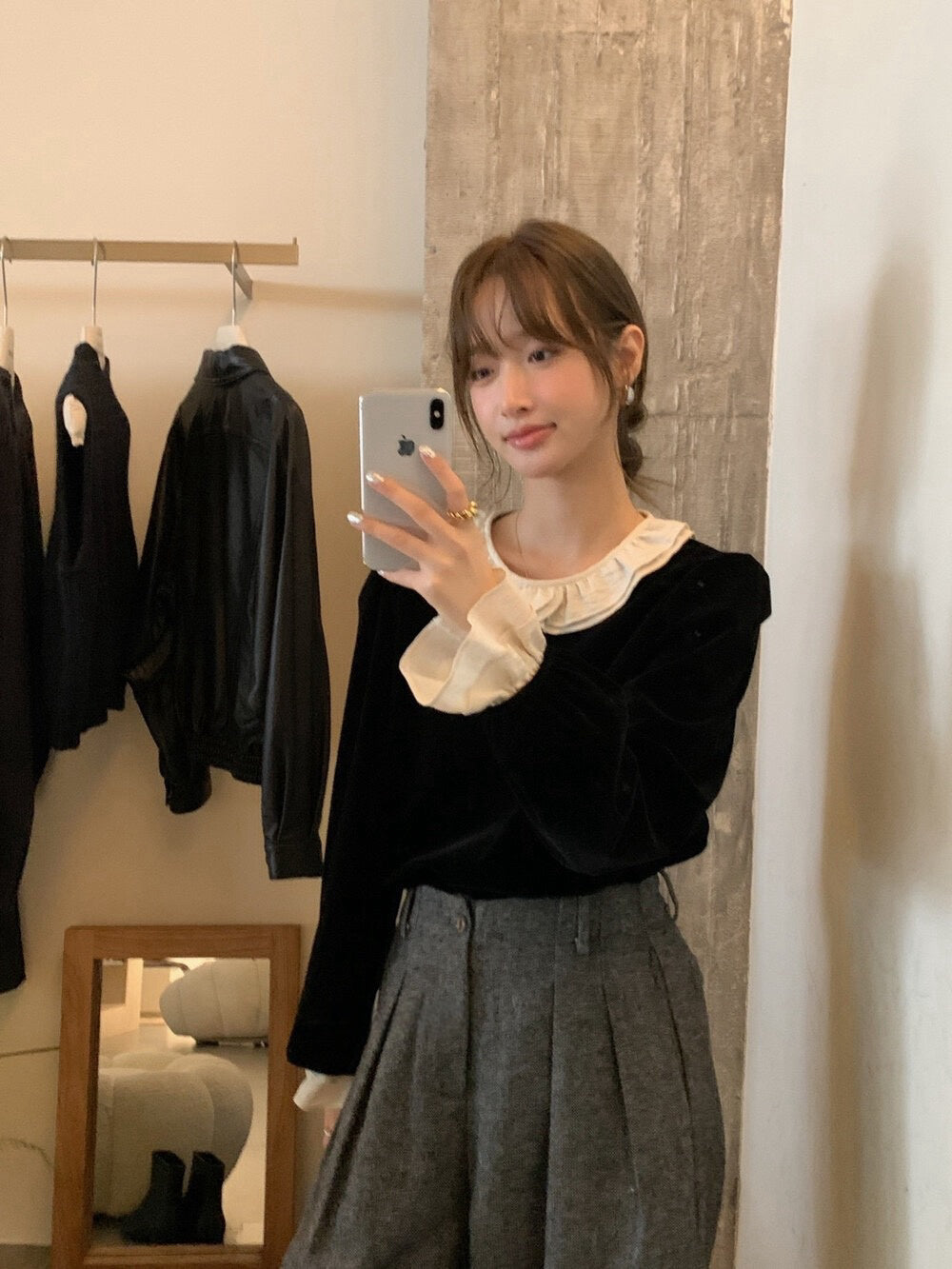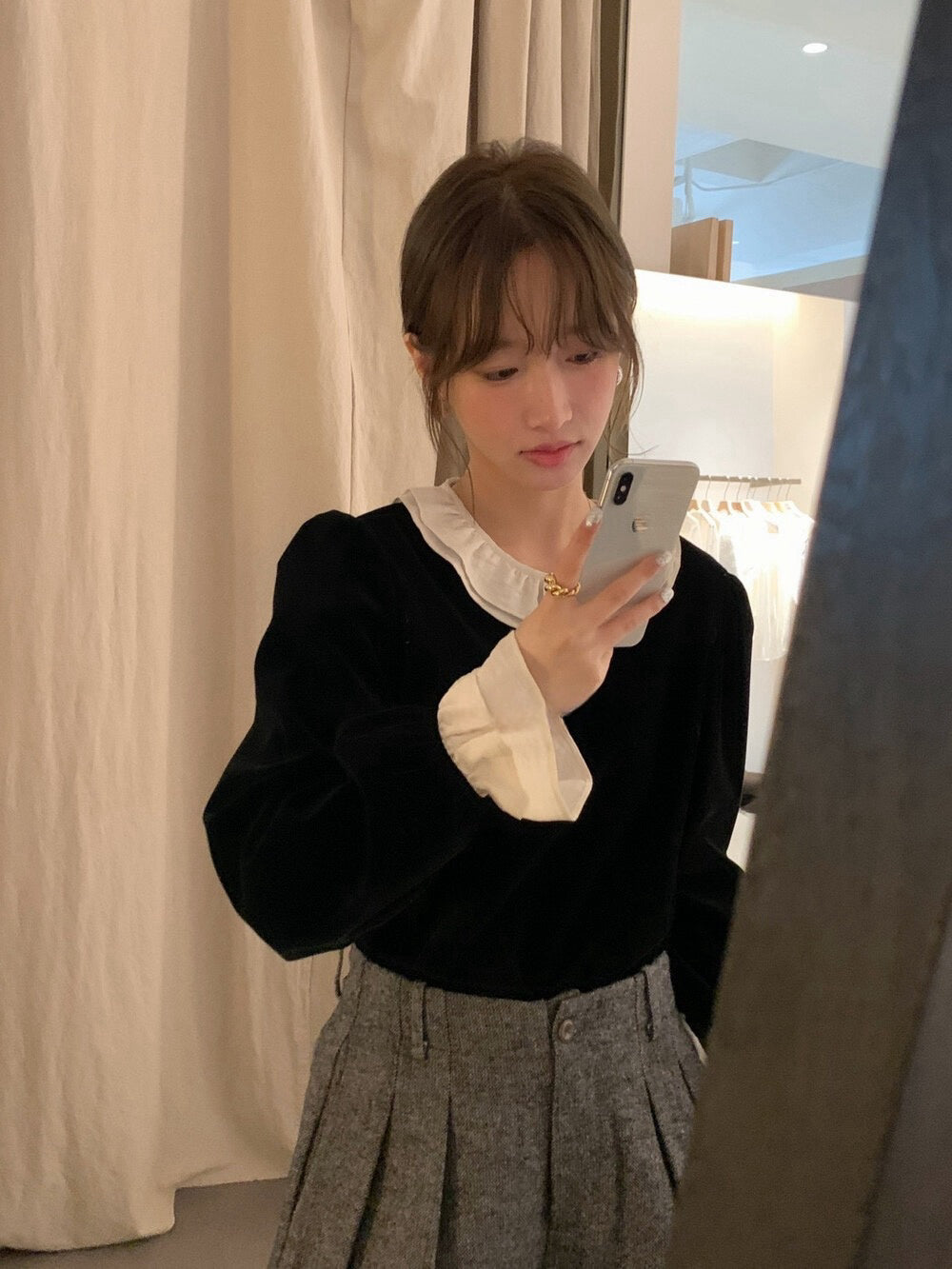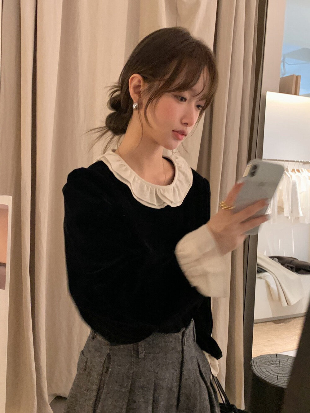 // 拼接荷葉花邊後綁帶絲絨BL