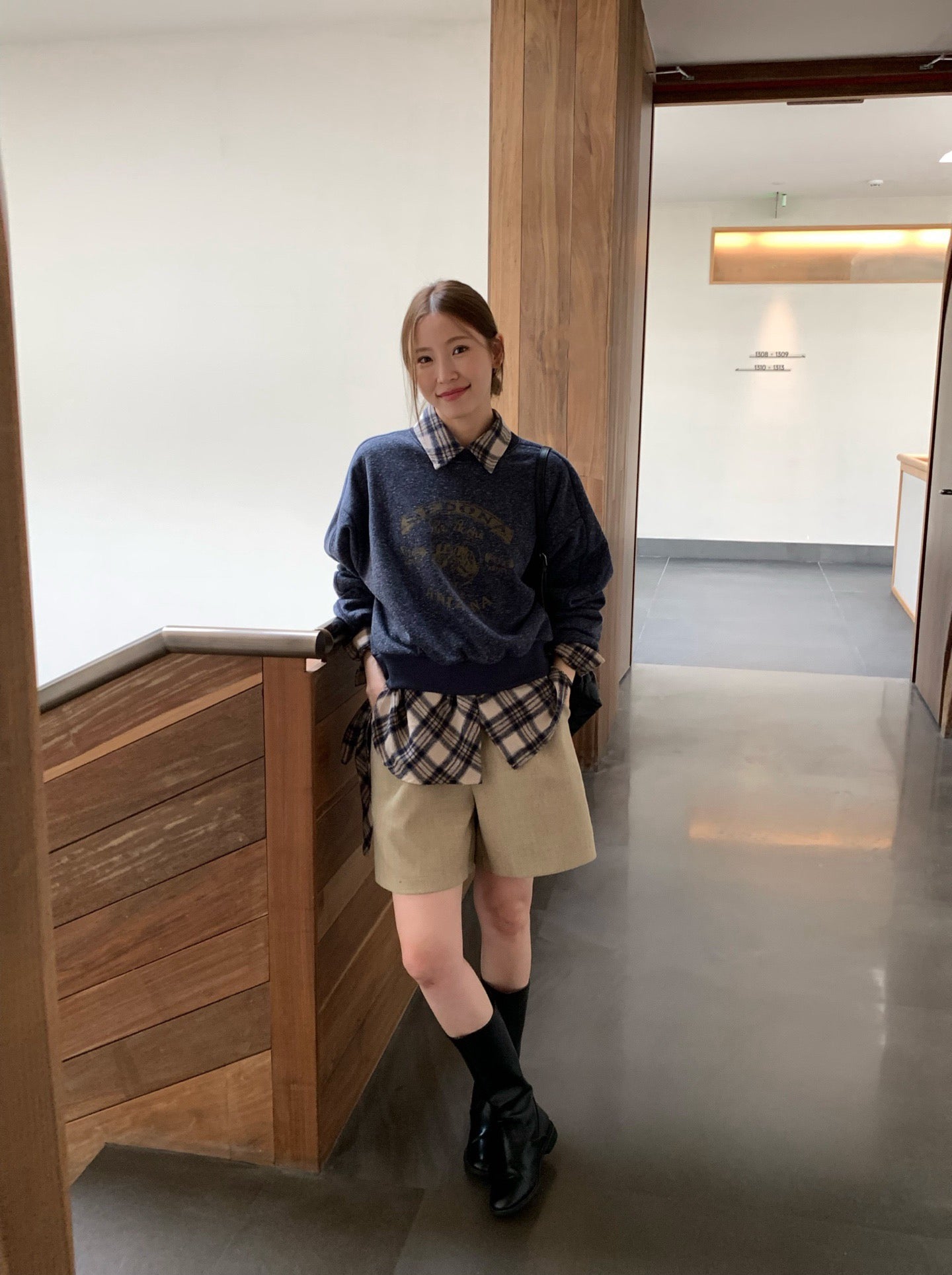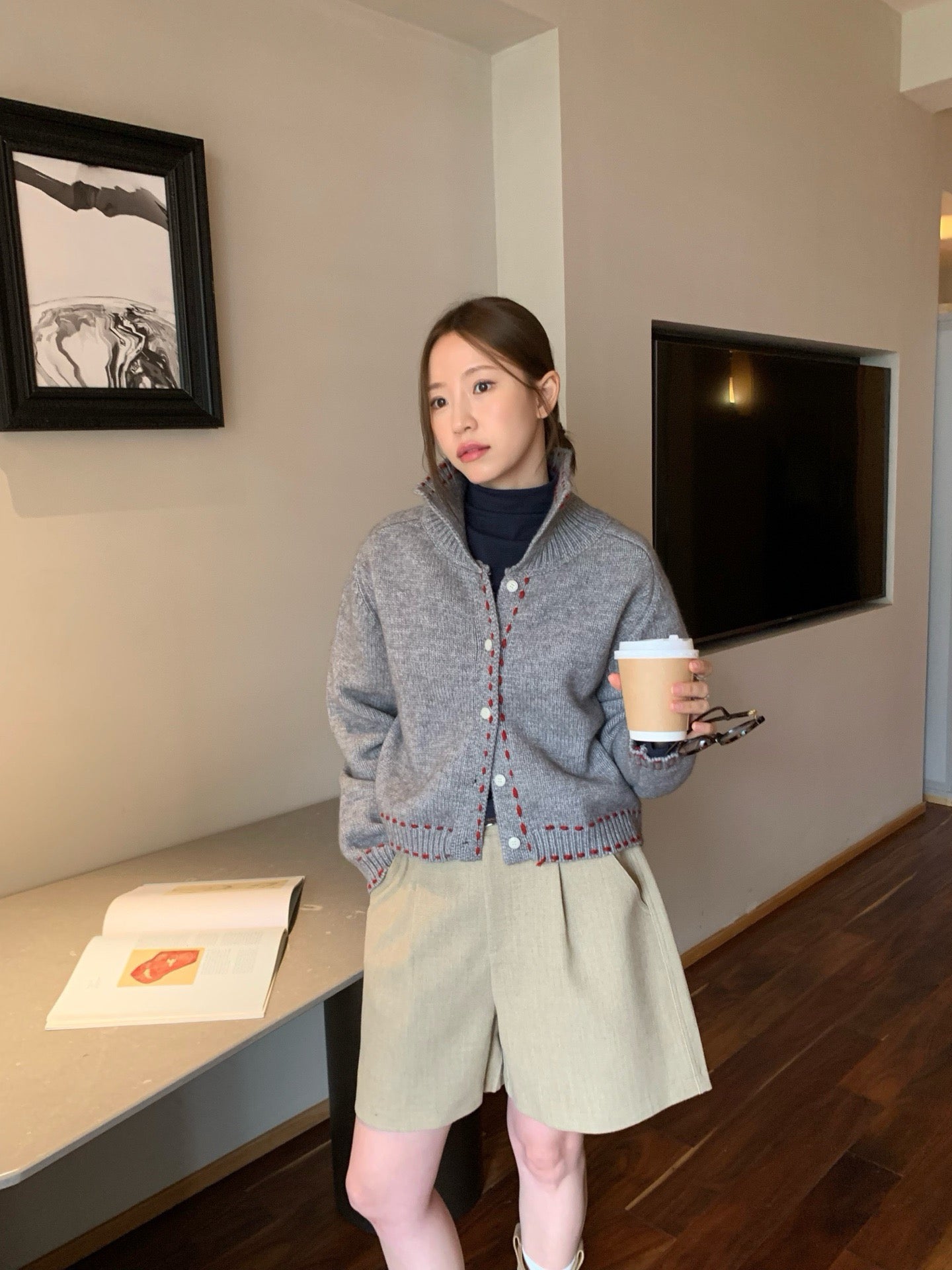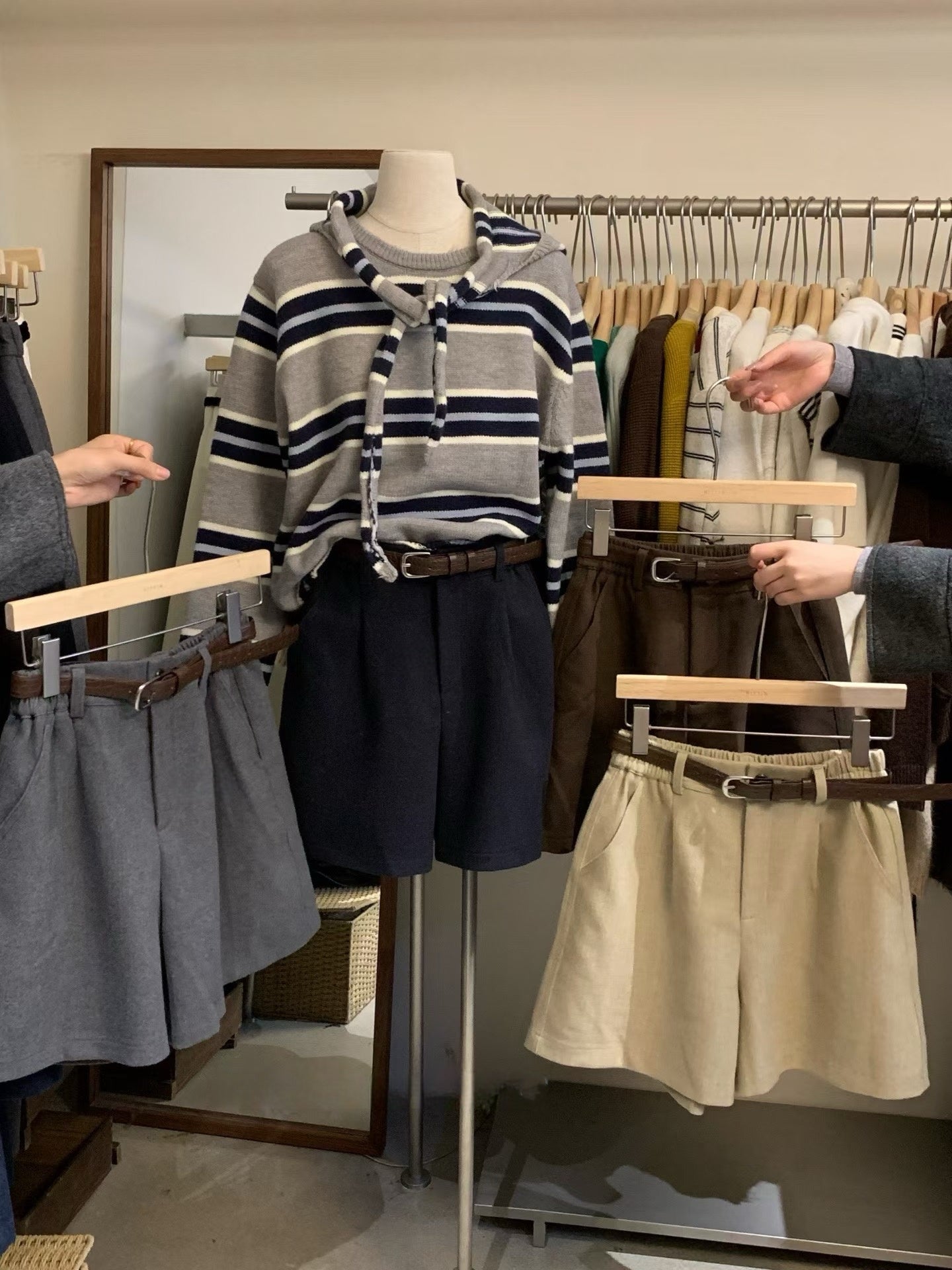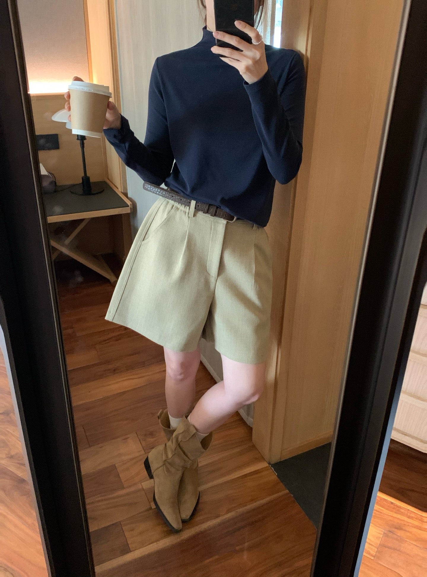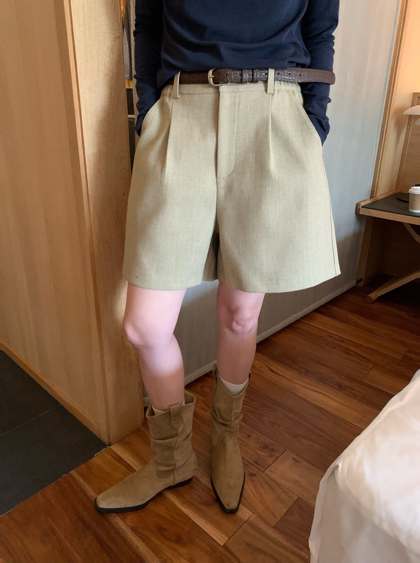 // 挺括感羊毛呢料連腰帶短褲