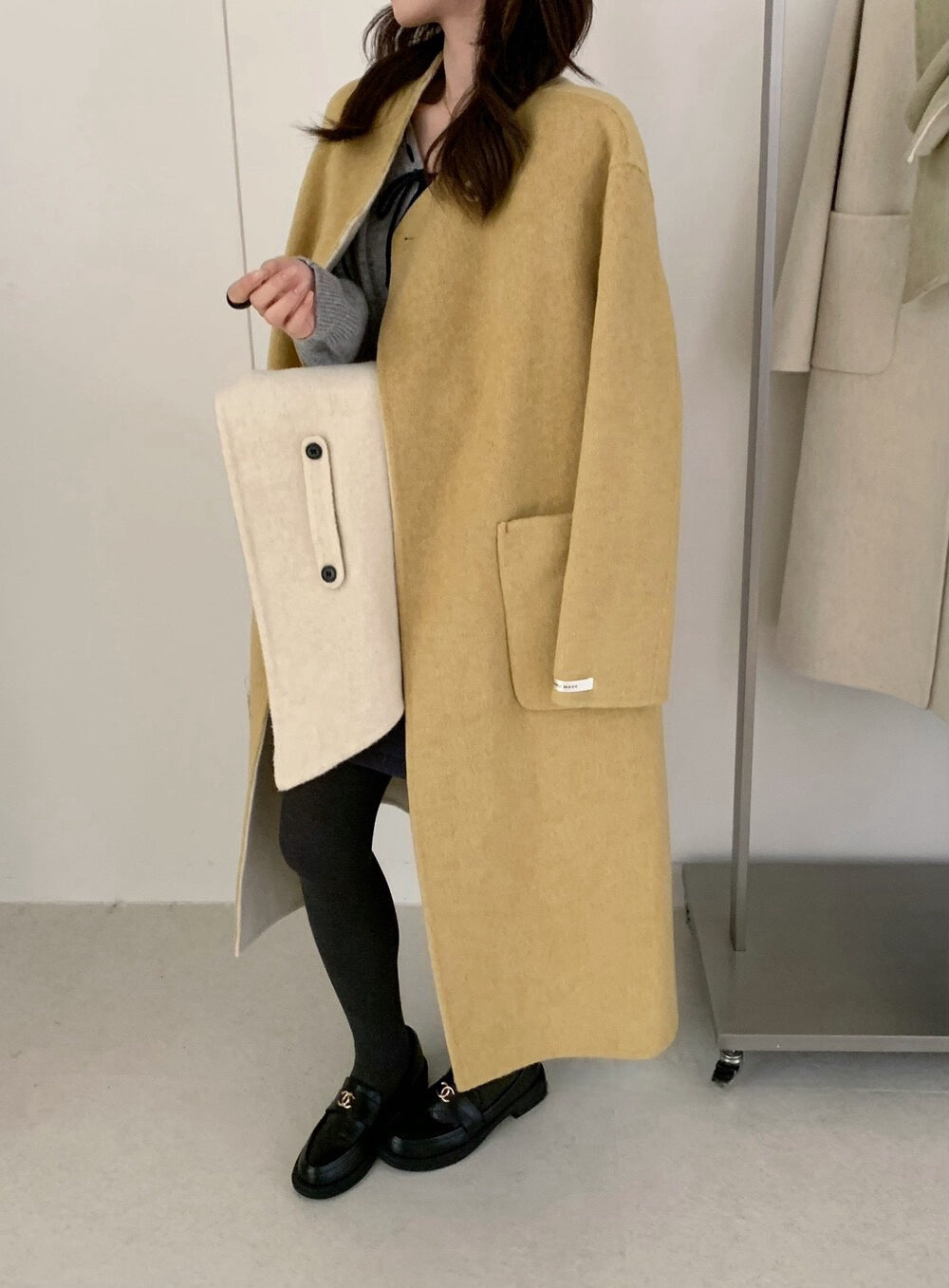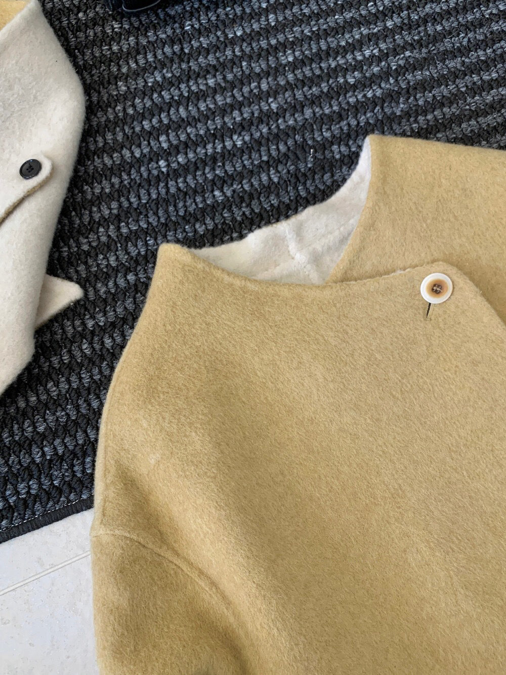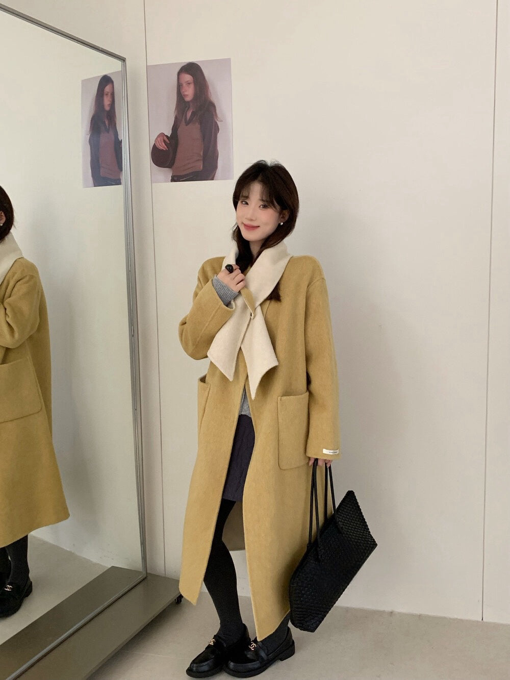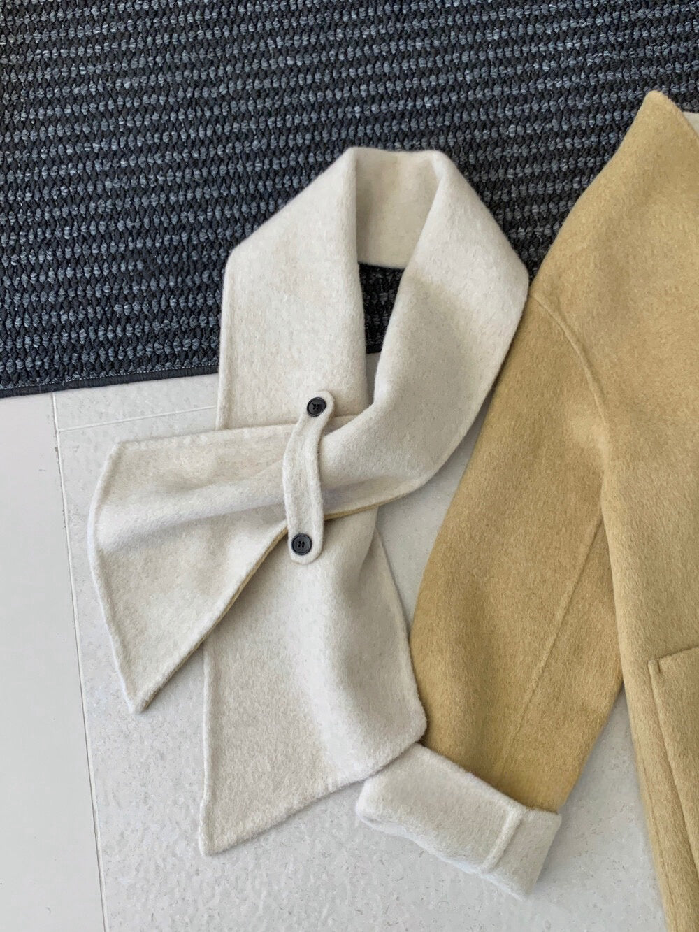 // 撞色內裡斜襟連頸巾100%羊毛雙面手工外套
