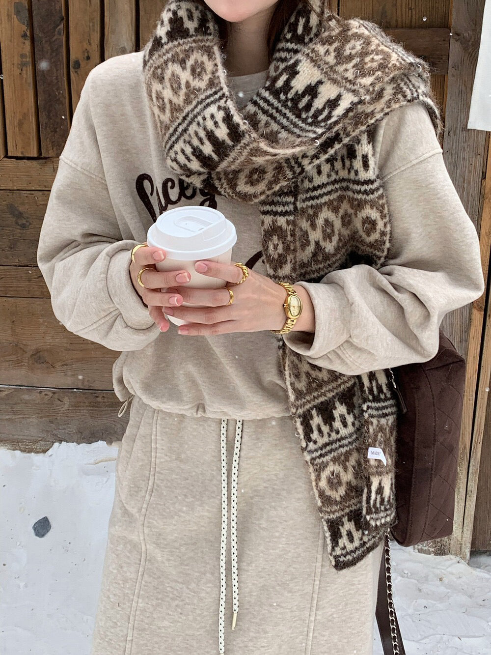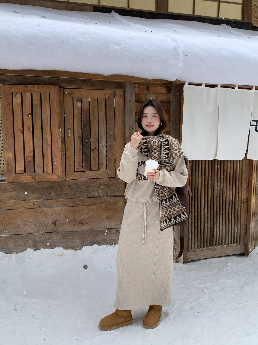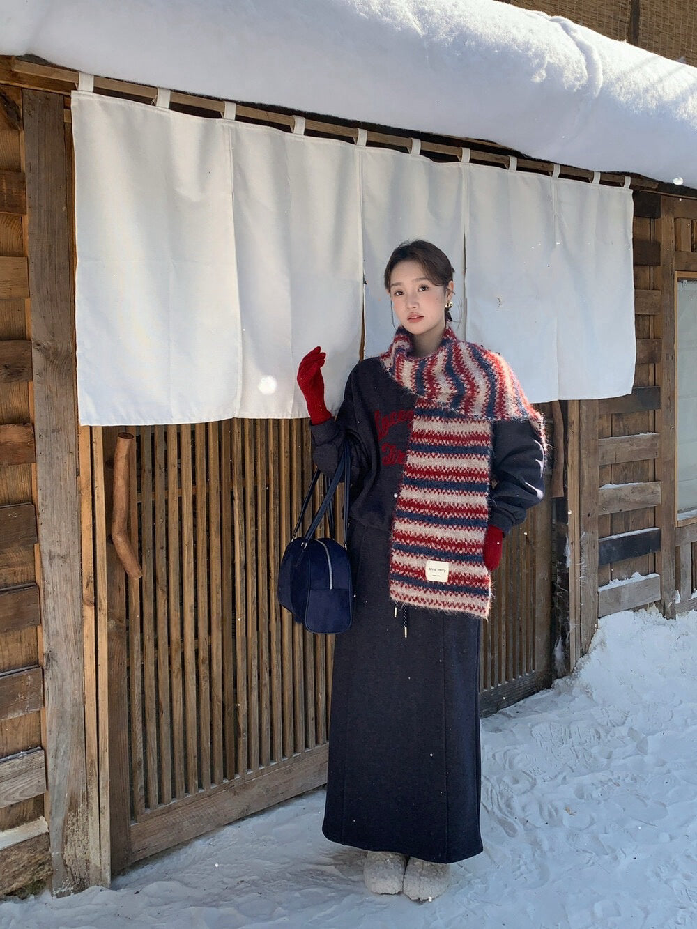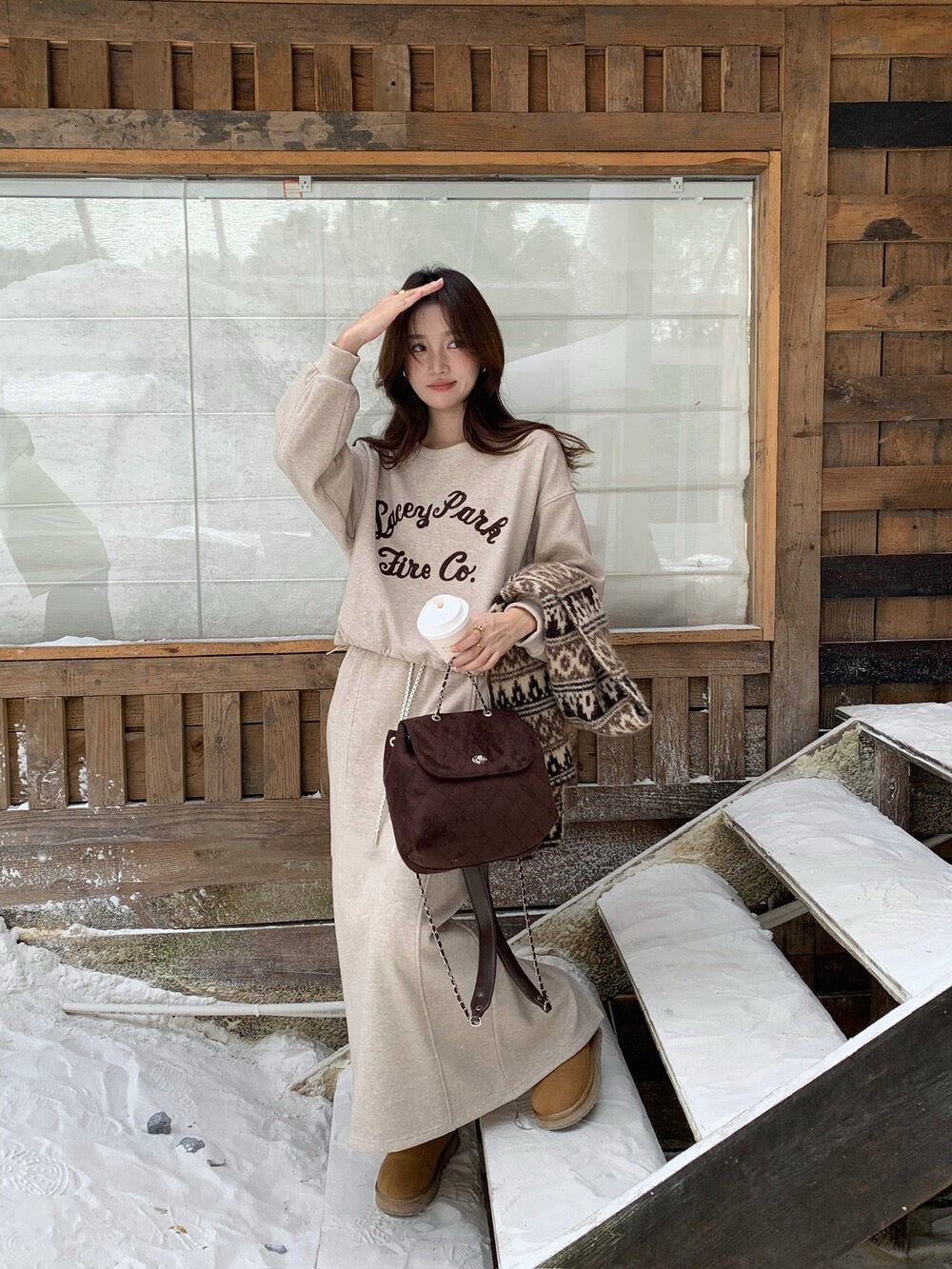 // 撞色刺繡字可束腳衛衣+中裙套裝(連頸巾)