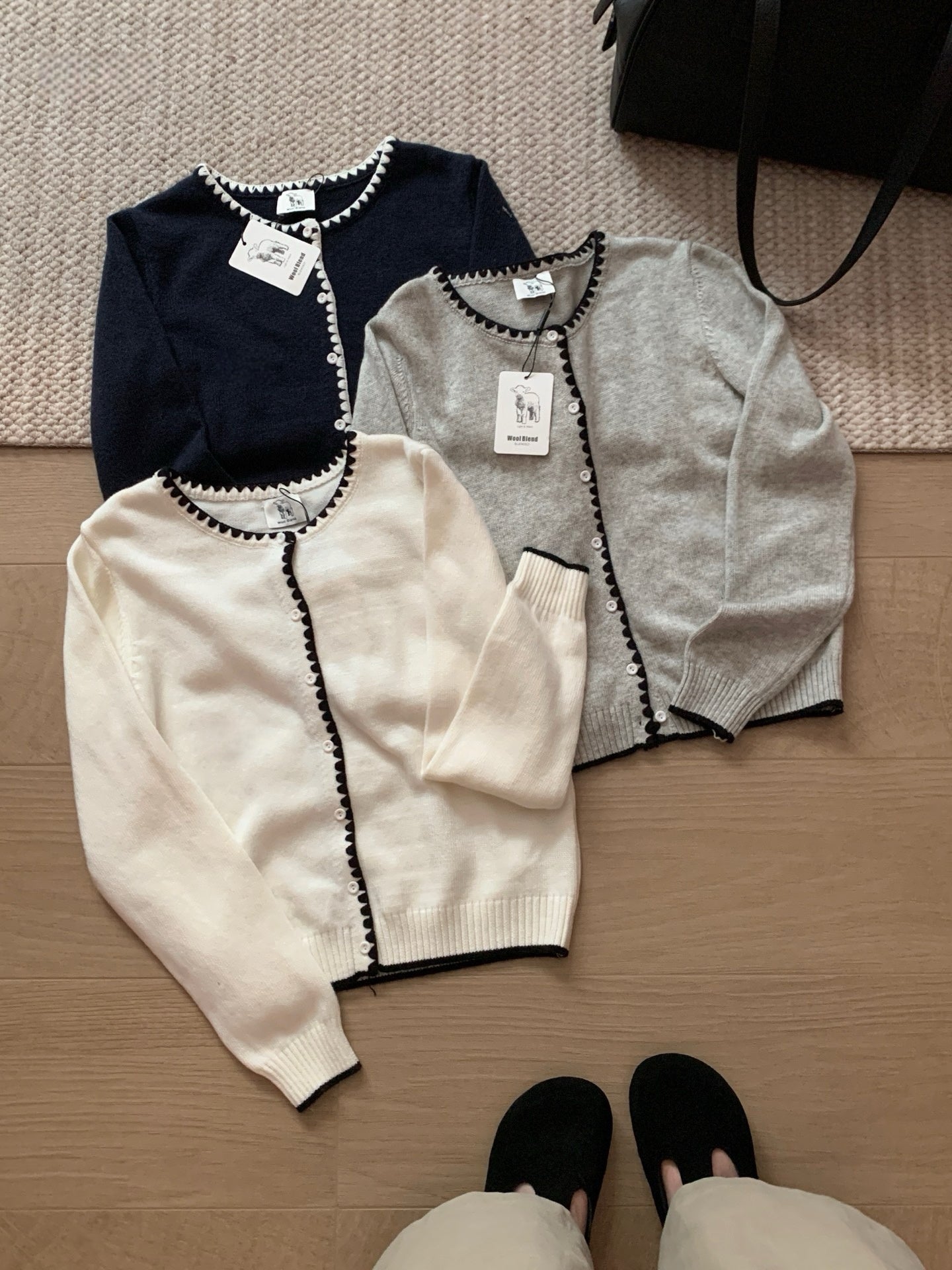 // 撞邊織紋包邊混羊毛CD