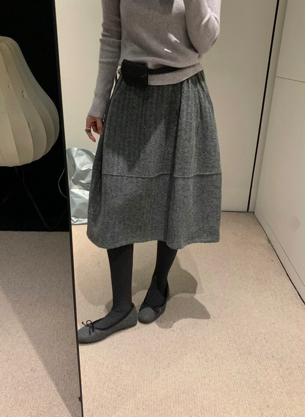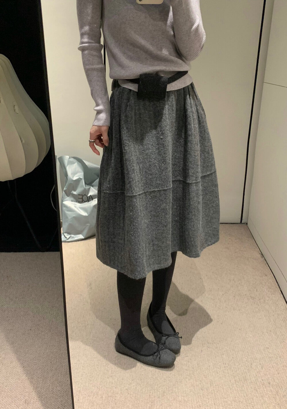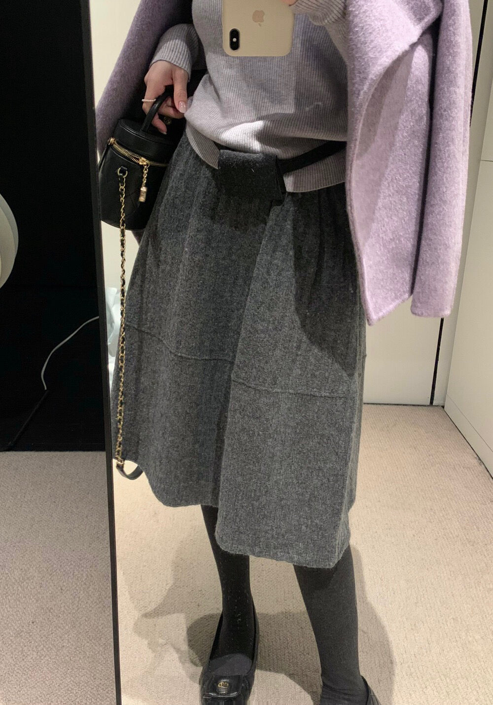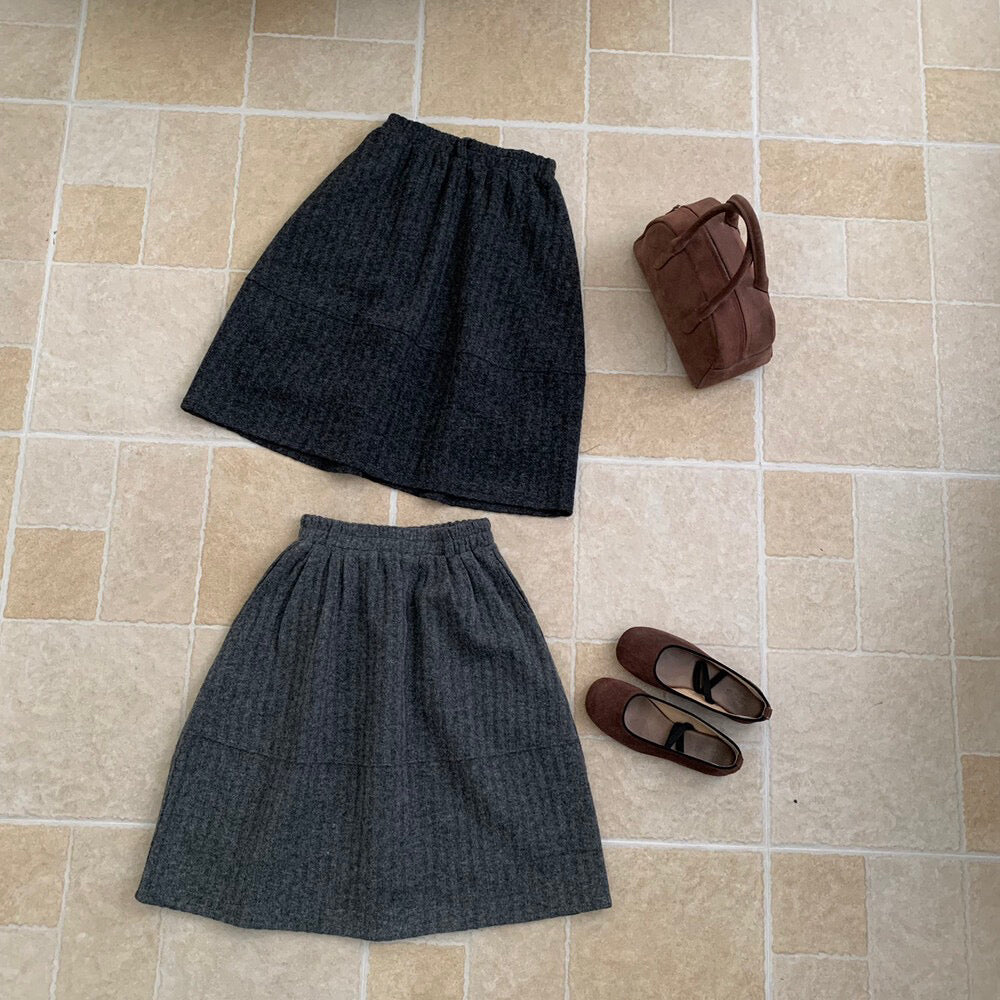 // 極遮肉暗竪紋五分毛呢裙