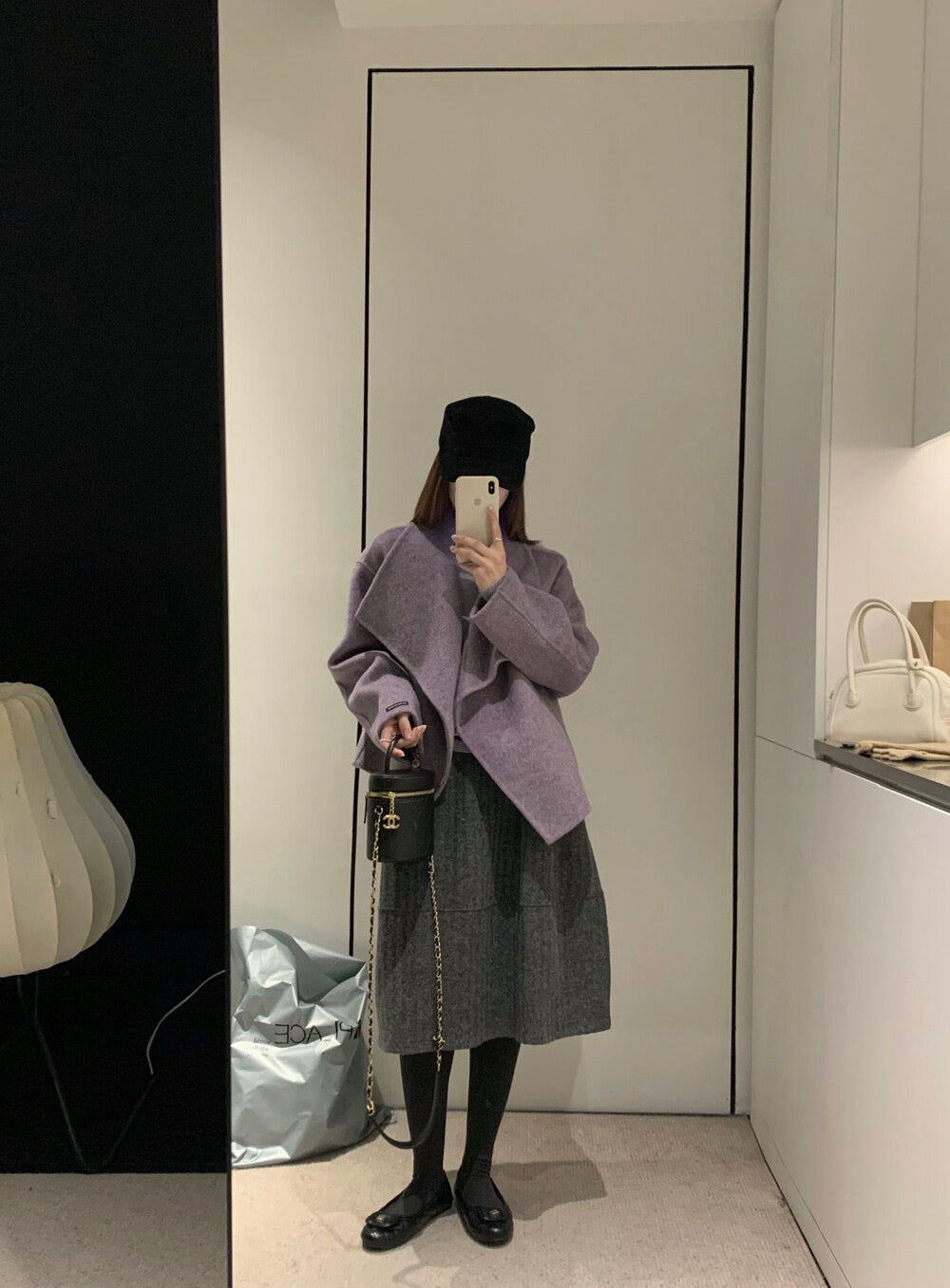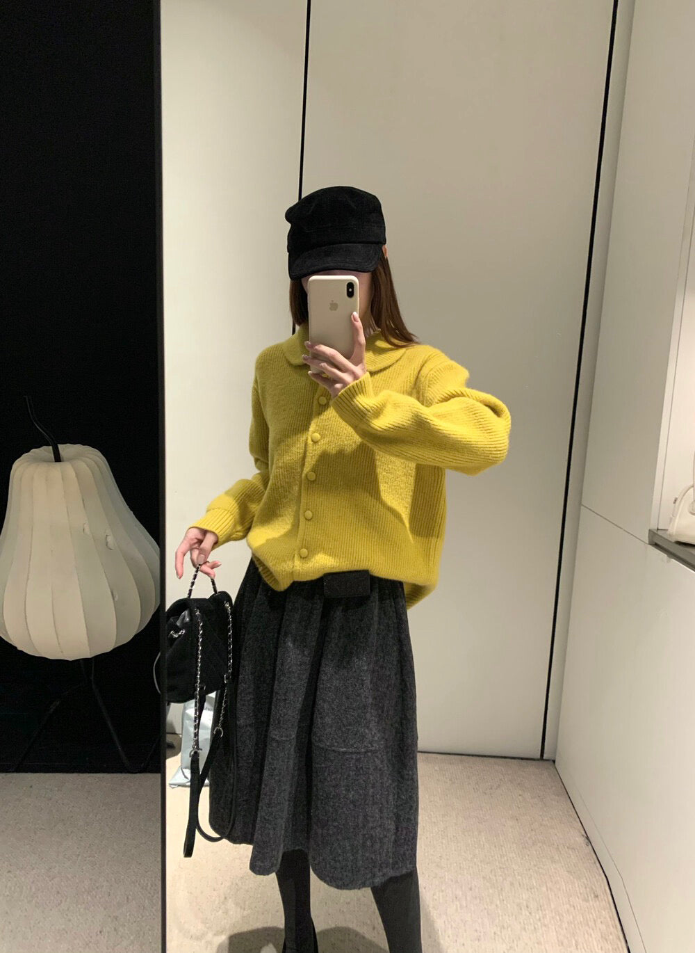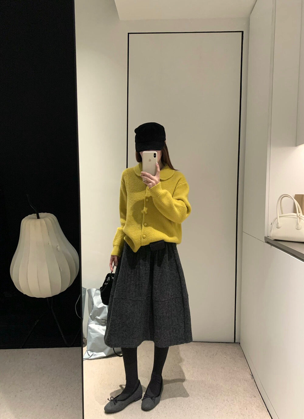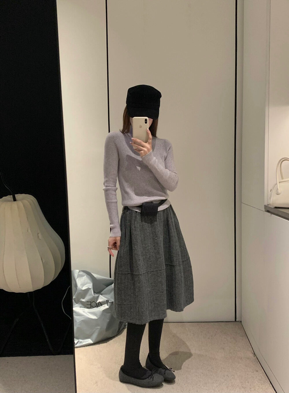 // 極遮肉暗竪紋五分毛呢裙