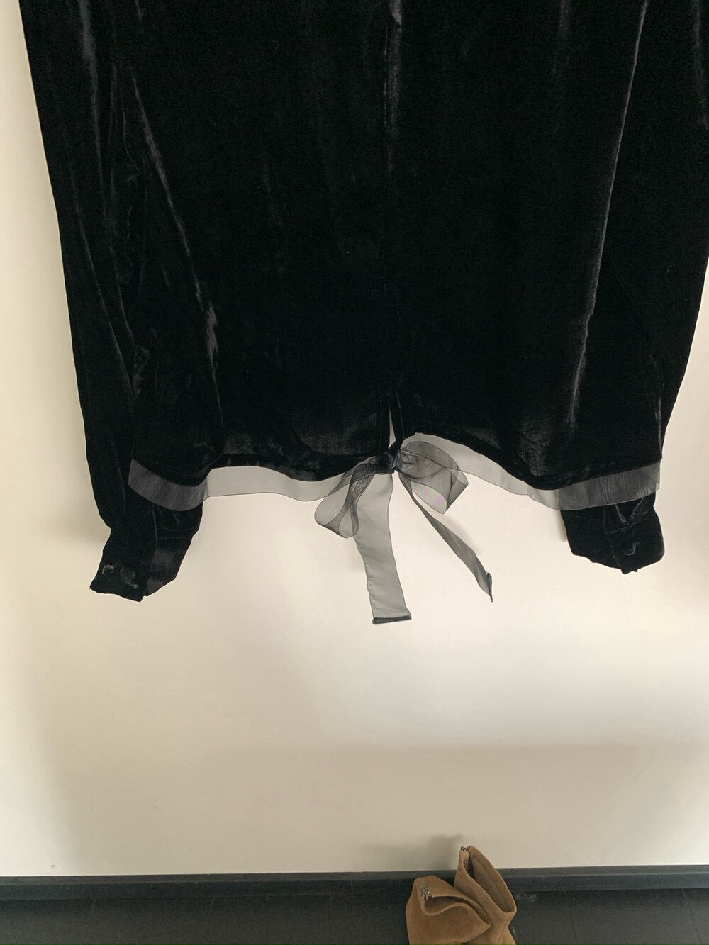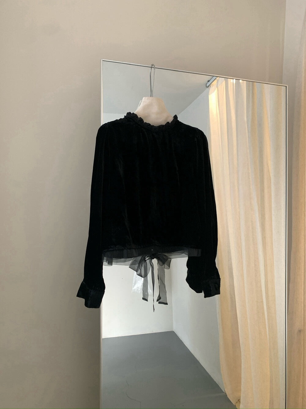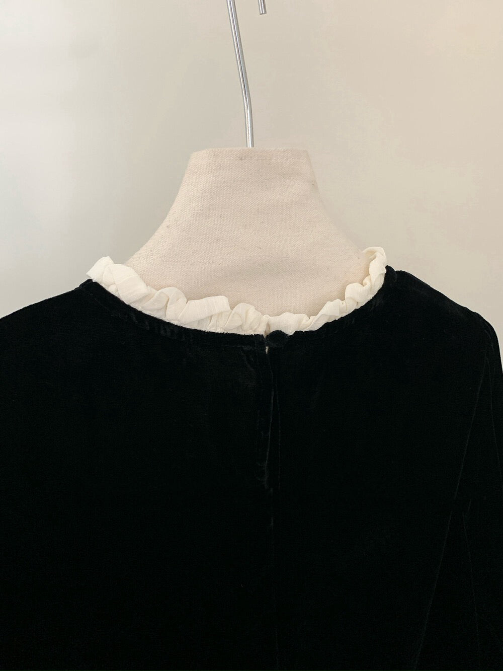 // 氣質絲絨花邊領後綁帶拼lace腳BL