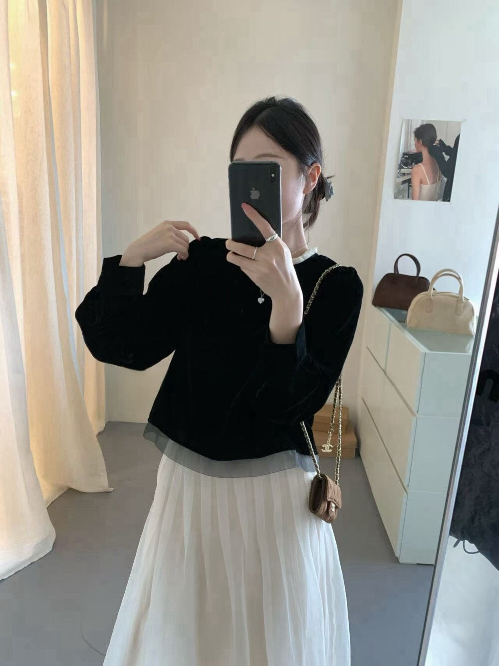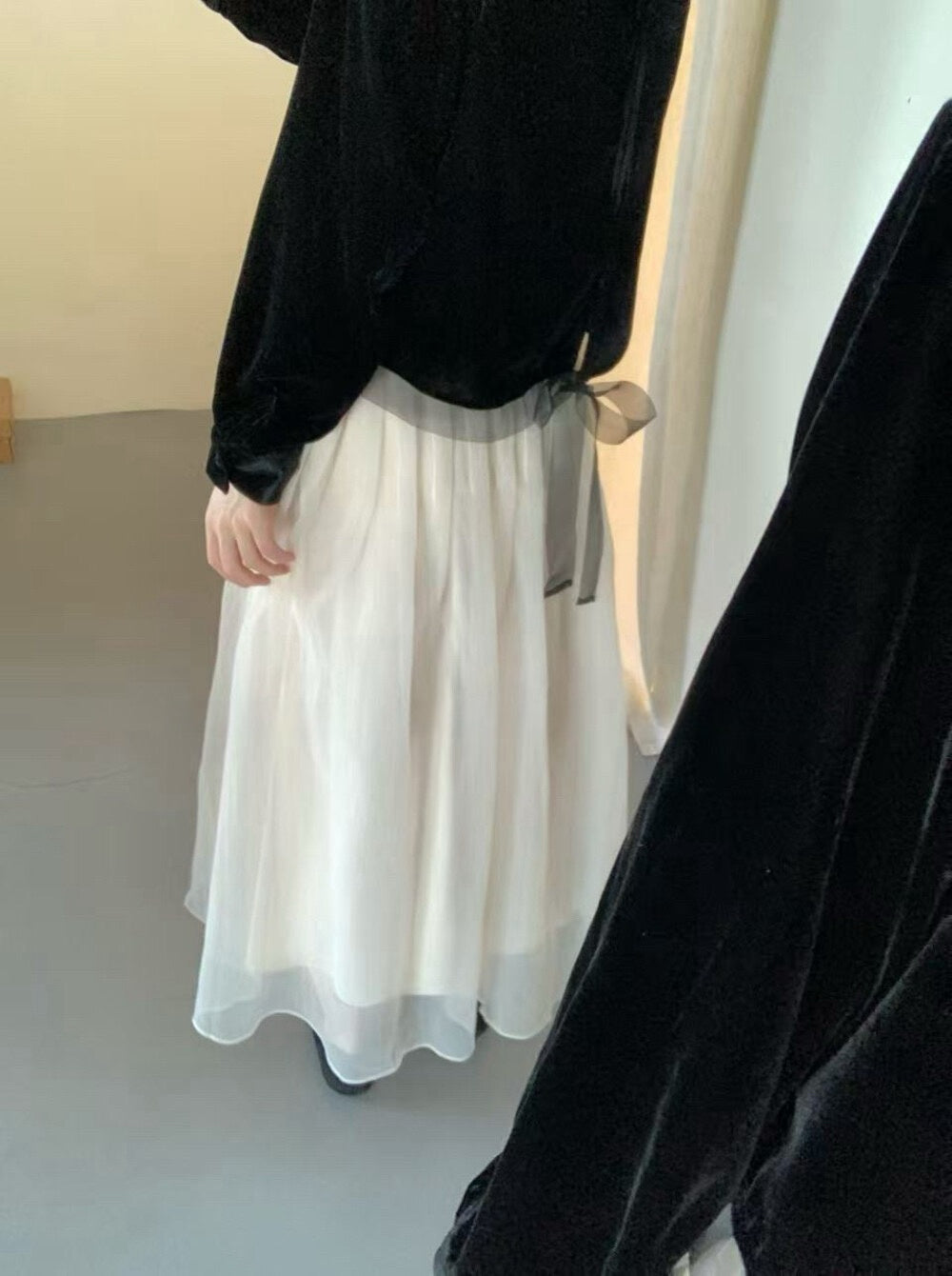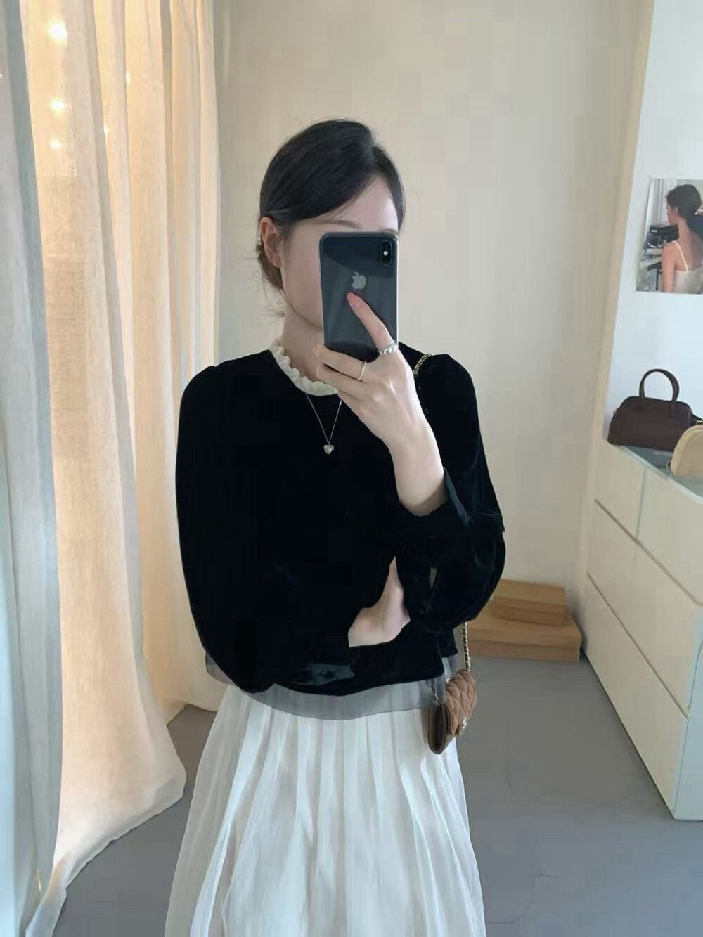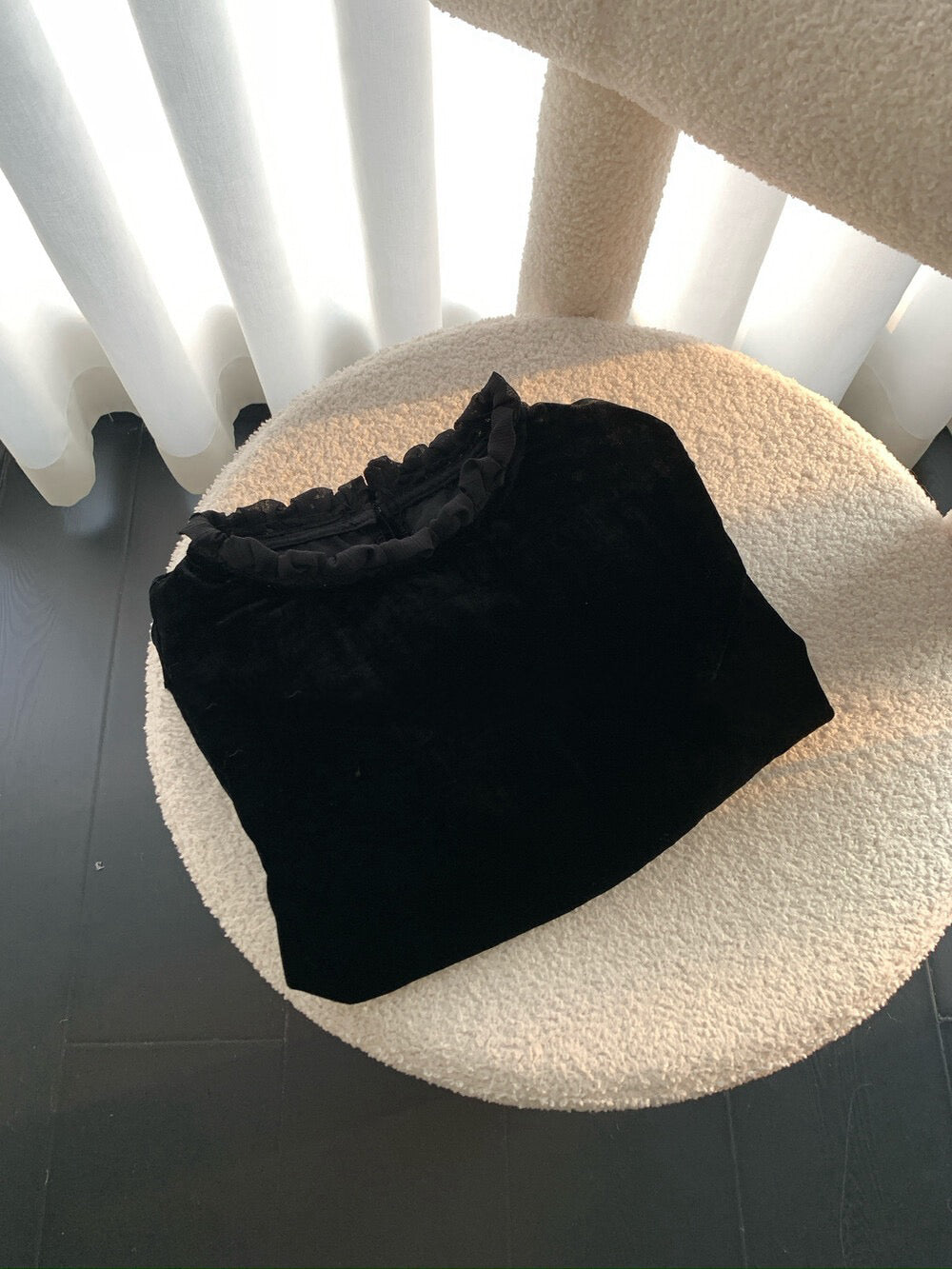 // 氣質絲絨花邊領後綁帶拼lace腳BL