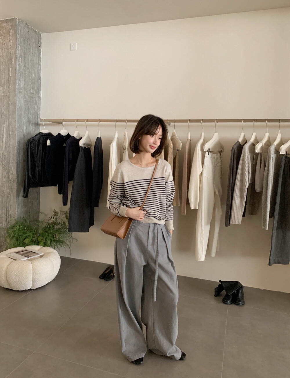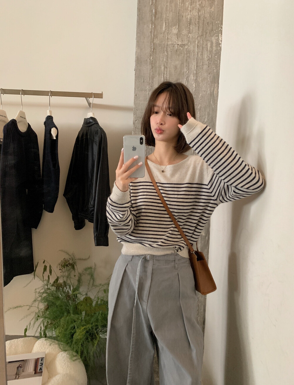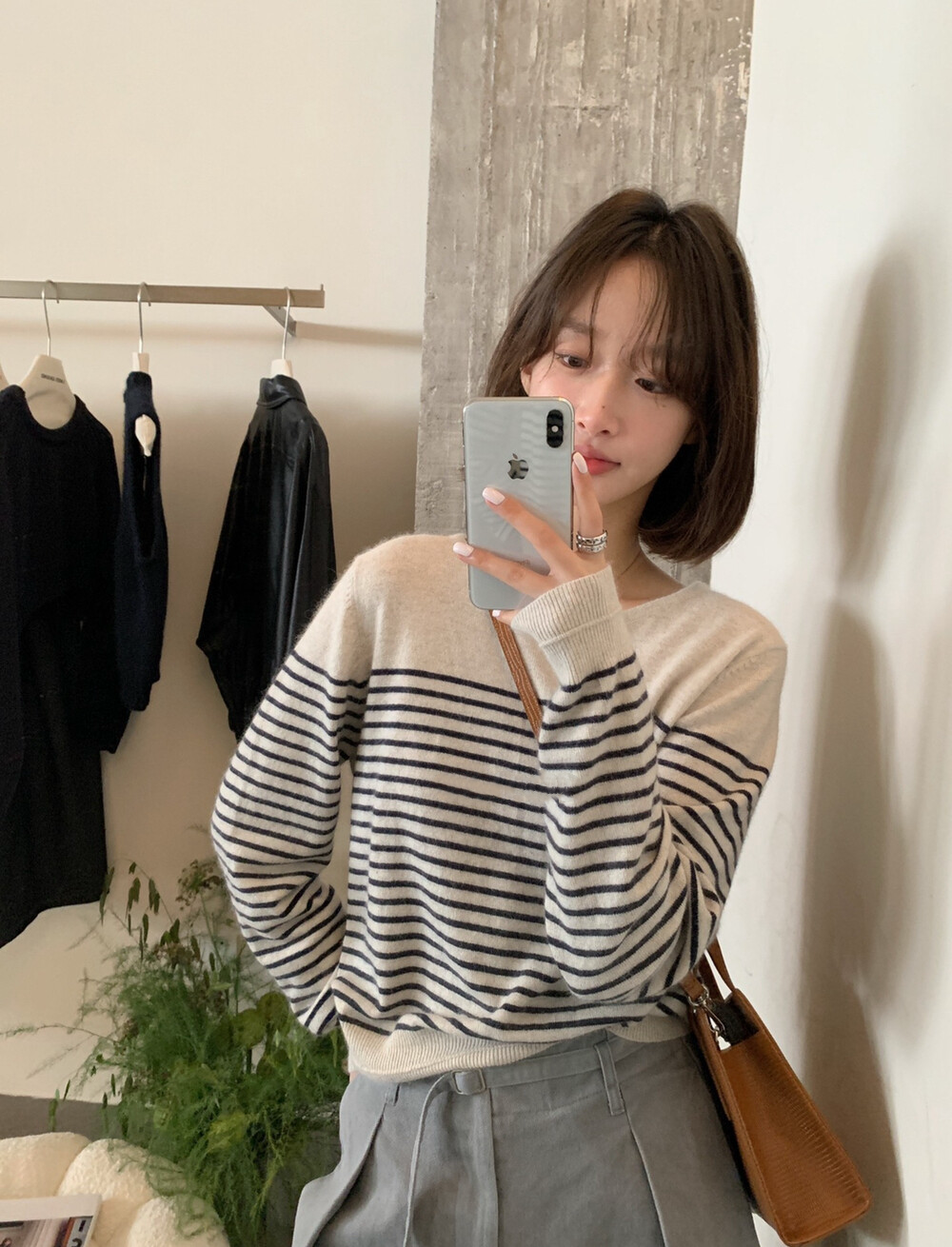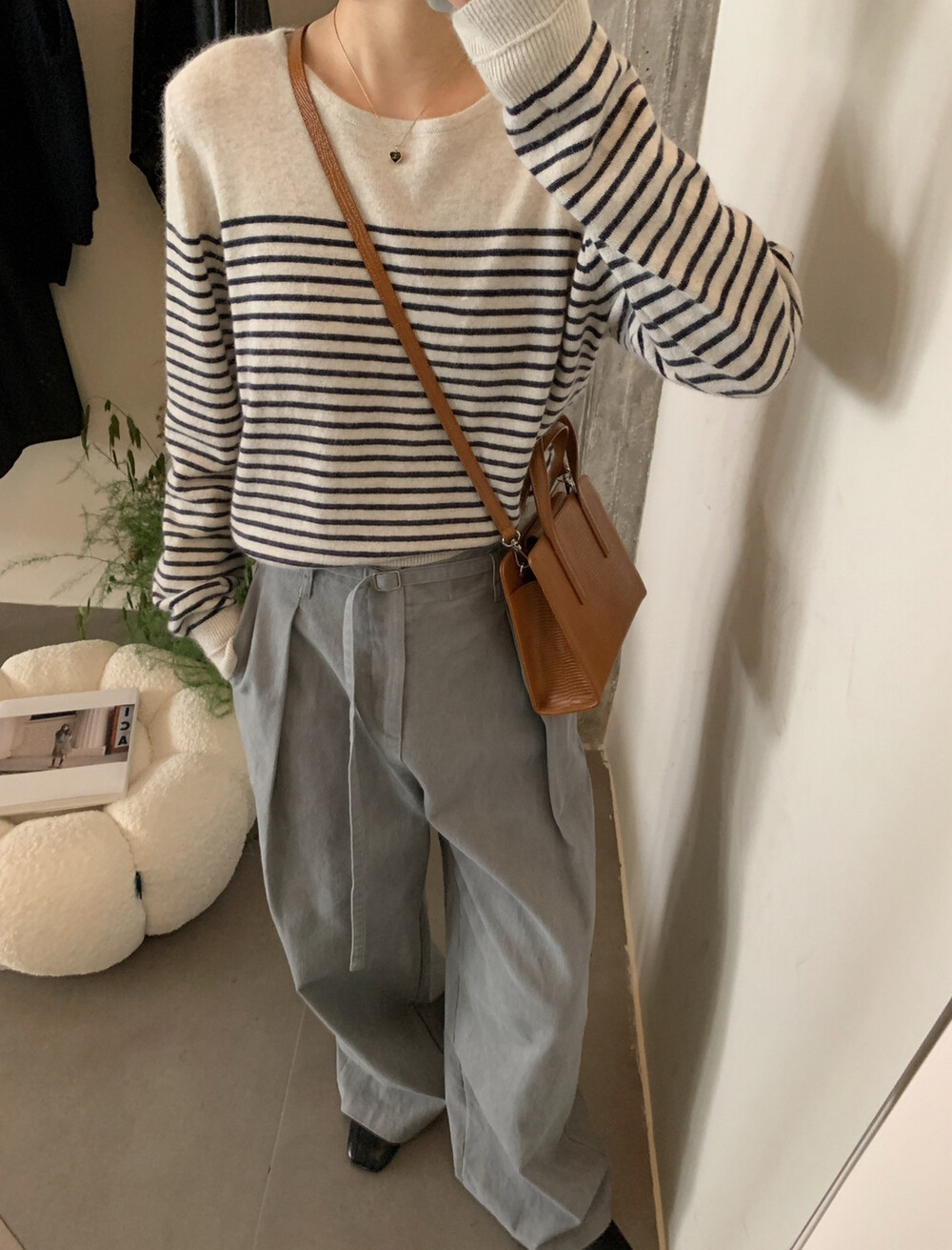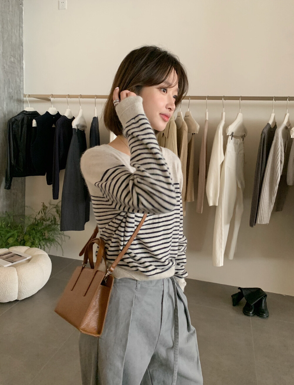 // 法式氣質間條針織上衣