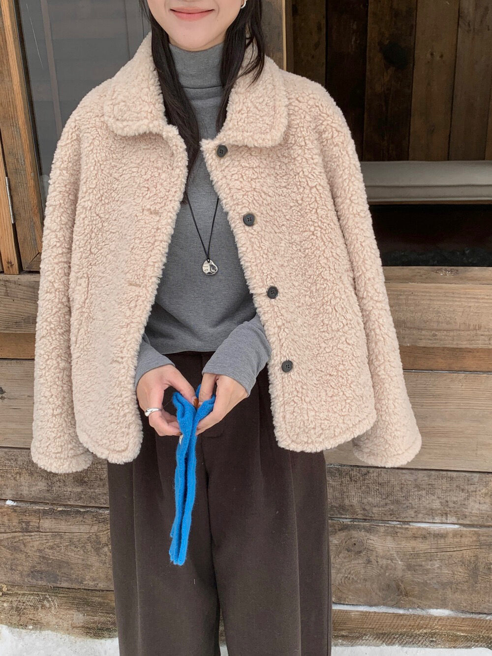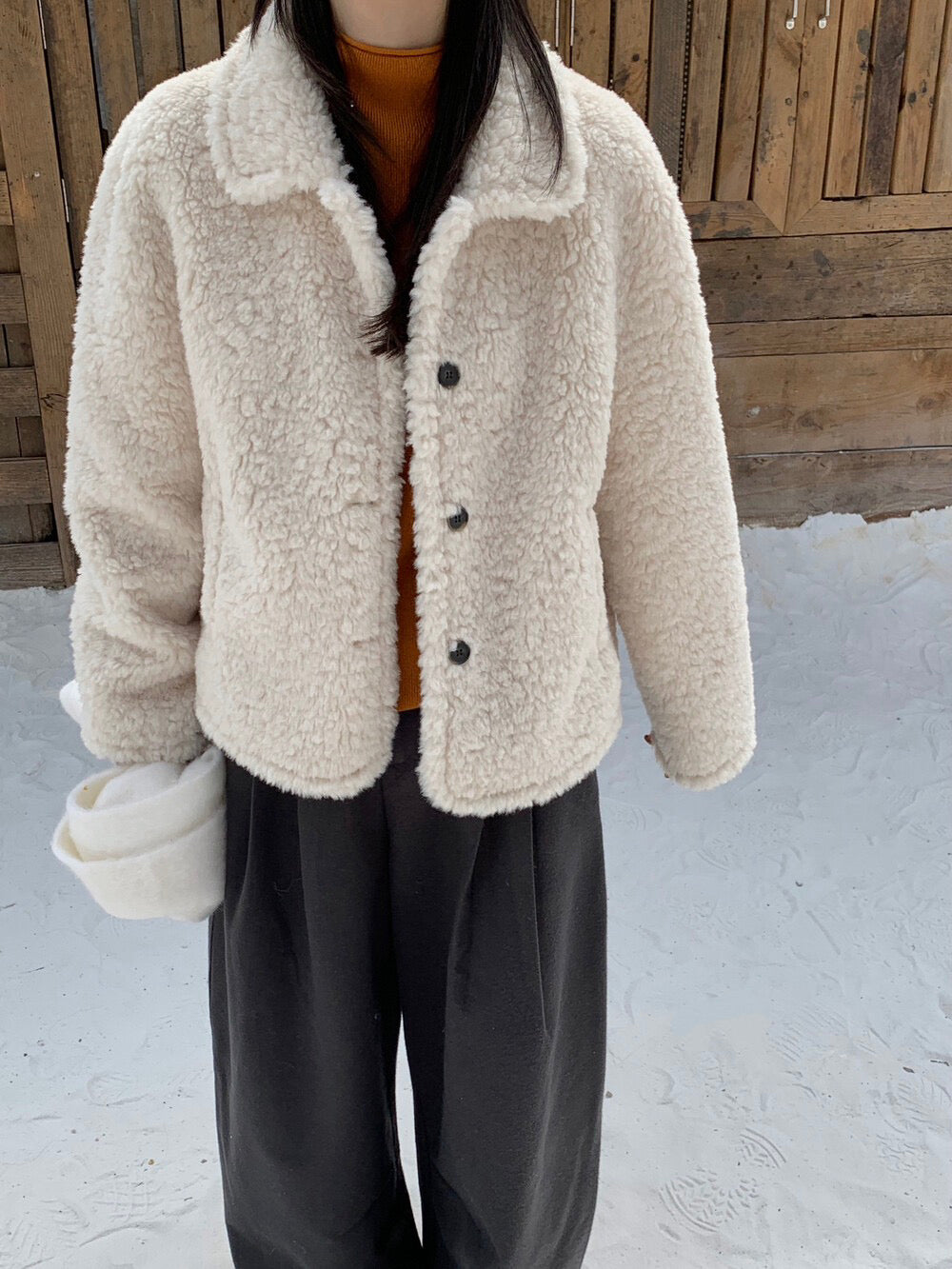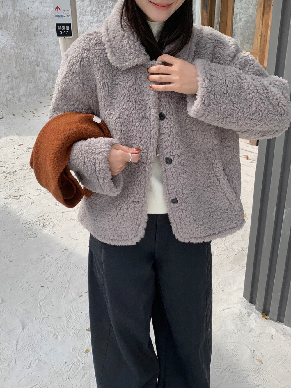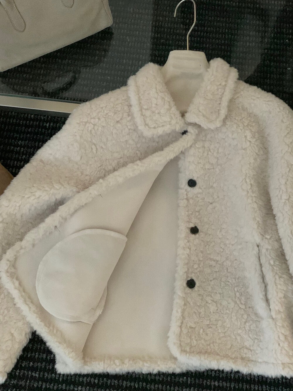 // 減齡款皮毛一體翻領毛毛外套