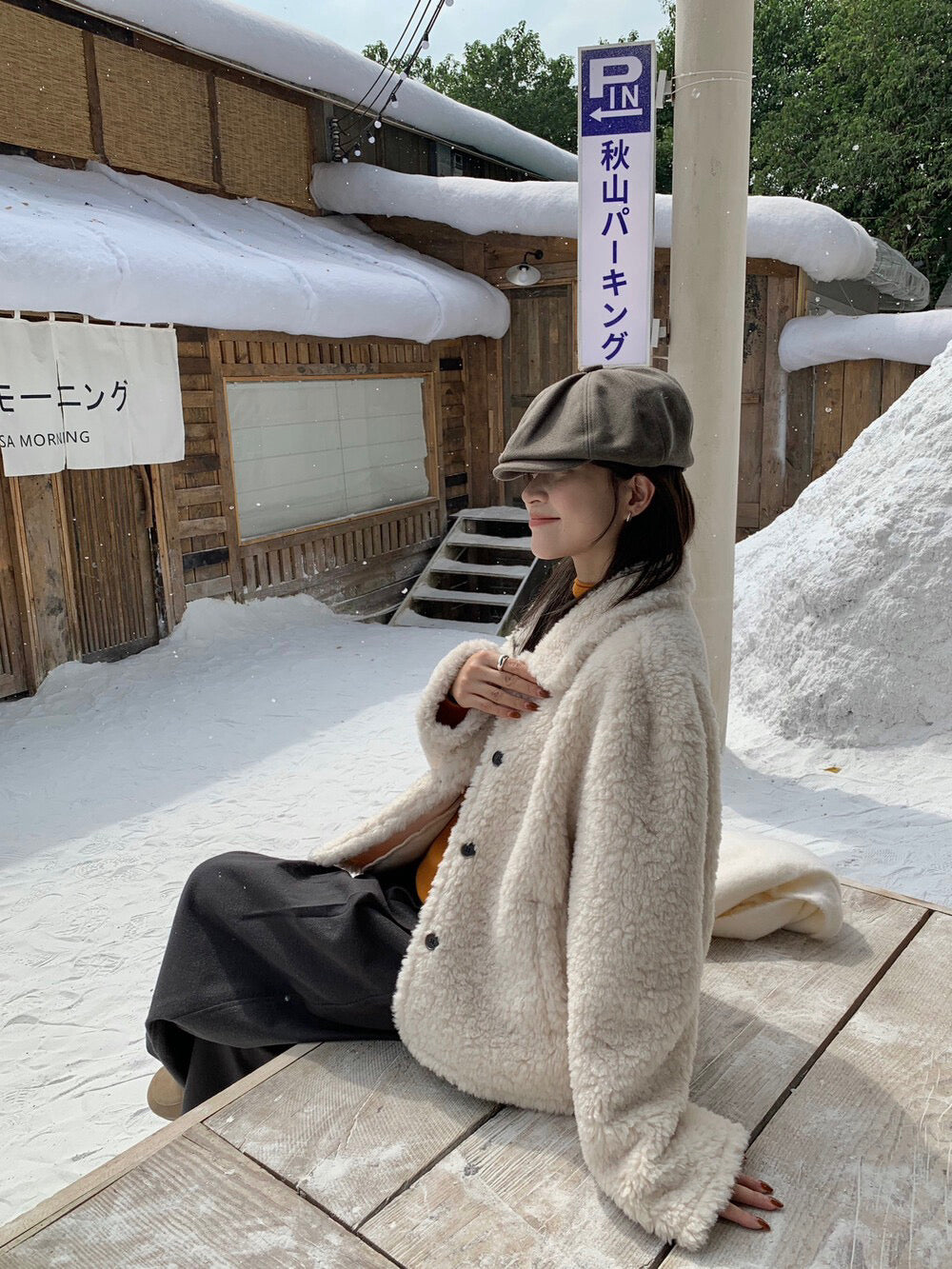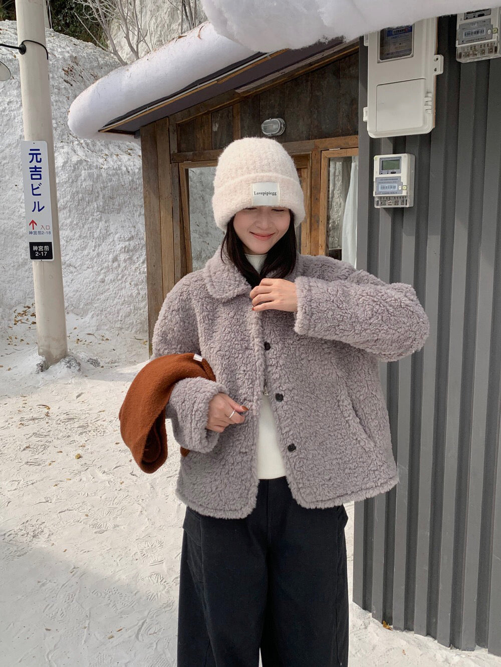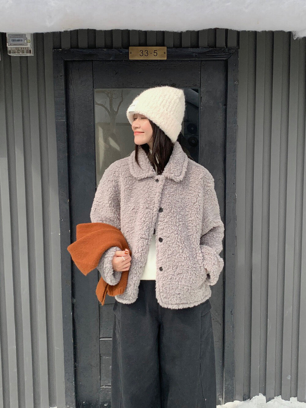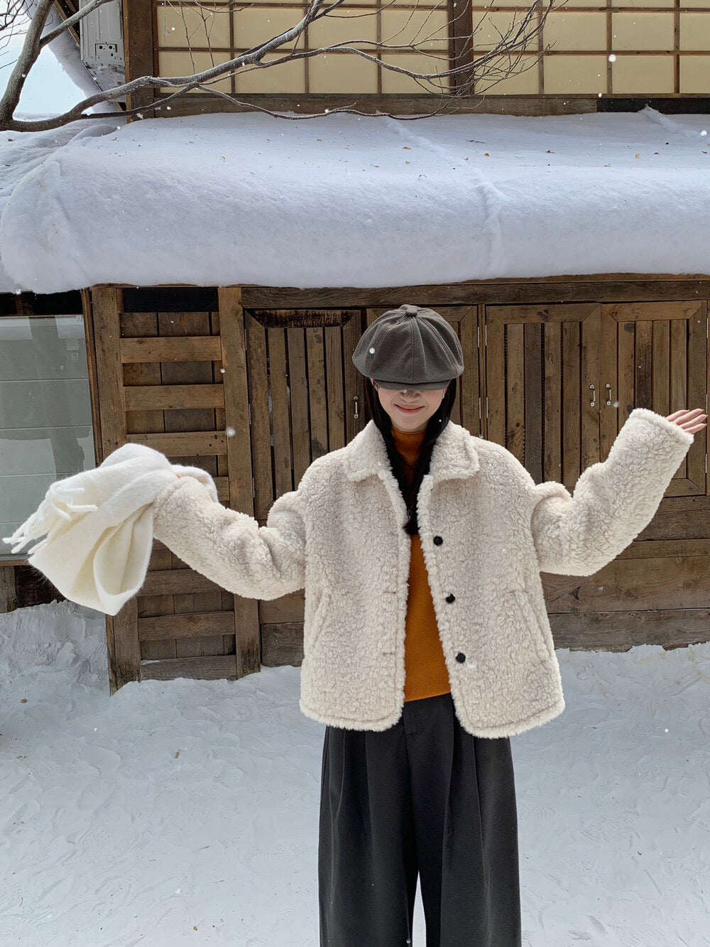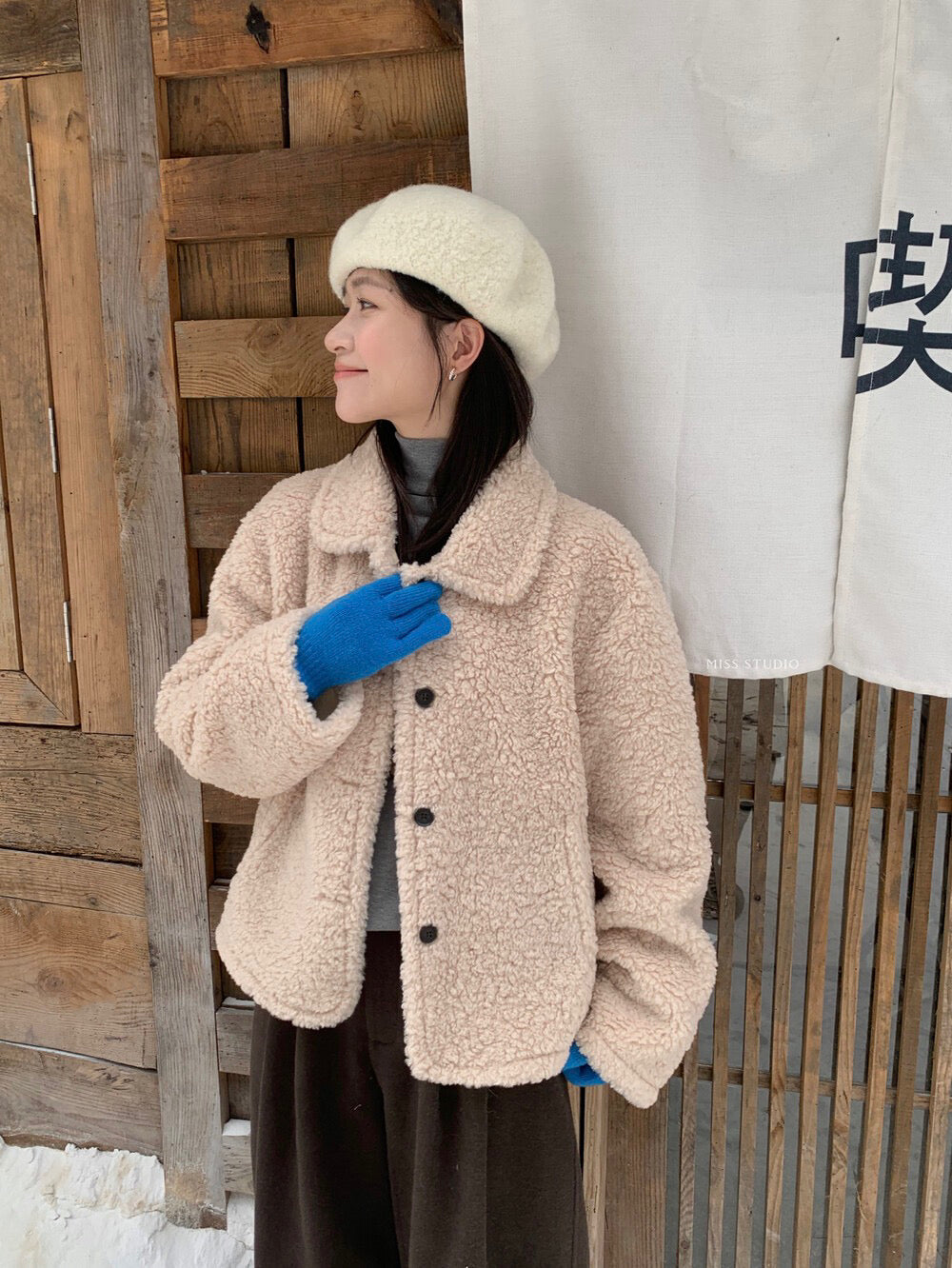 // 減齡款皮毛一體翻領毛毛外套