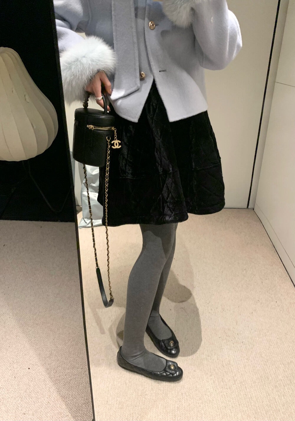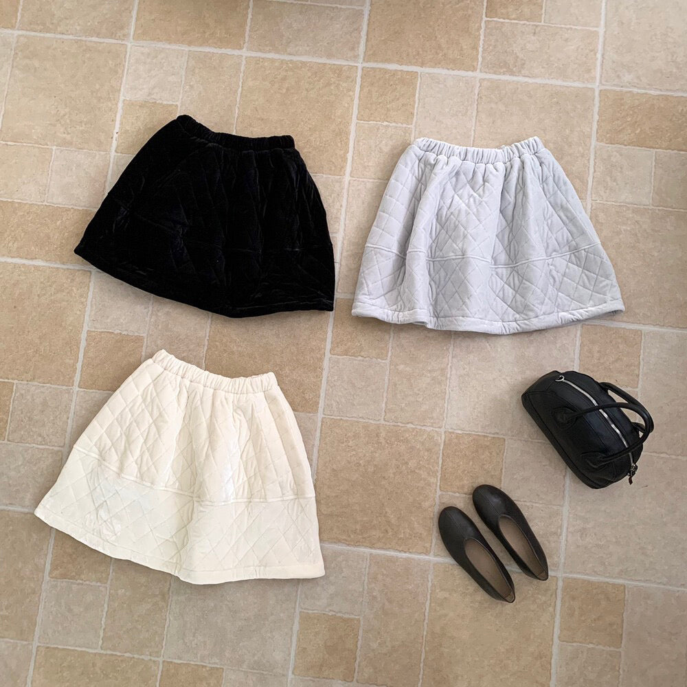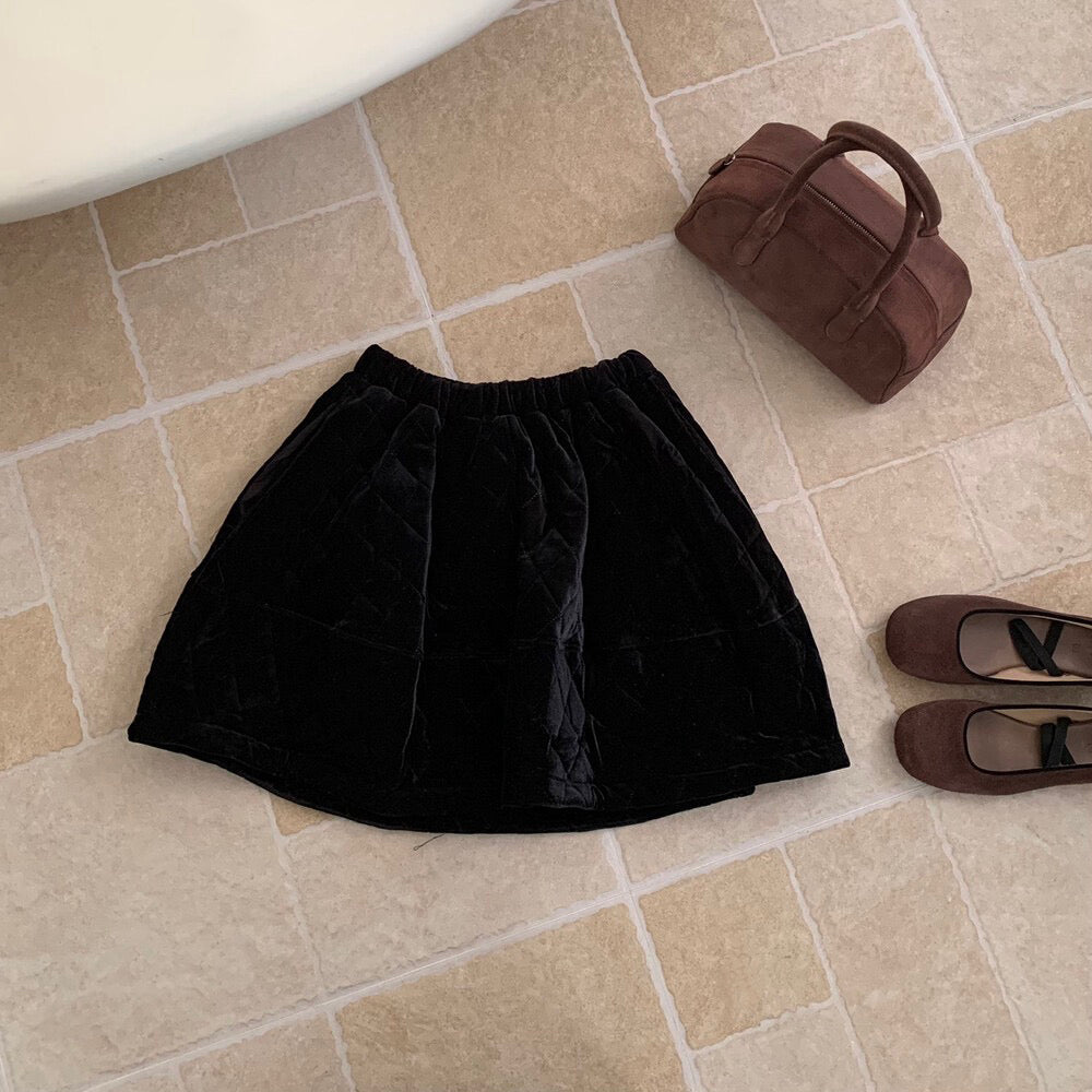 // 減齡款絲絨菱格蓬蓬短裙