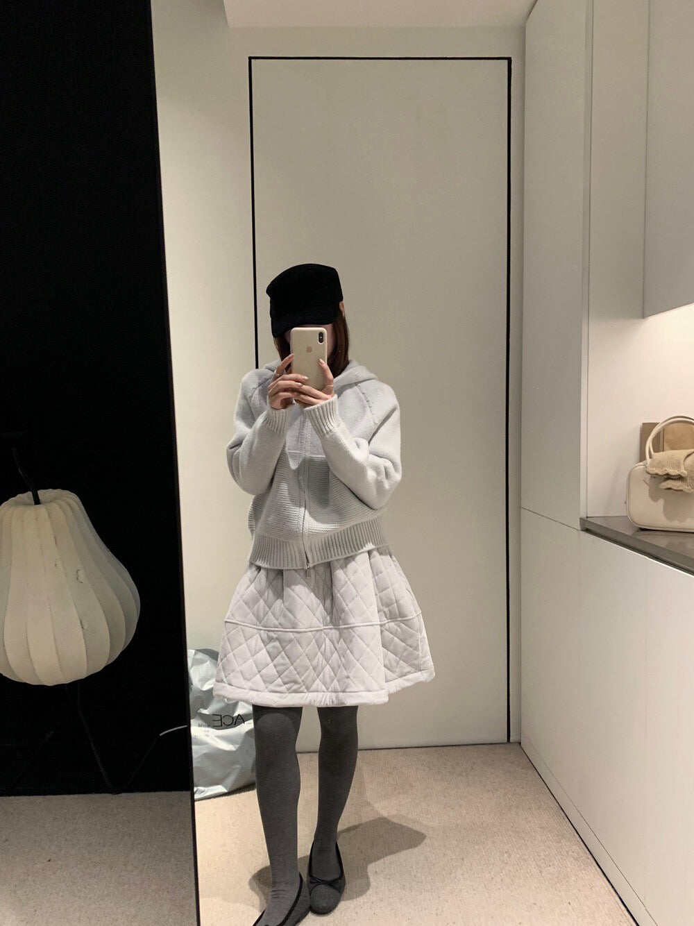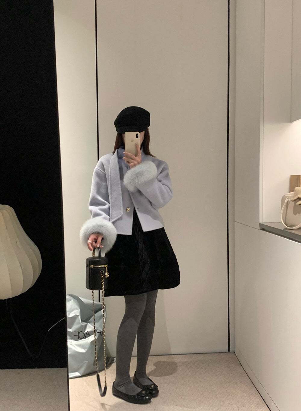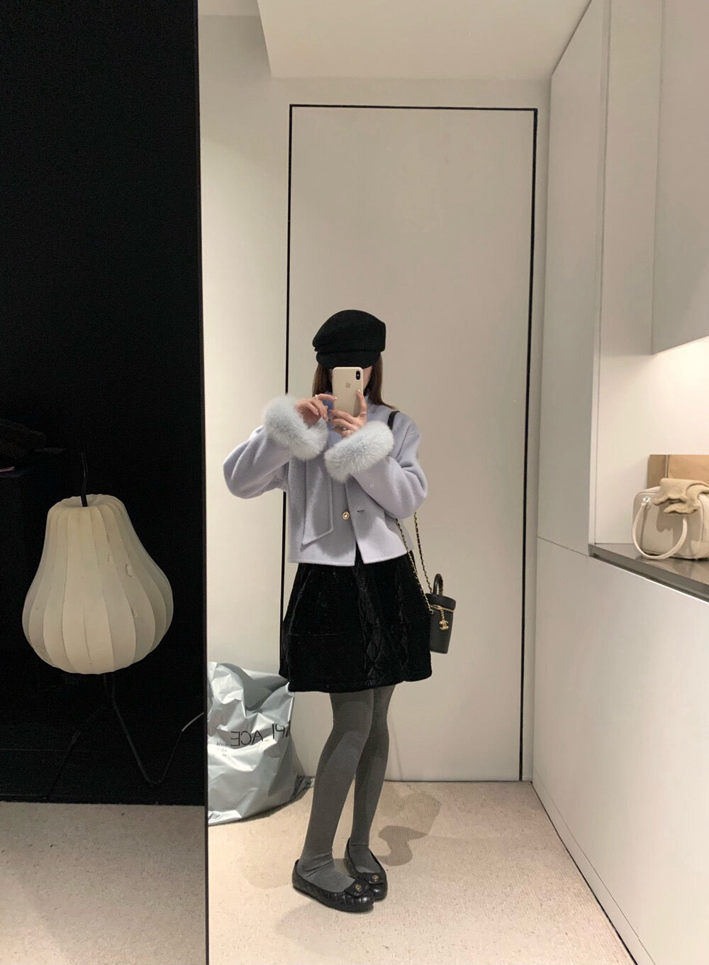 // 減齡款絲絨菱格蓬蓬短裙