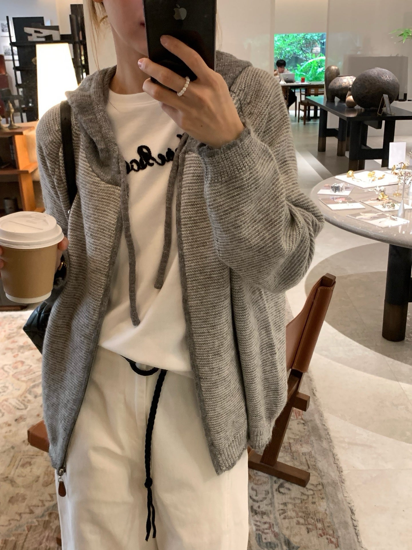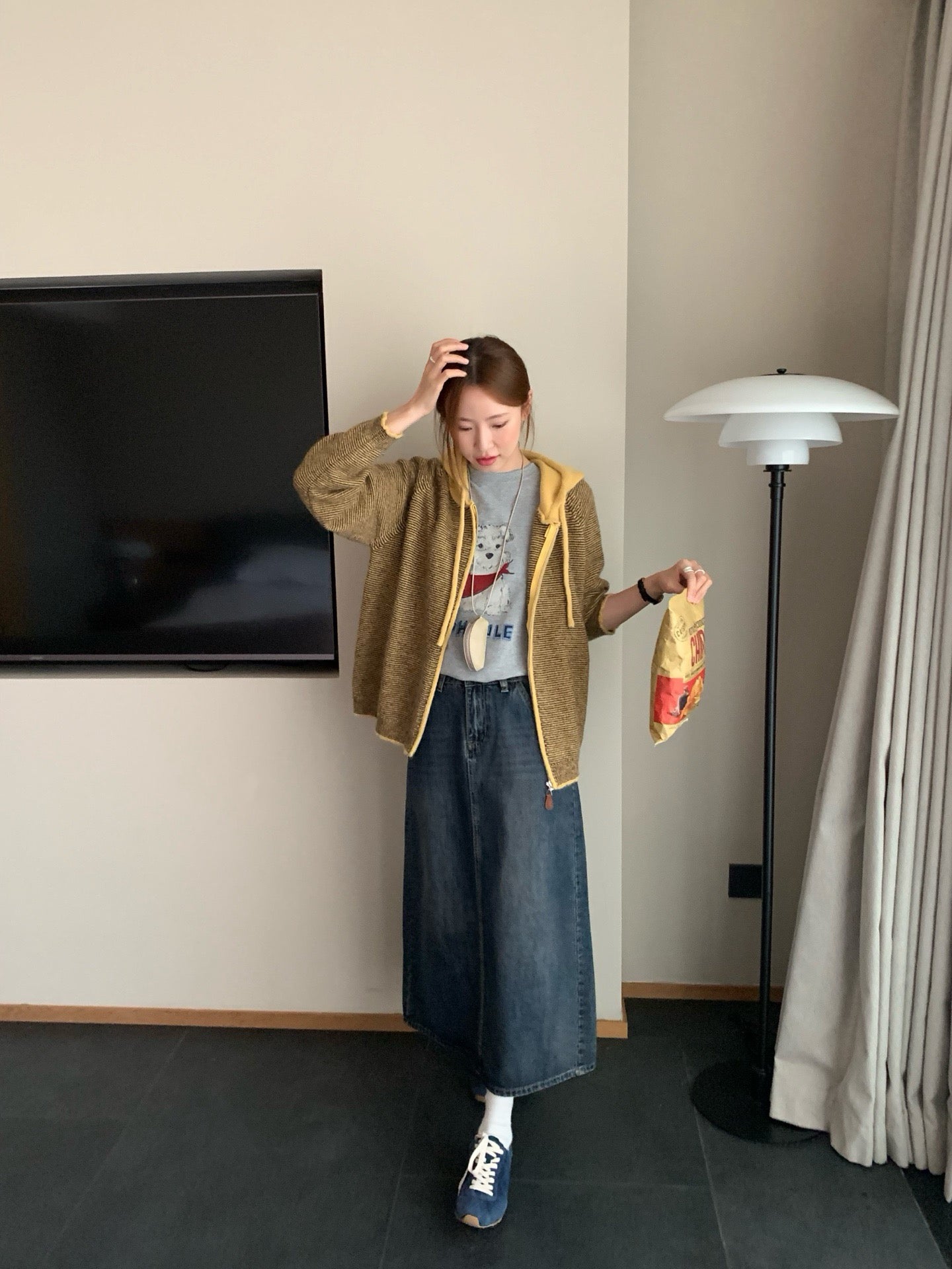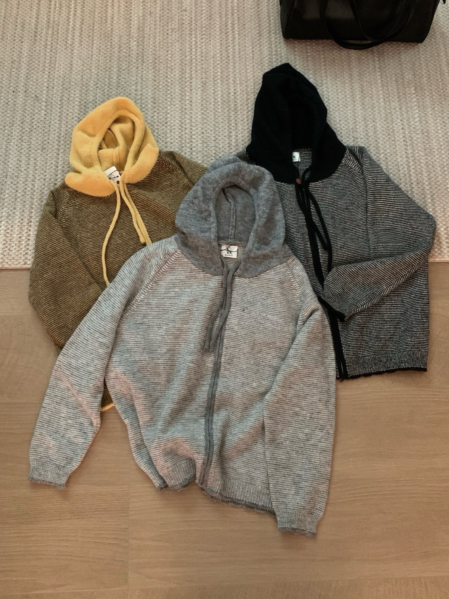 // 拼色連帽細間條拉鍊CD