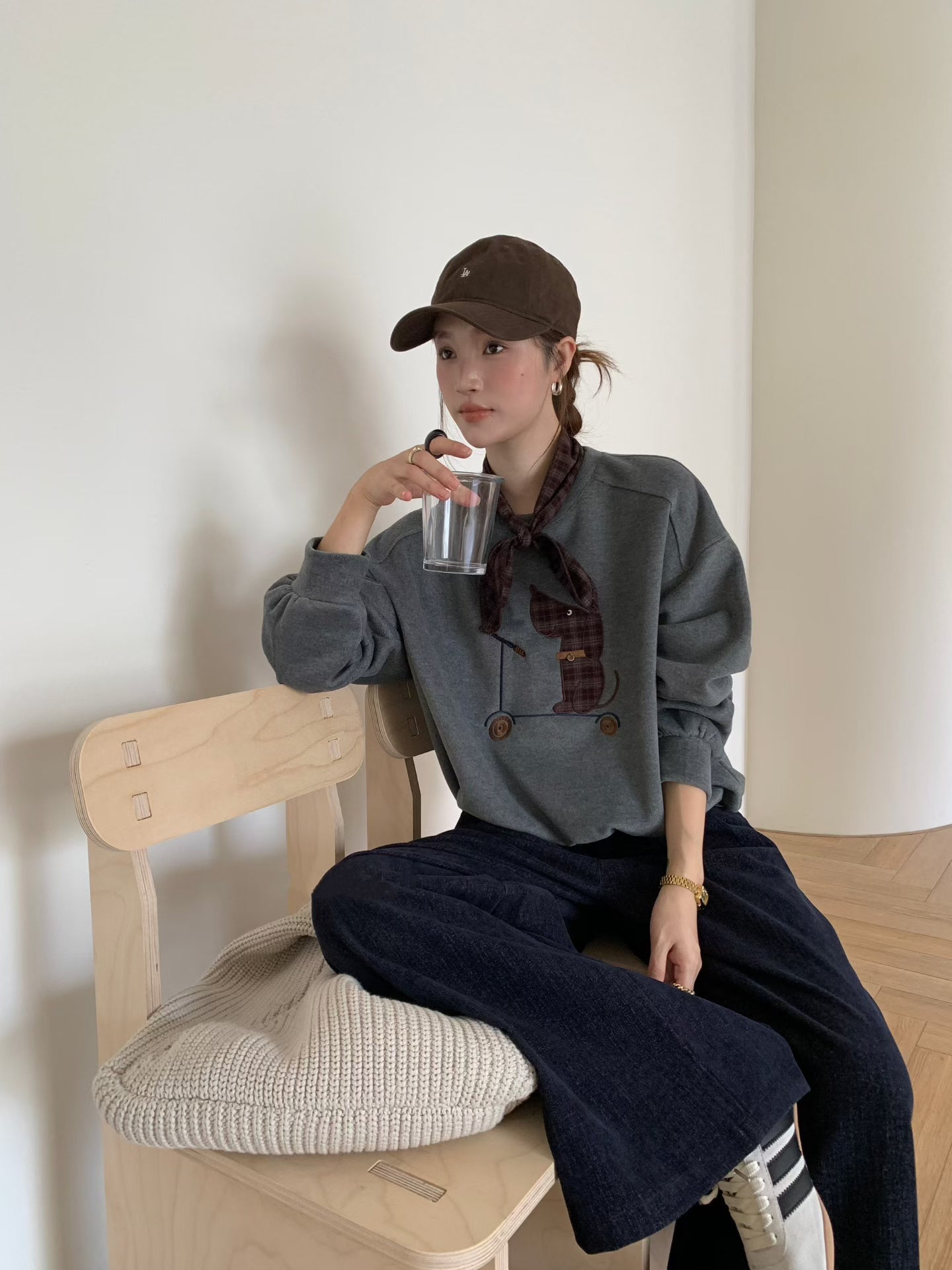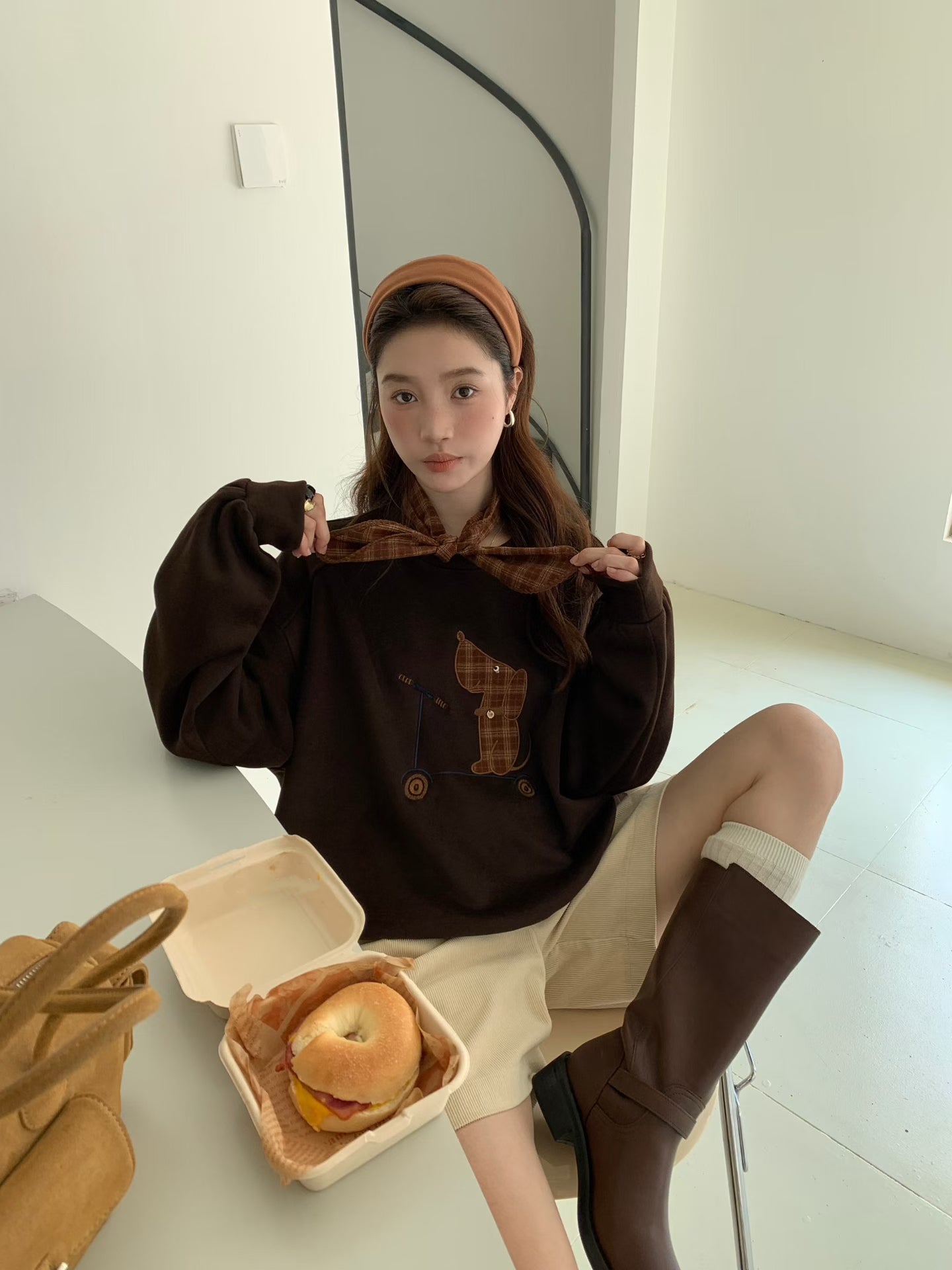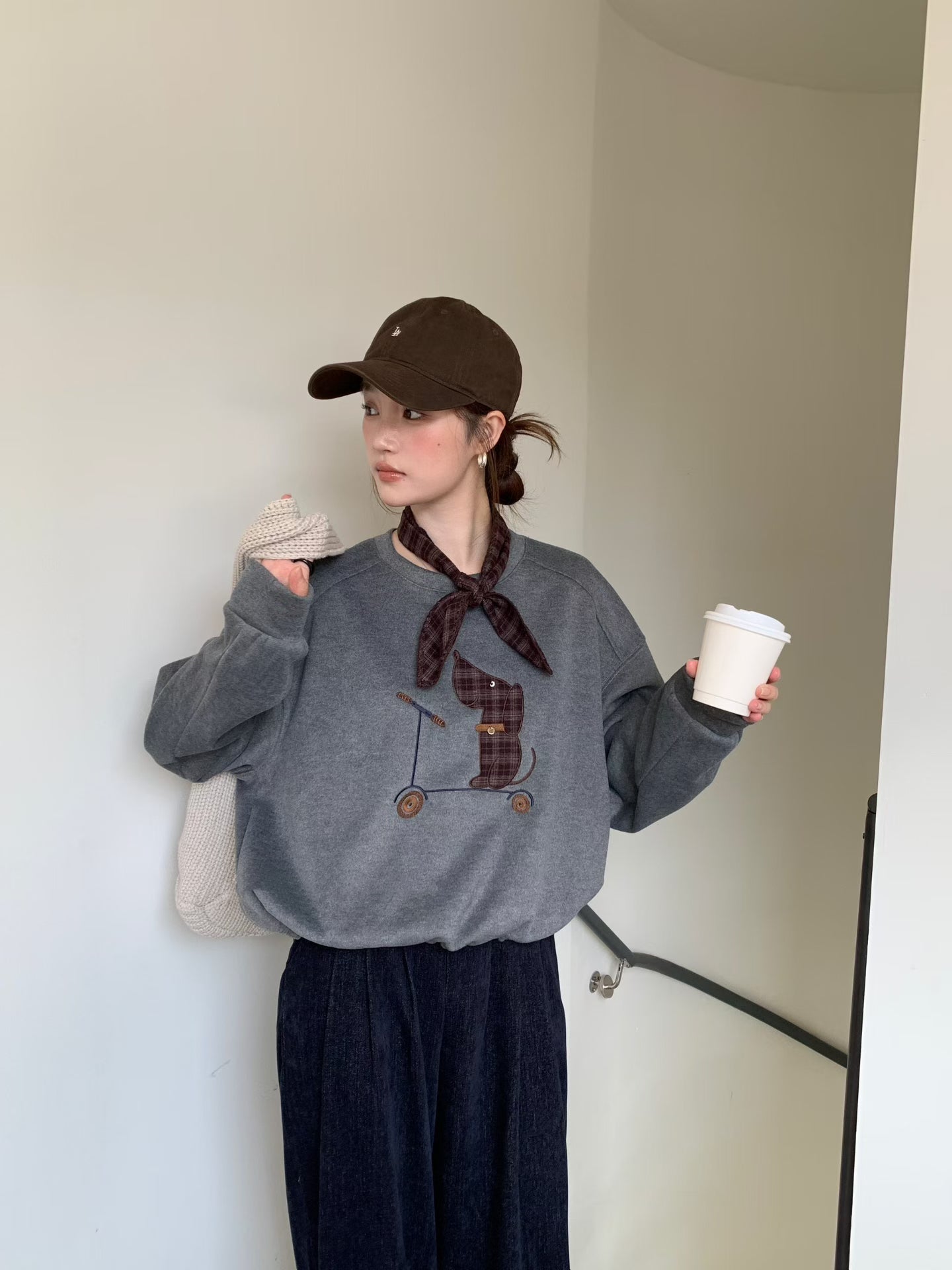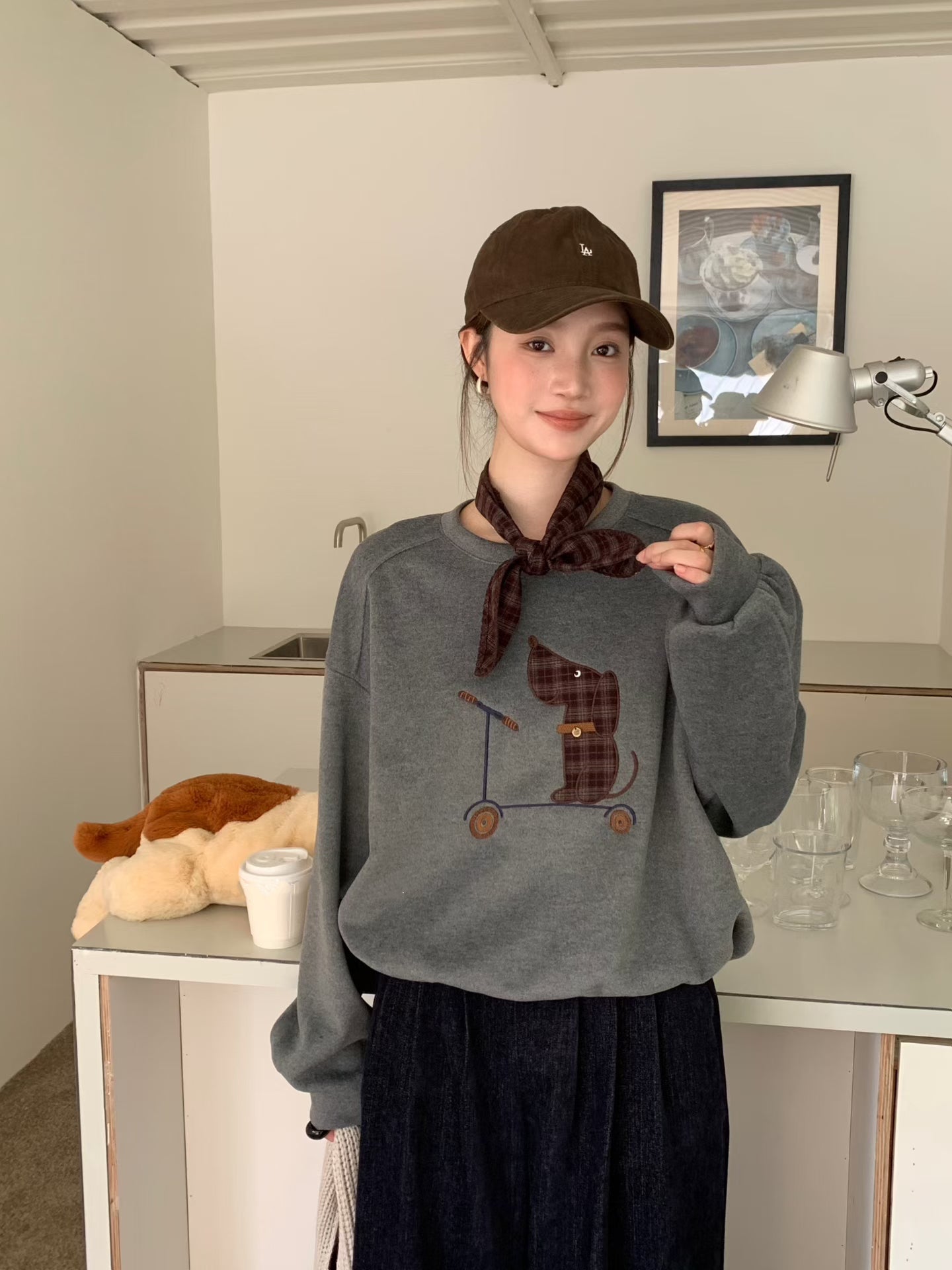 // 滑板小狗連絲巾衛衣