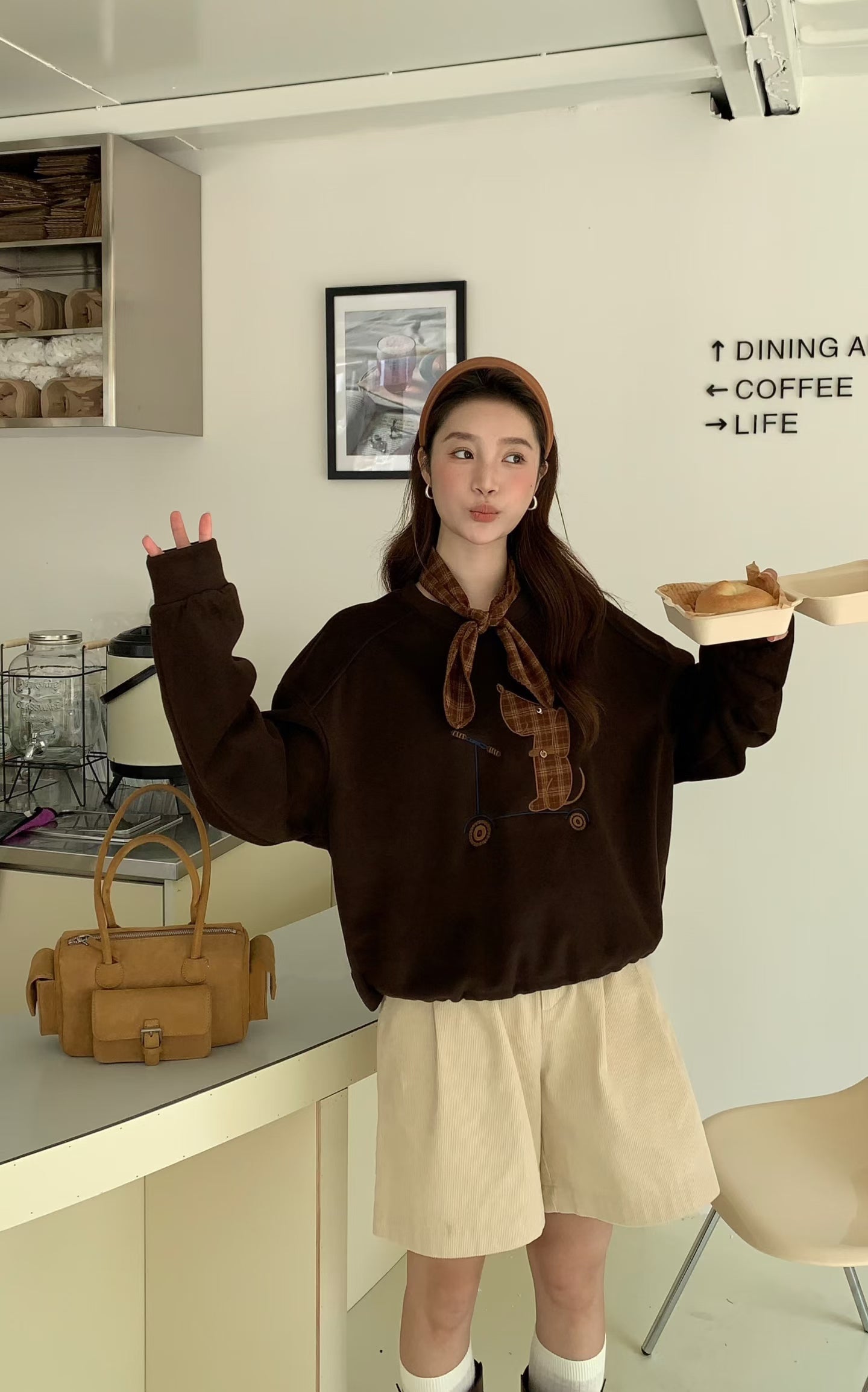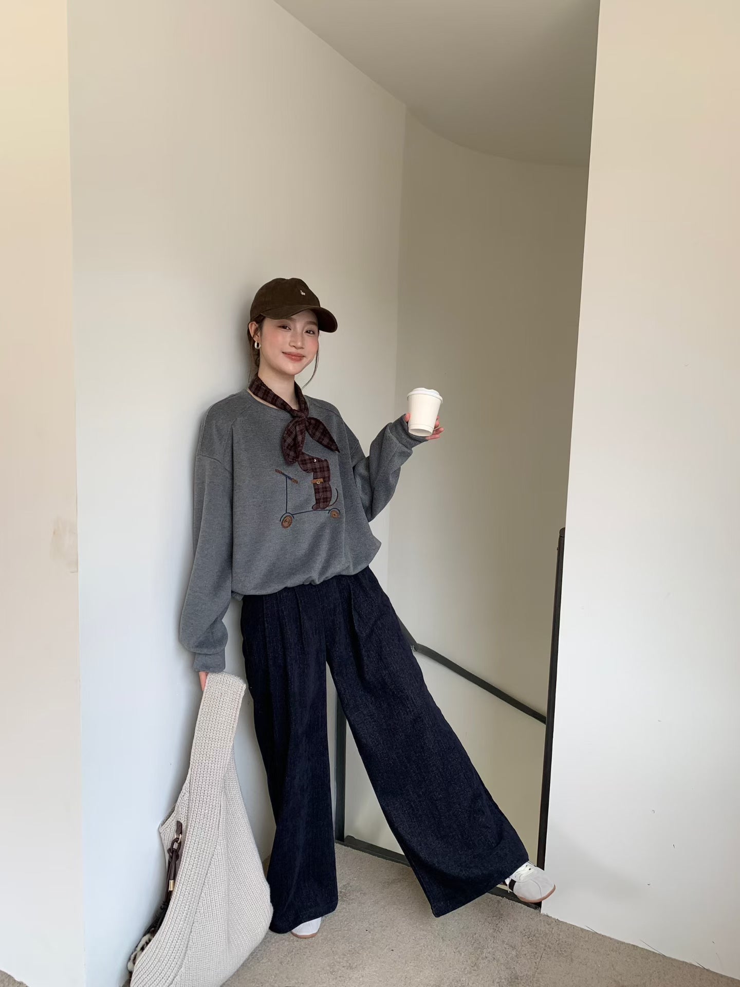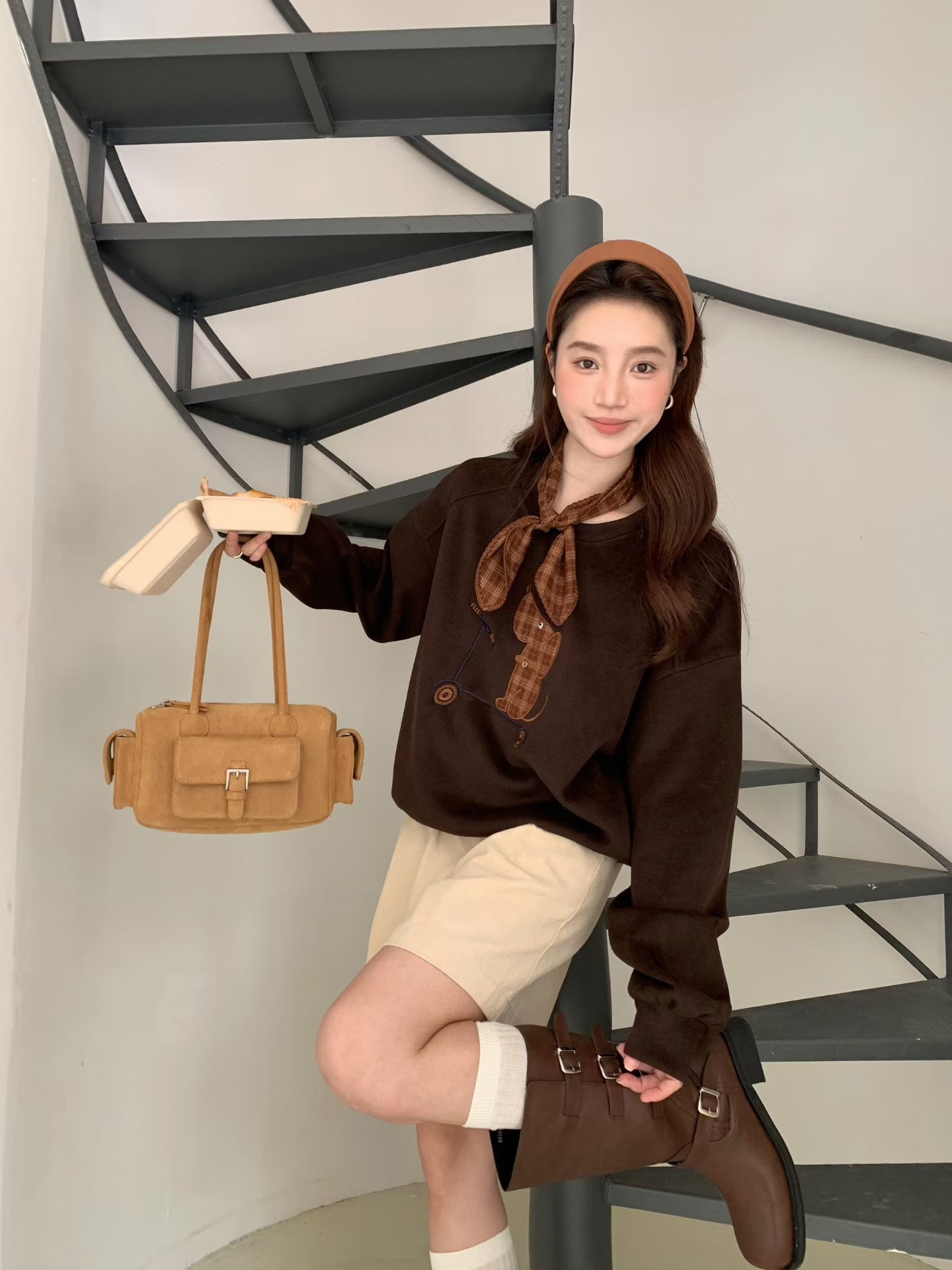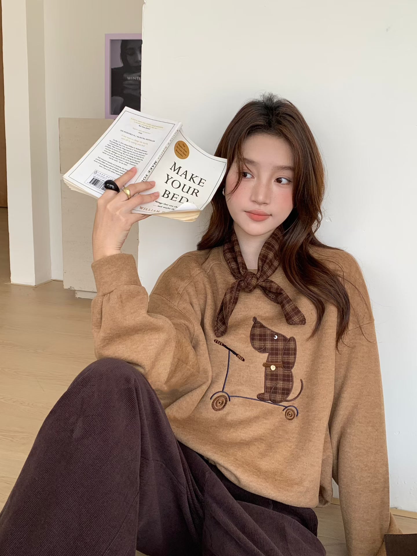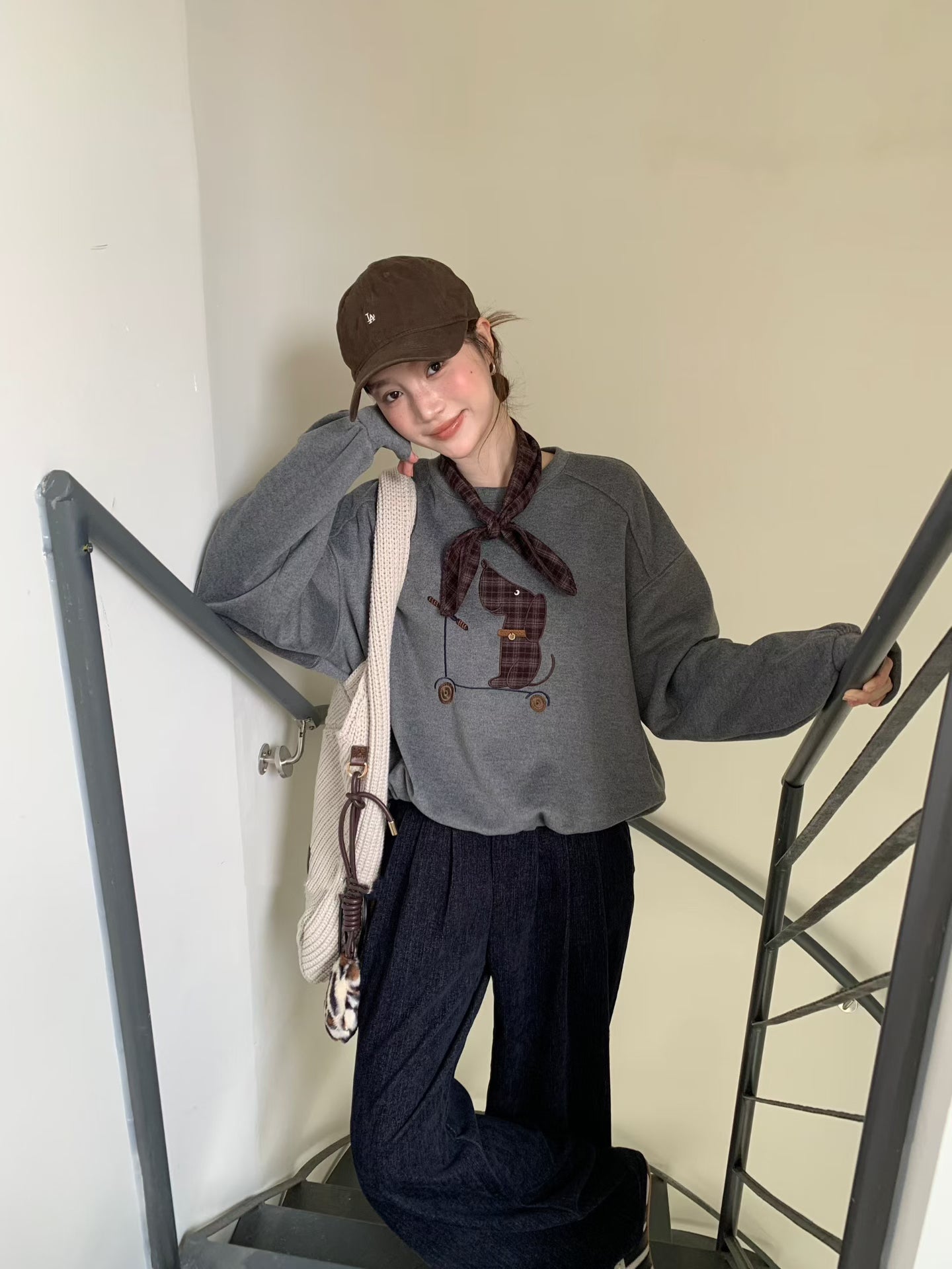 // 滑板小狗連絲巾衛衣