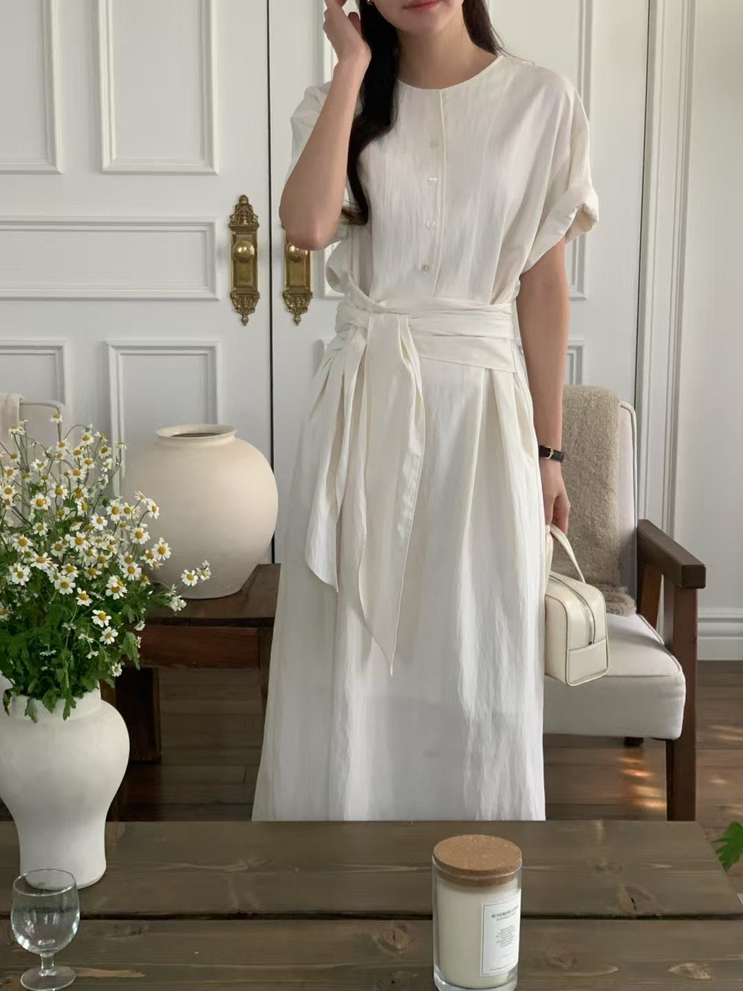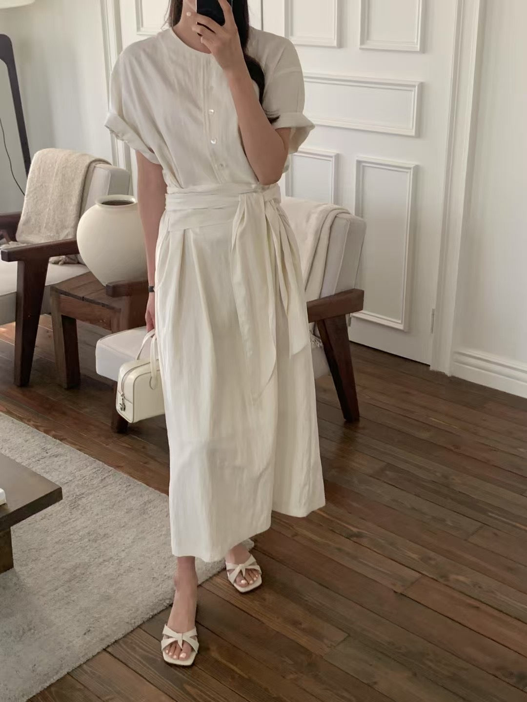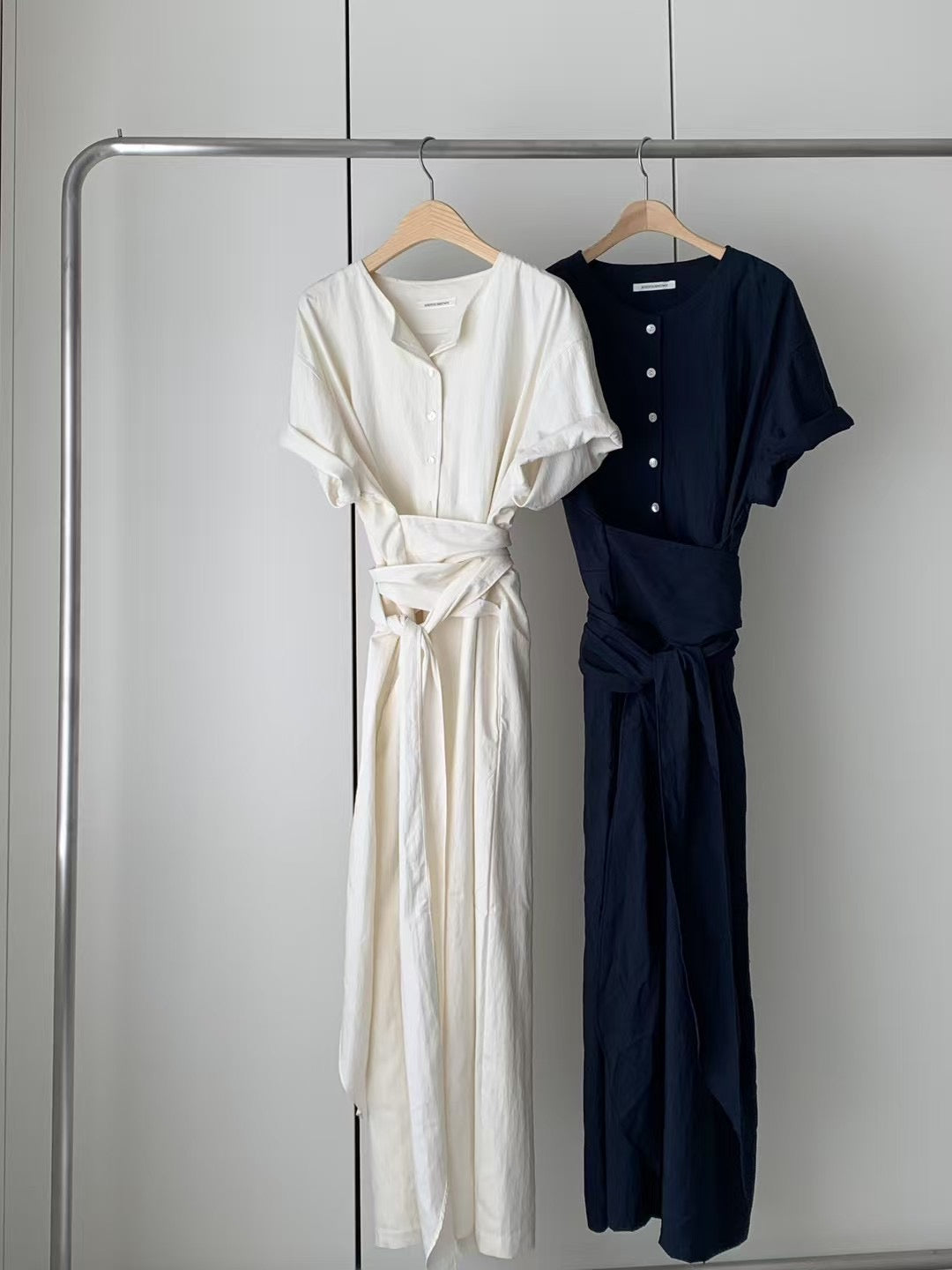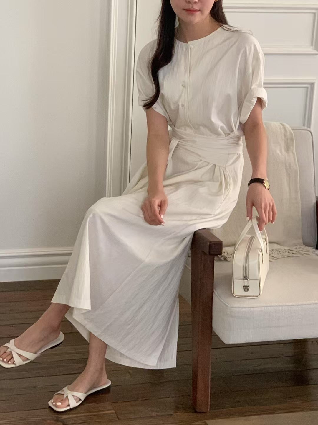 (現貨) 設計師款 // 綁帶腰半排扣短袖OPS