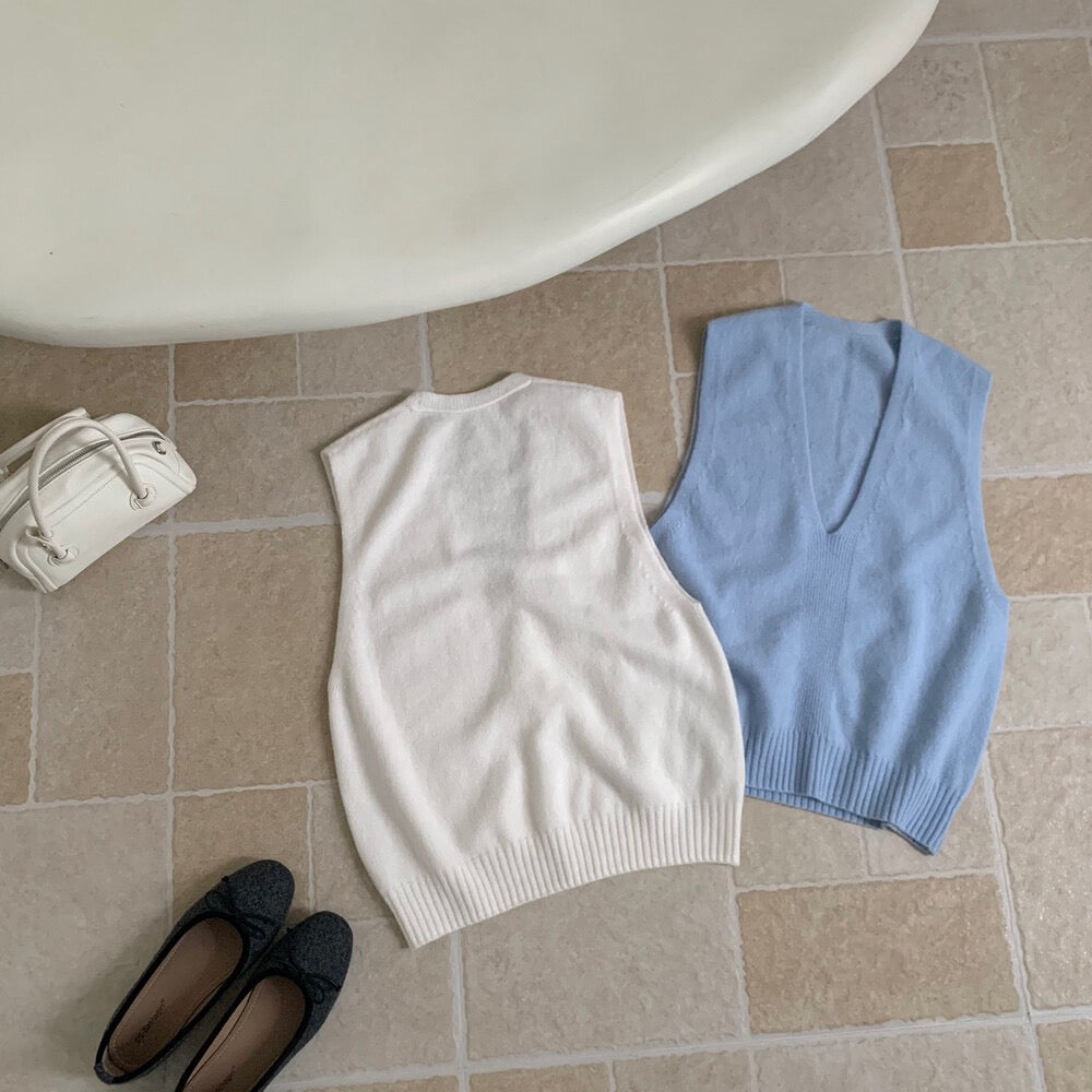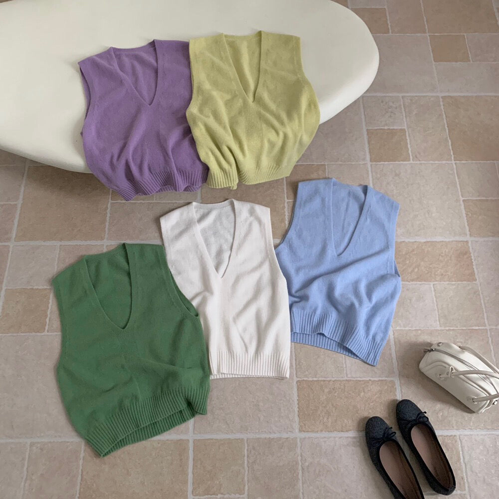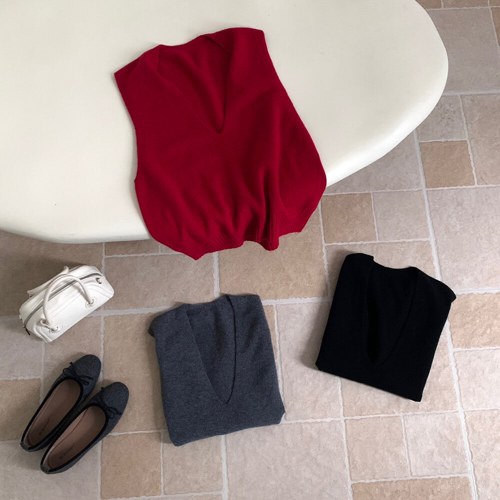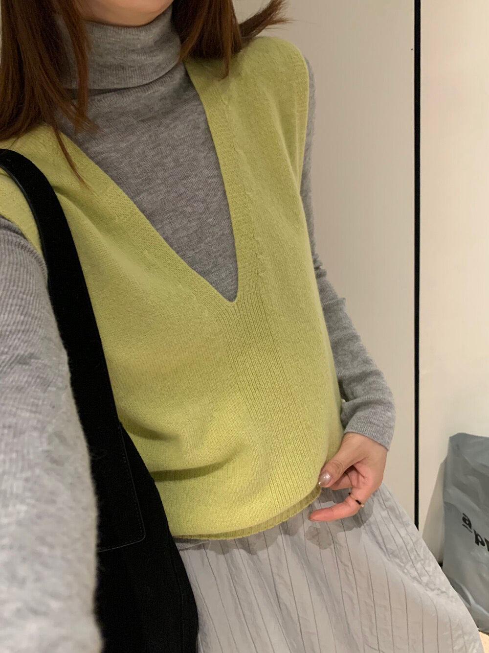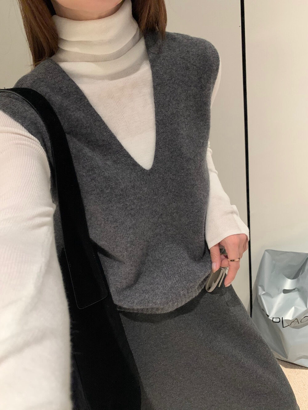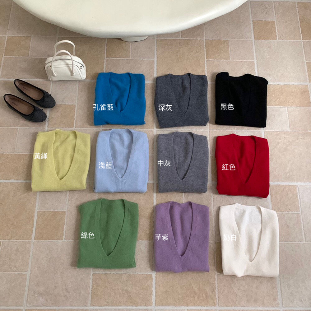 // 無縫一體疊穿必入深v 100%羊毛背心