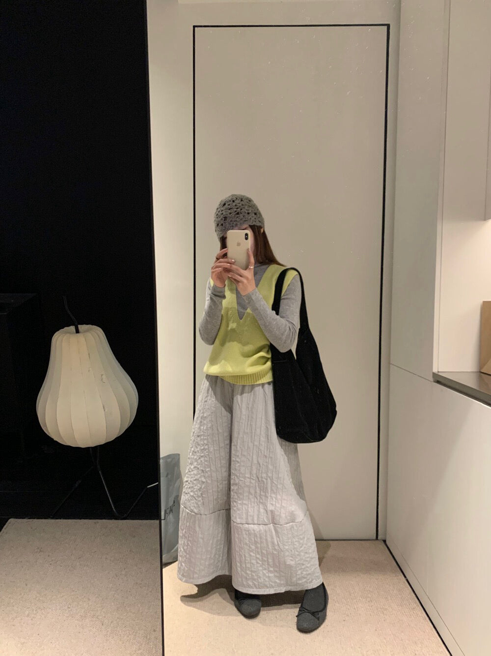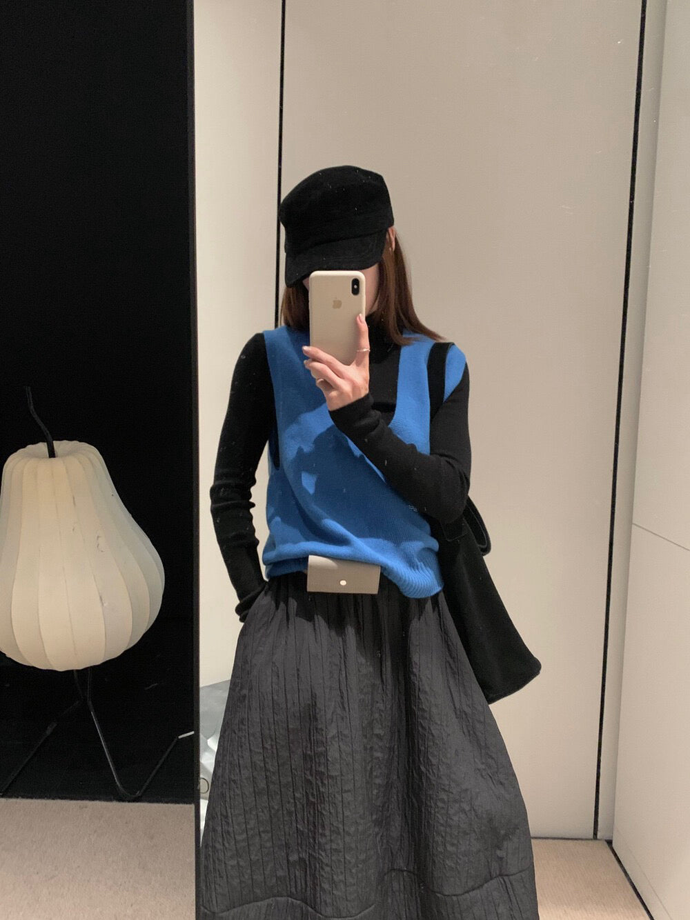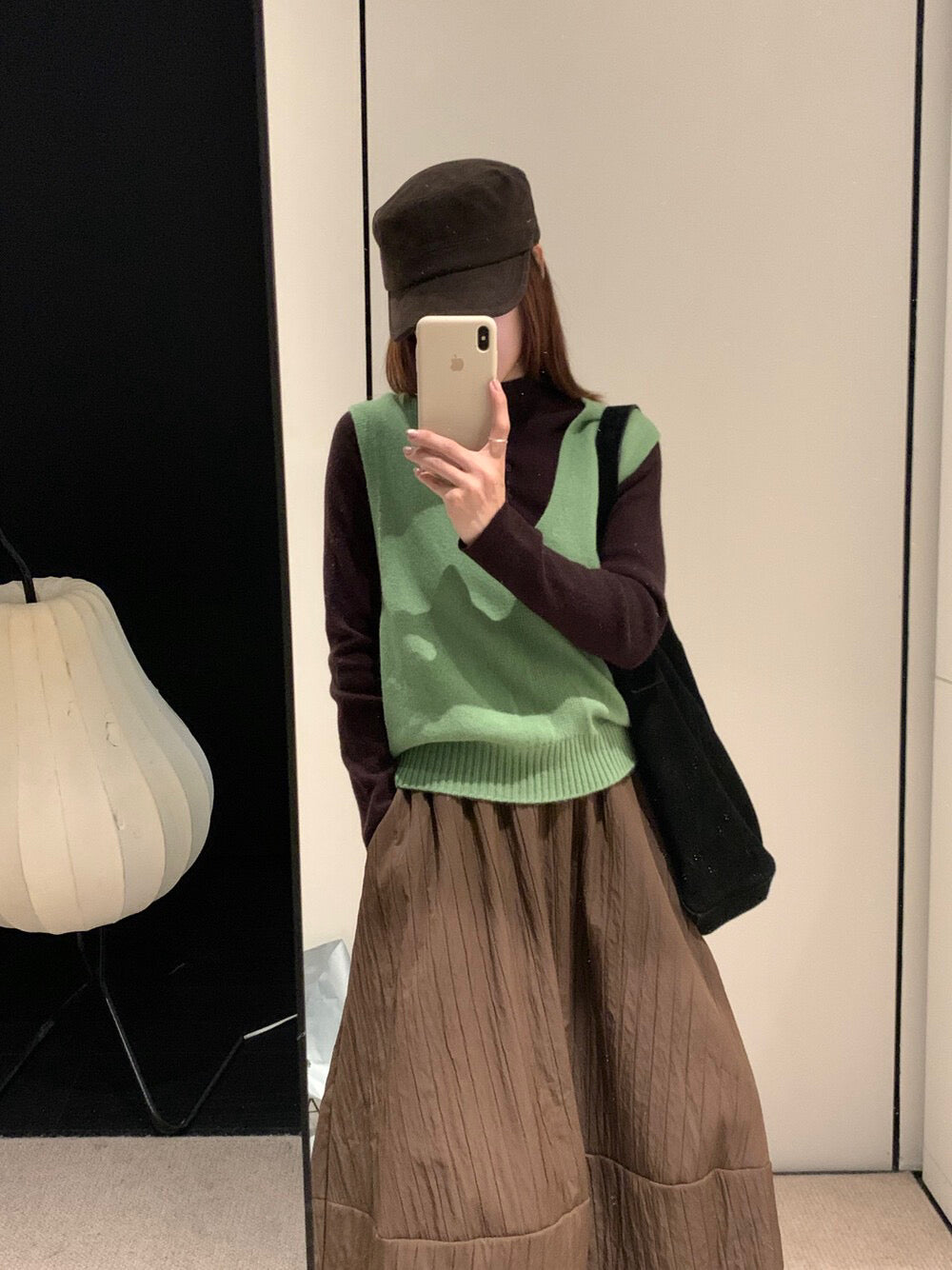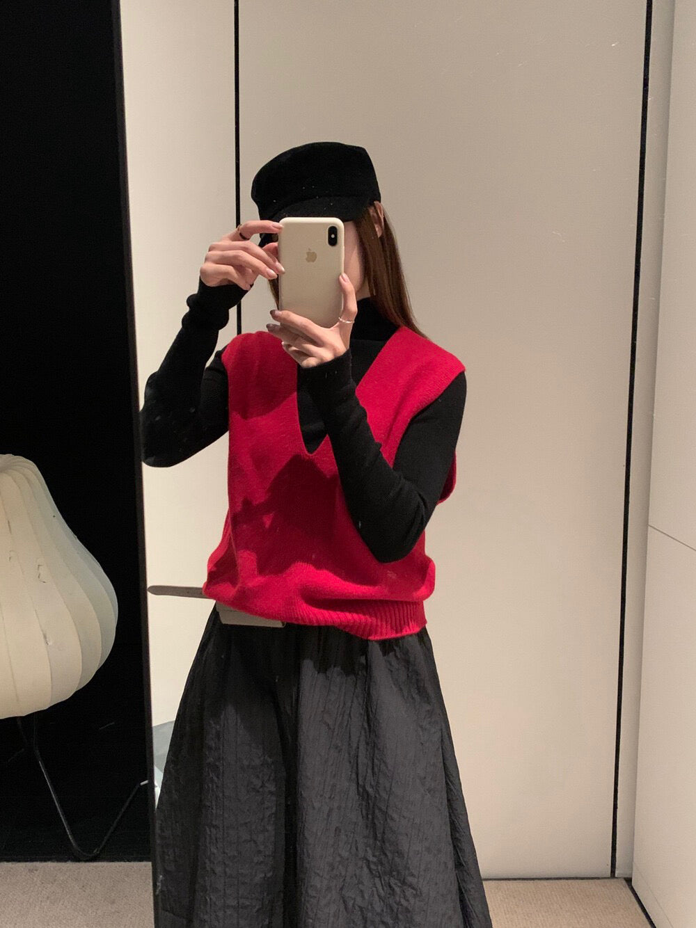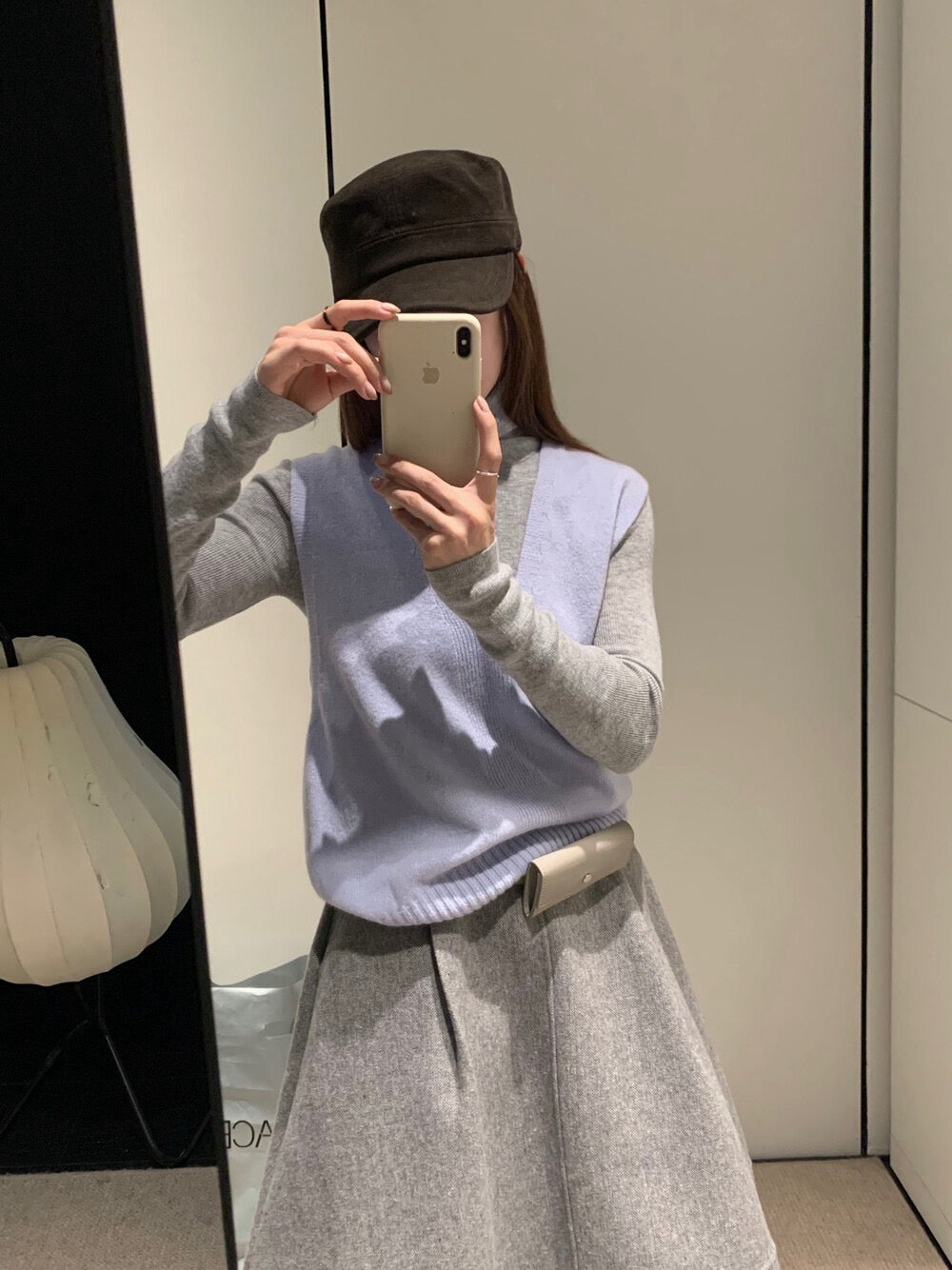 // 無縫一體疊穿必入深v 100%羊毛背心