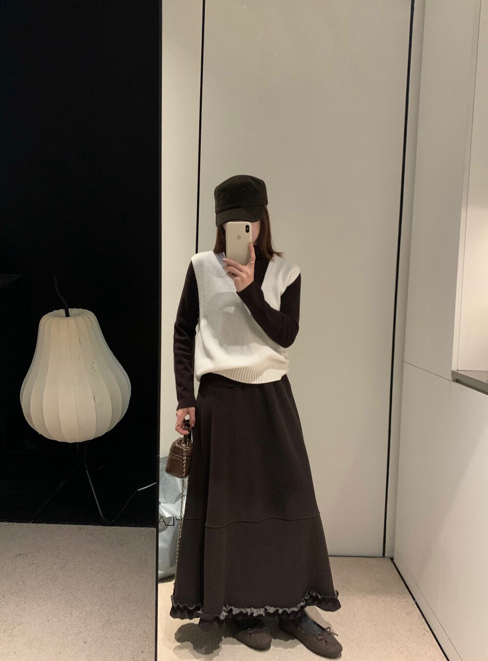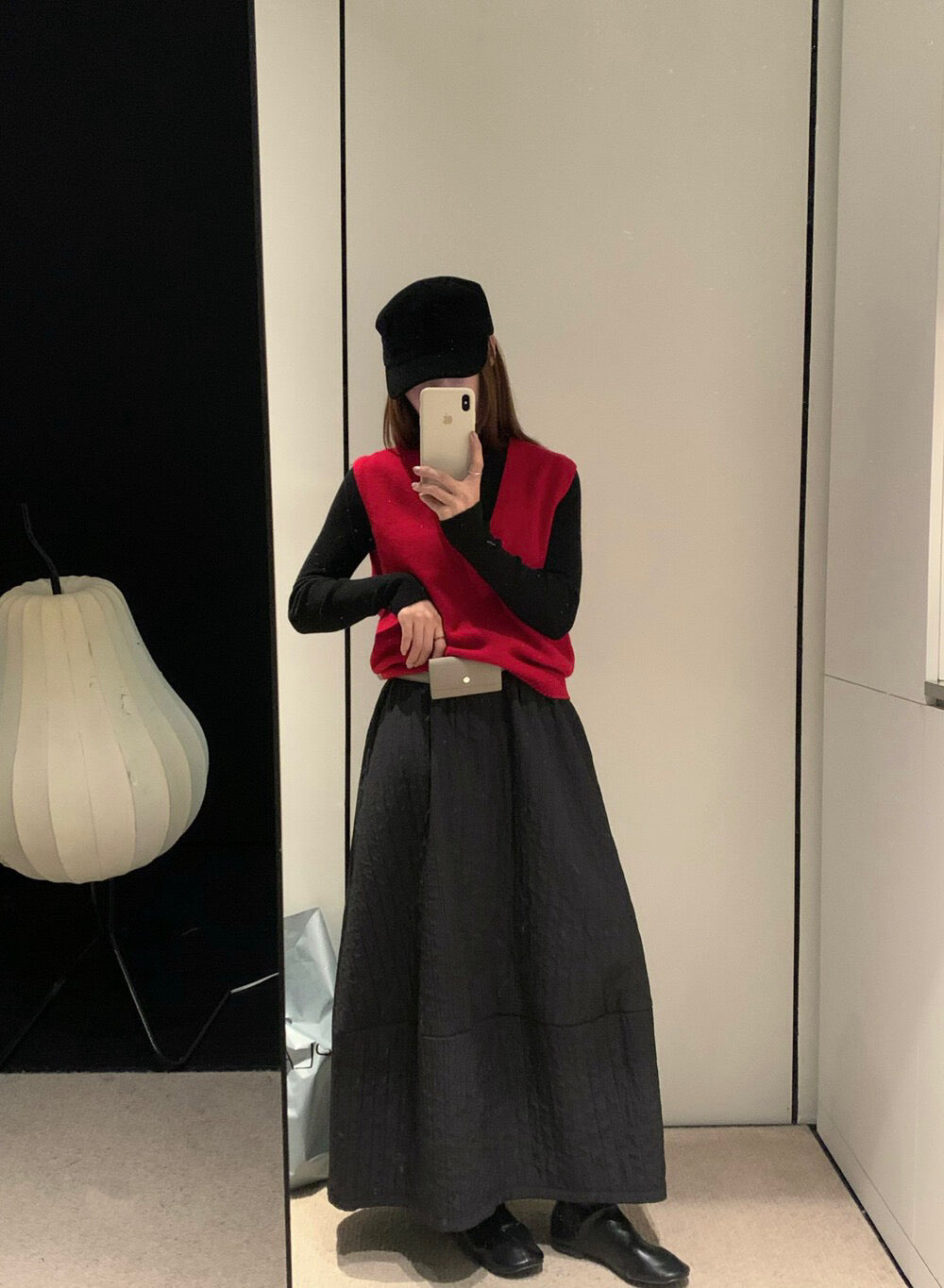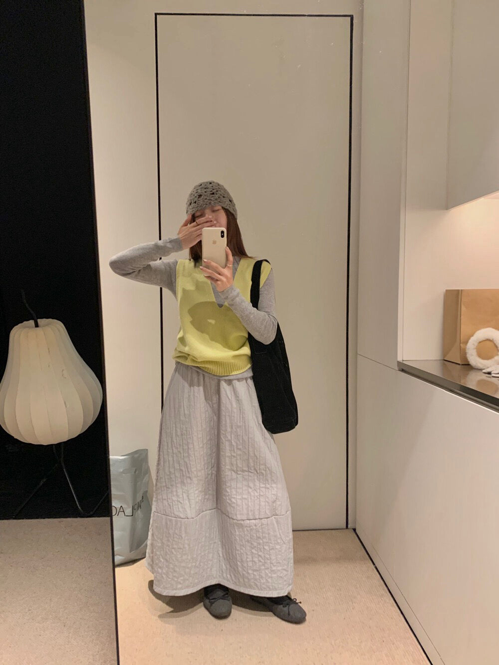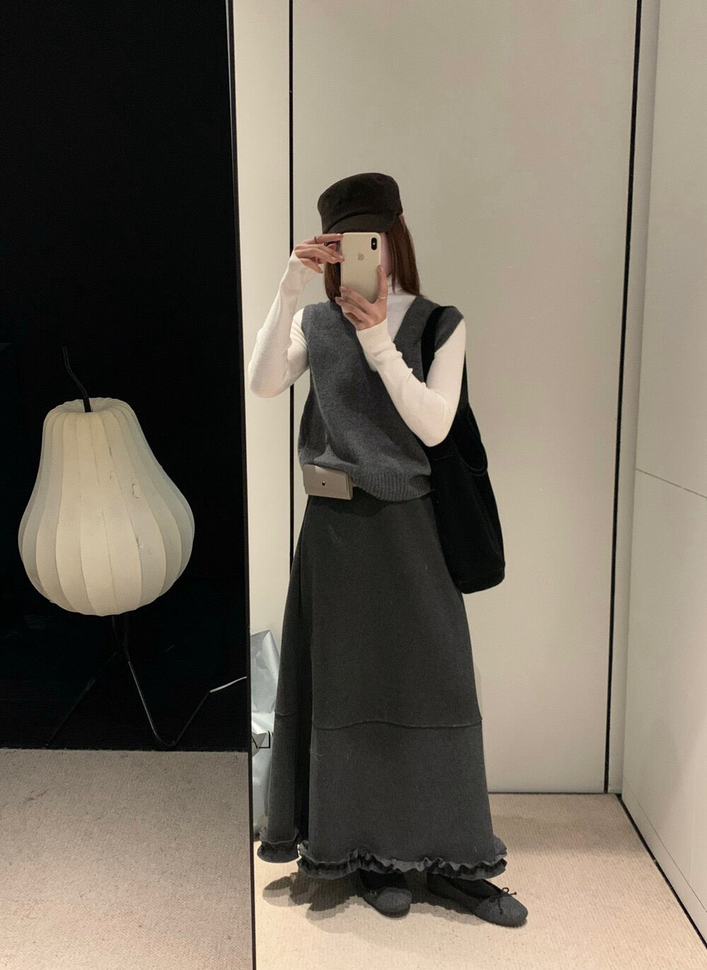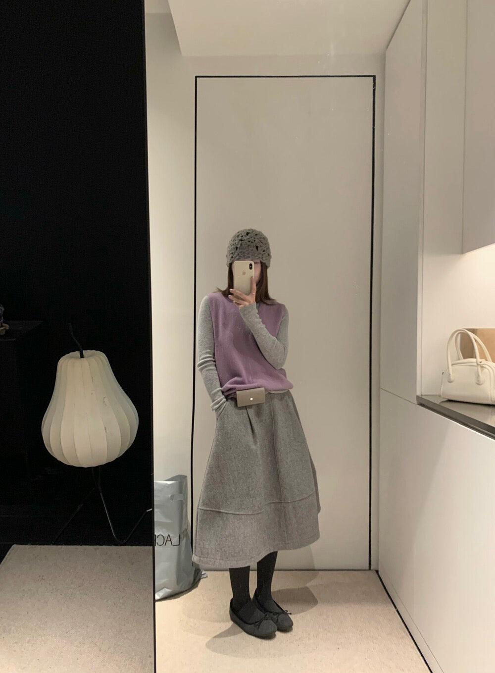 // 無縫一體疊穿必入深v 100%羊毛背心