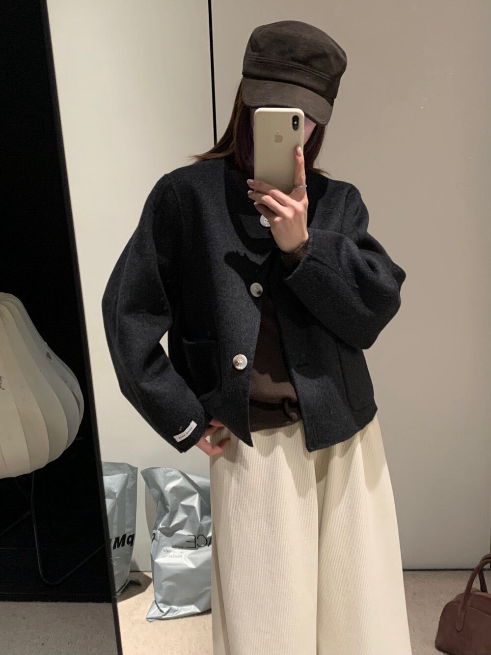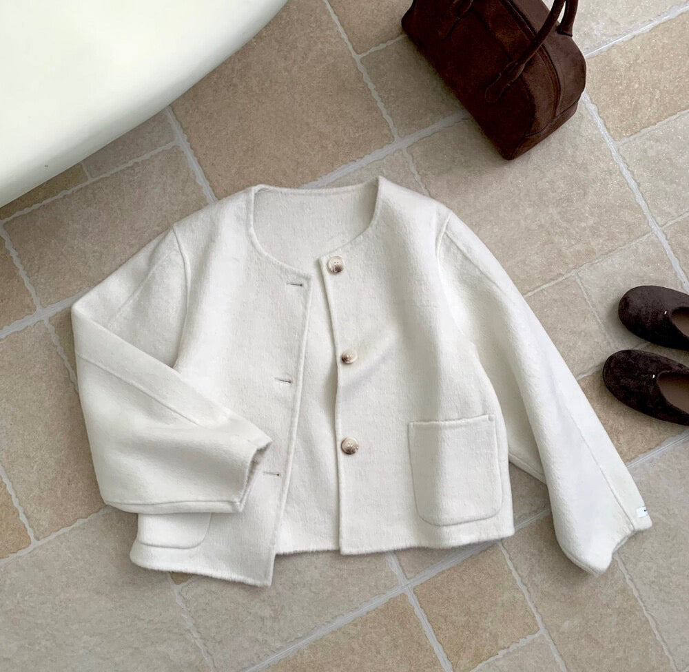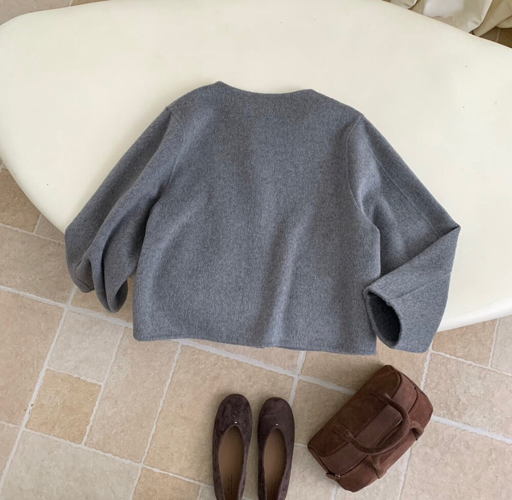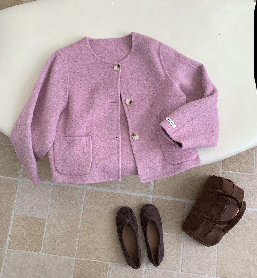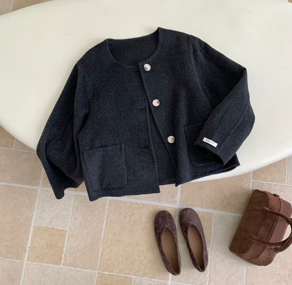 // 福利款!100%羊毛圓領簡約手工外套