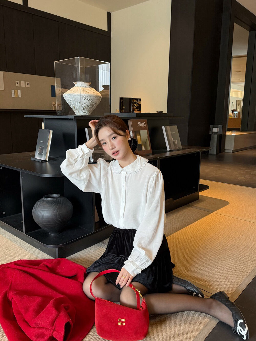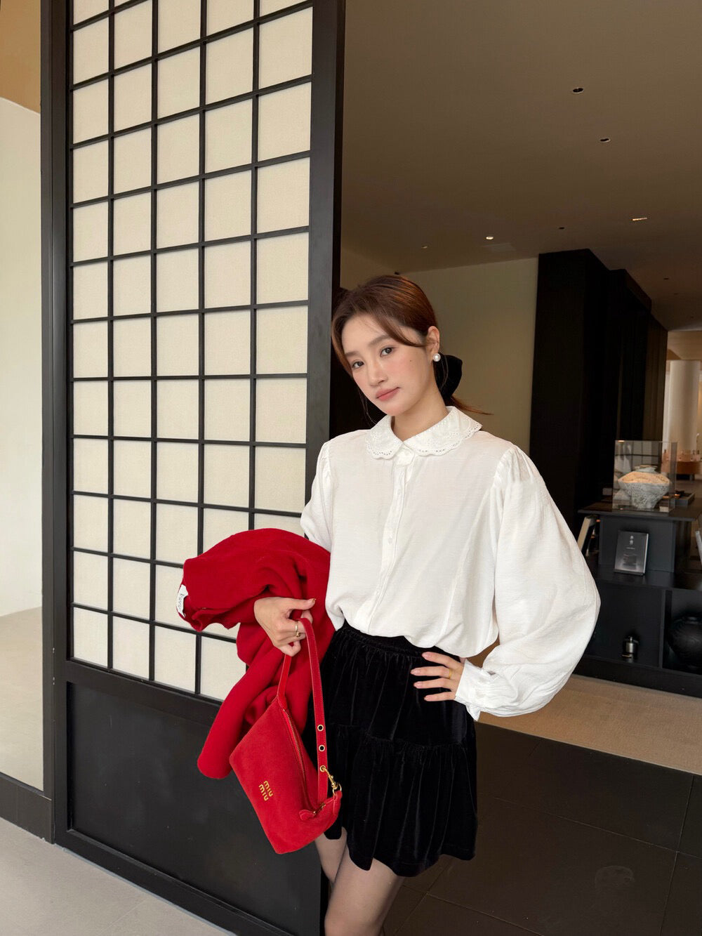 // 精緻花邊刺繡圓翻領BL