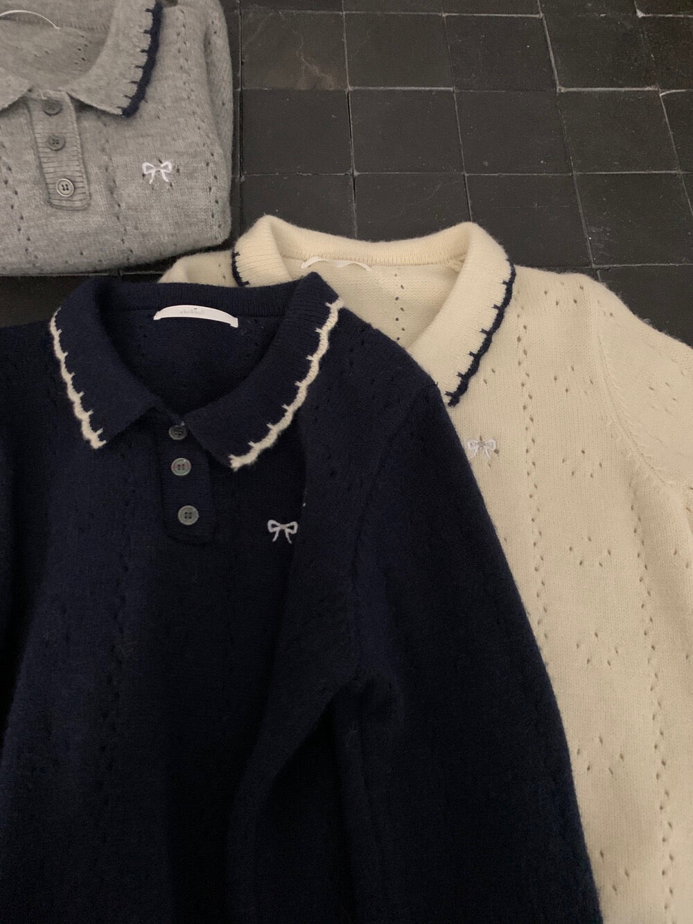 // 精緻蝴蝶結刺繡撞色包邊鈎花NT