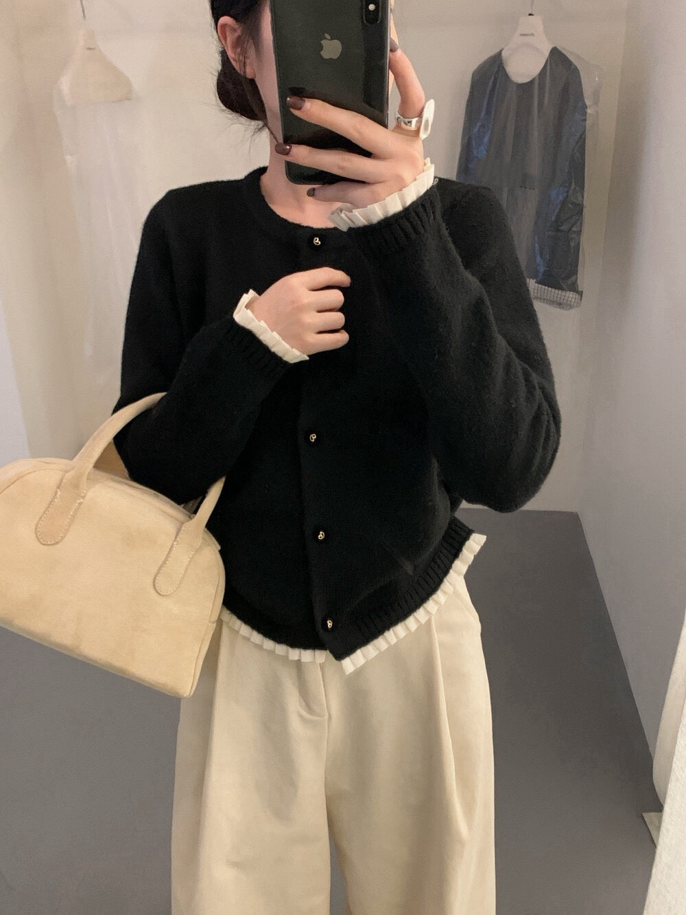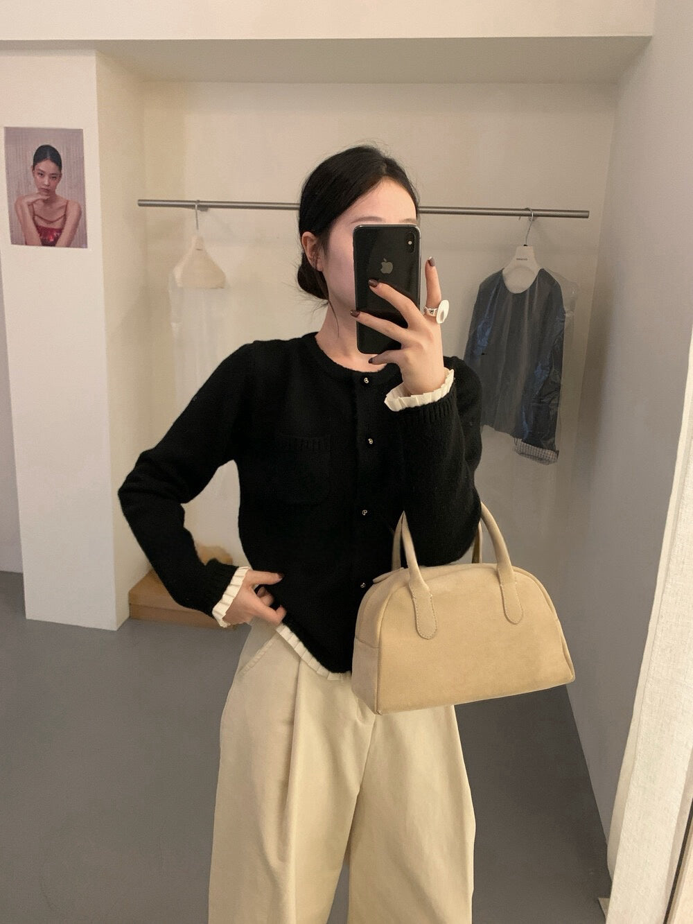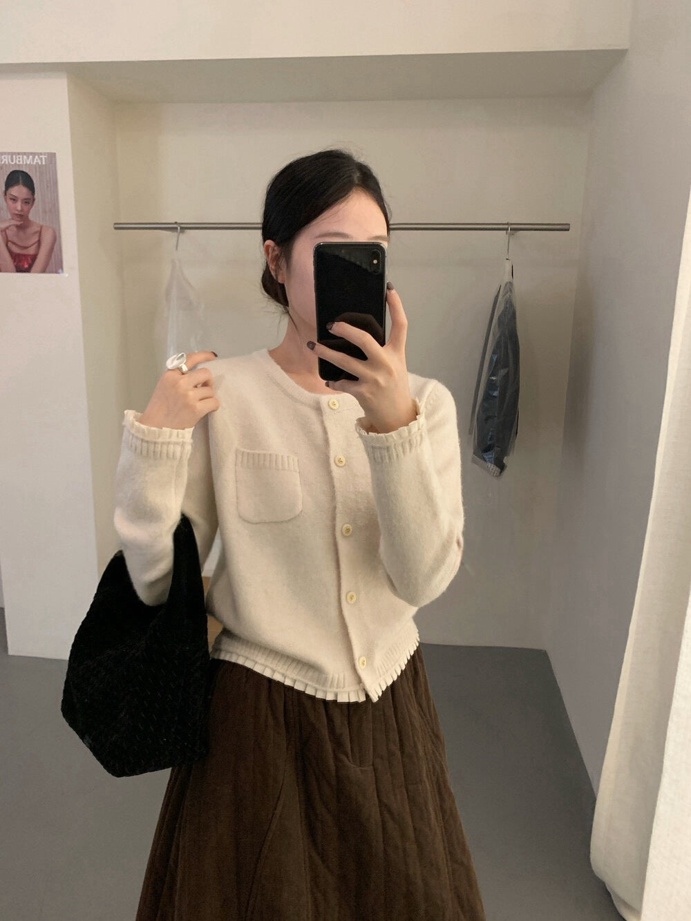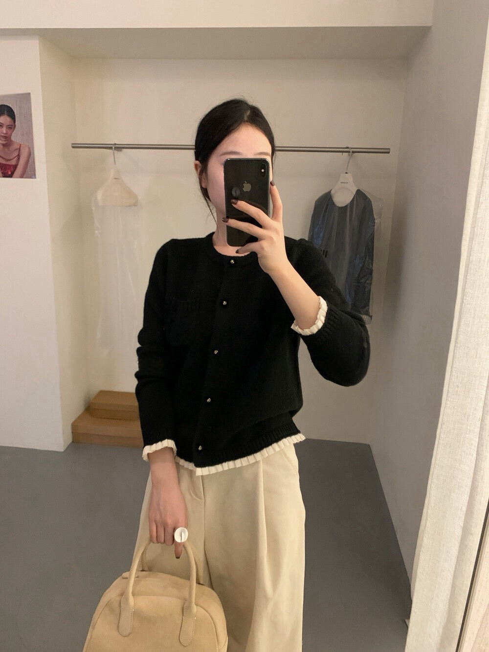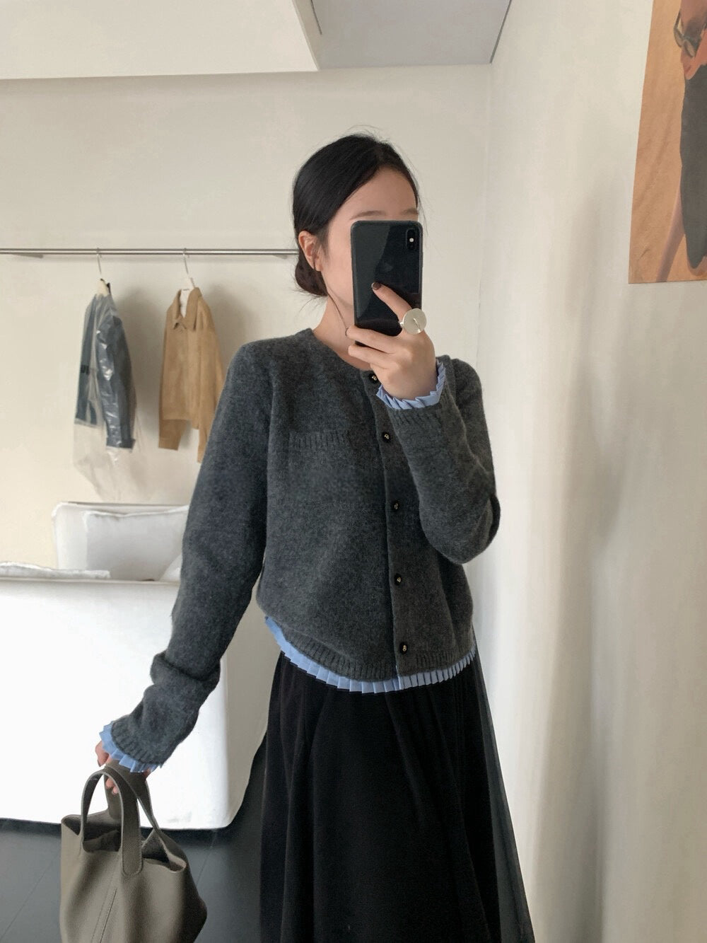 // 精緻鈕扣拼接百褶邊口袋軟糯CD