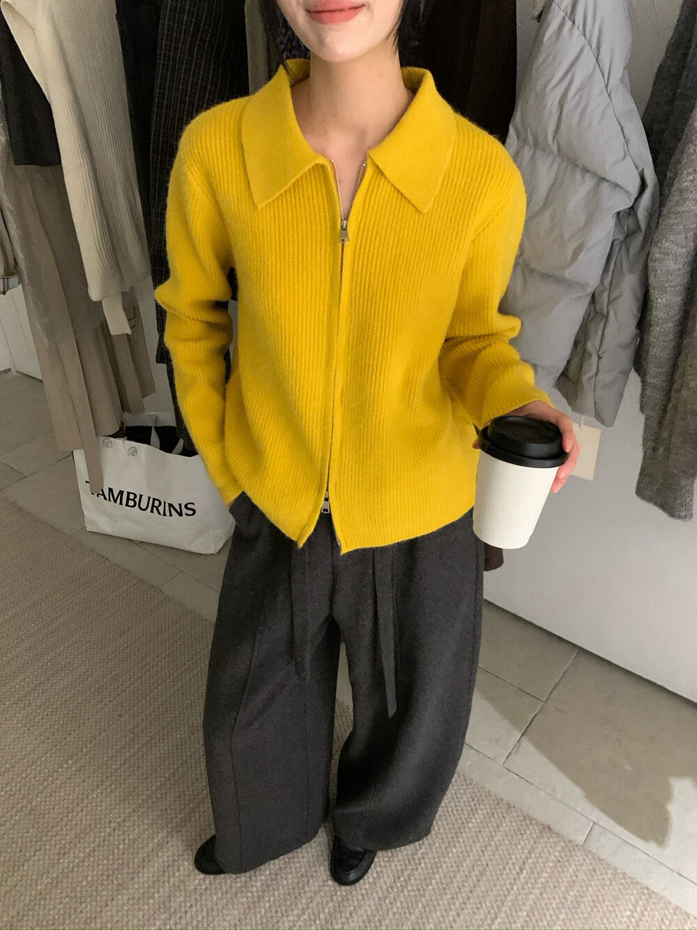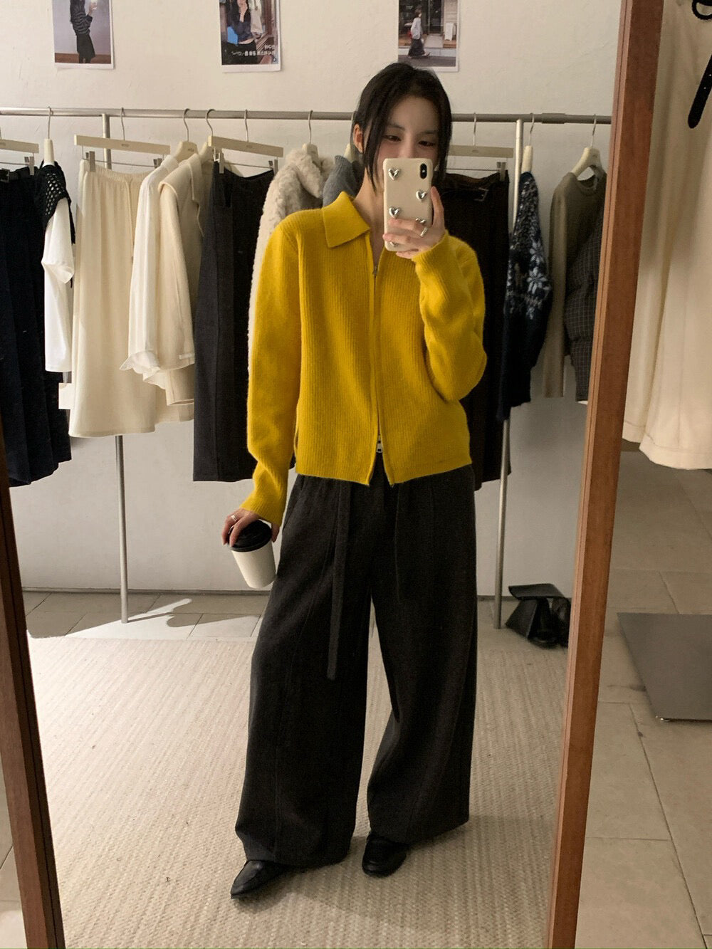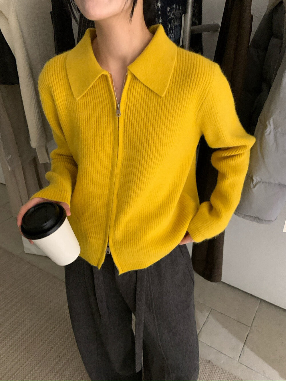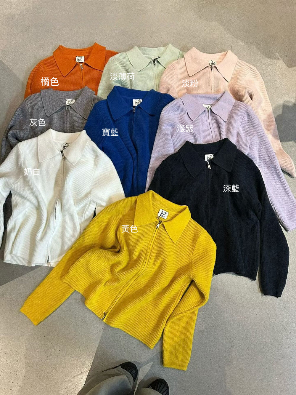 // 細直坑紋翻領上下拉鍊CD