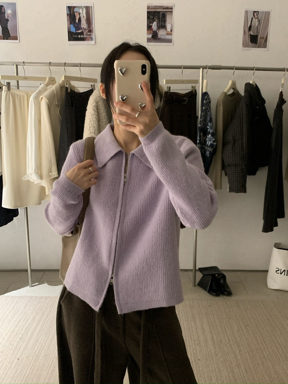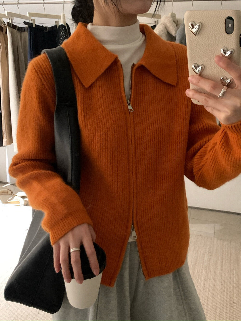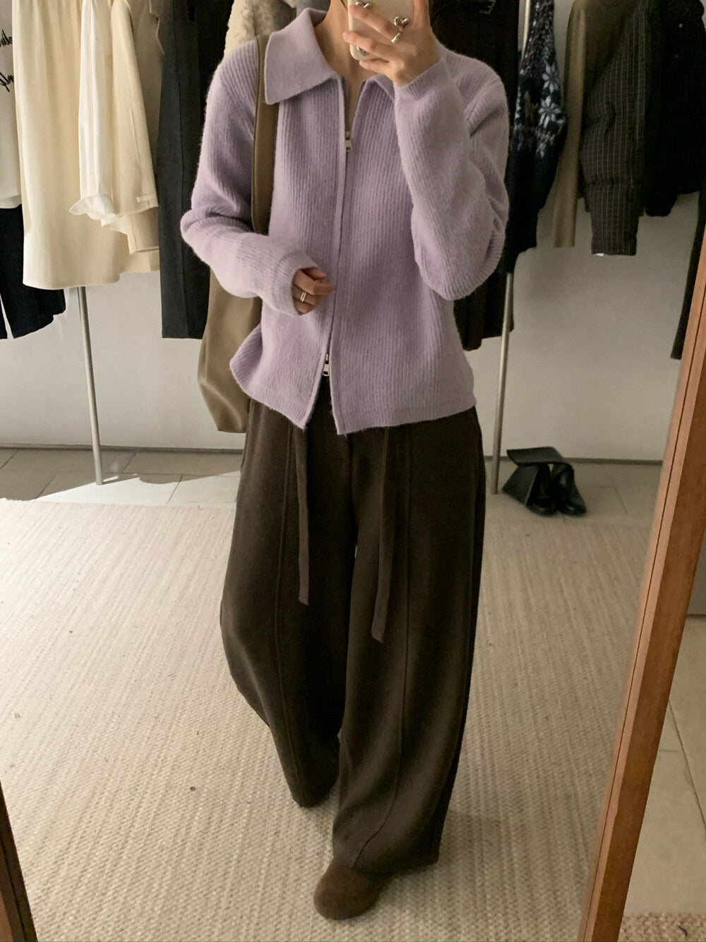 // 細直坑紋翻領上下拉鍊CD