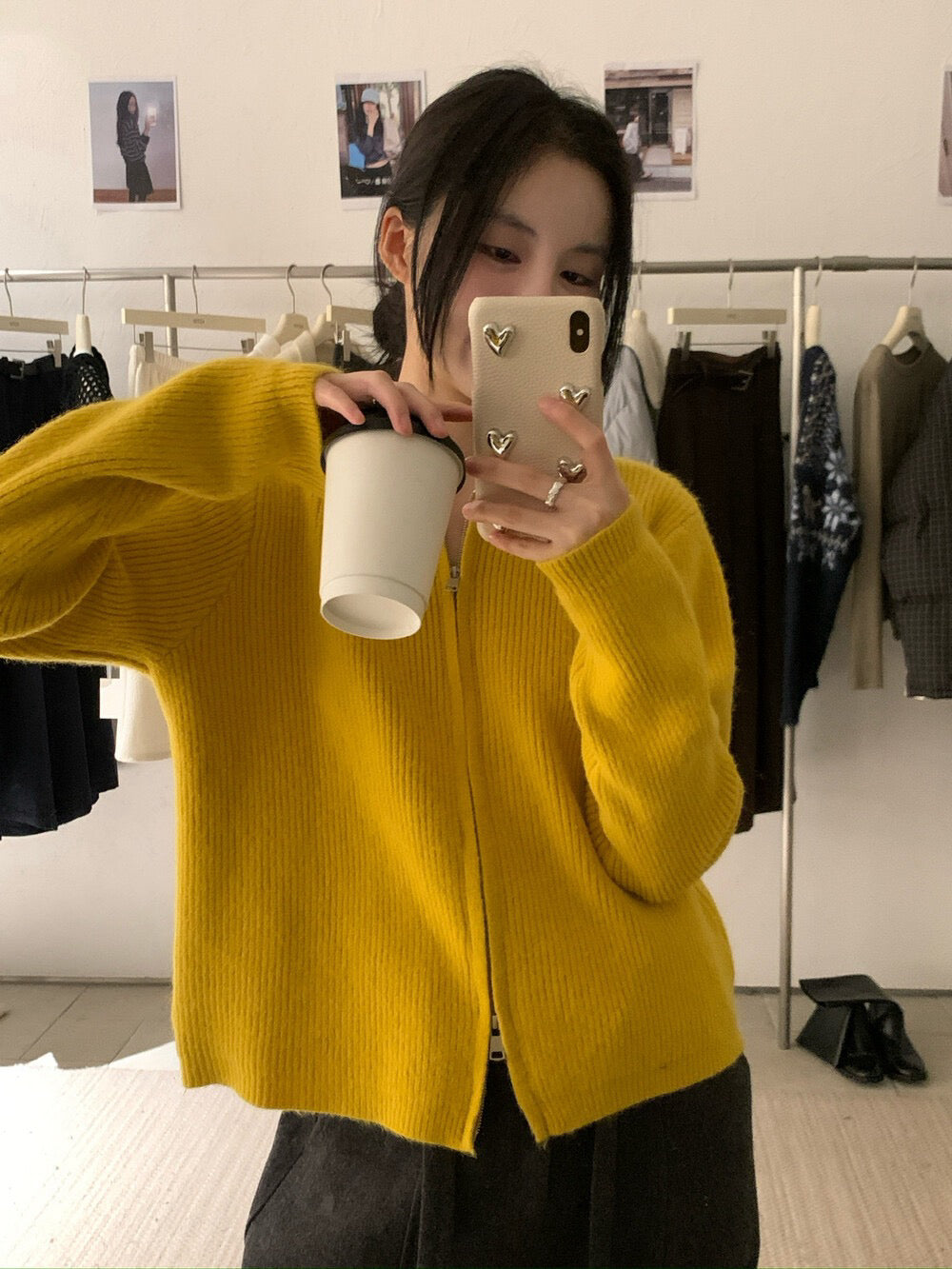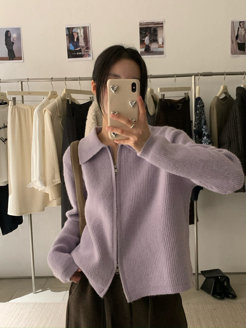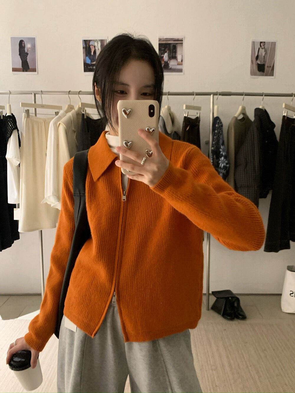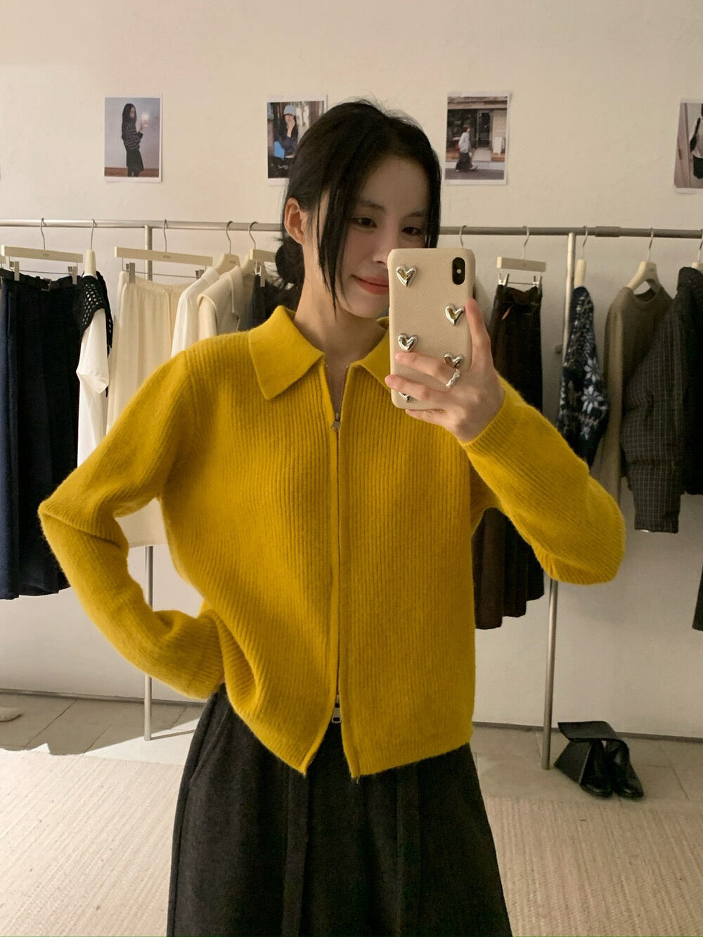 // 細直坑紋翻領上下拉鍊CD