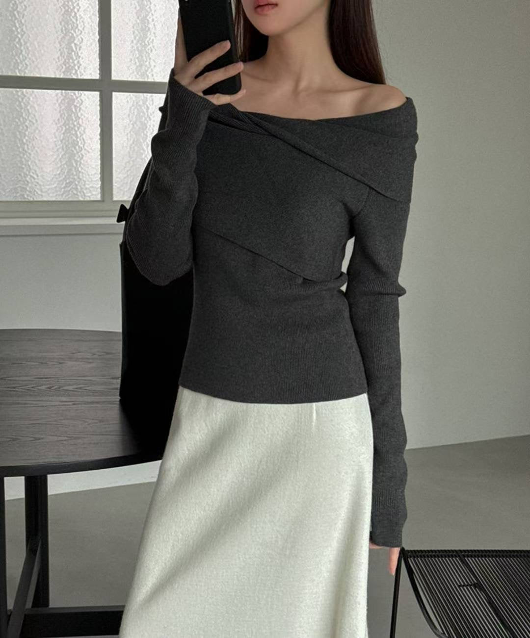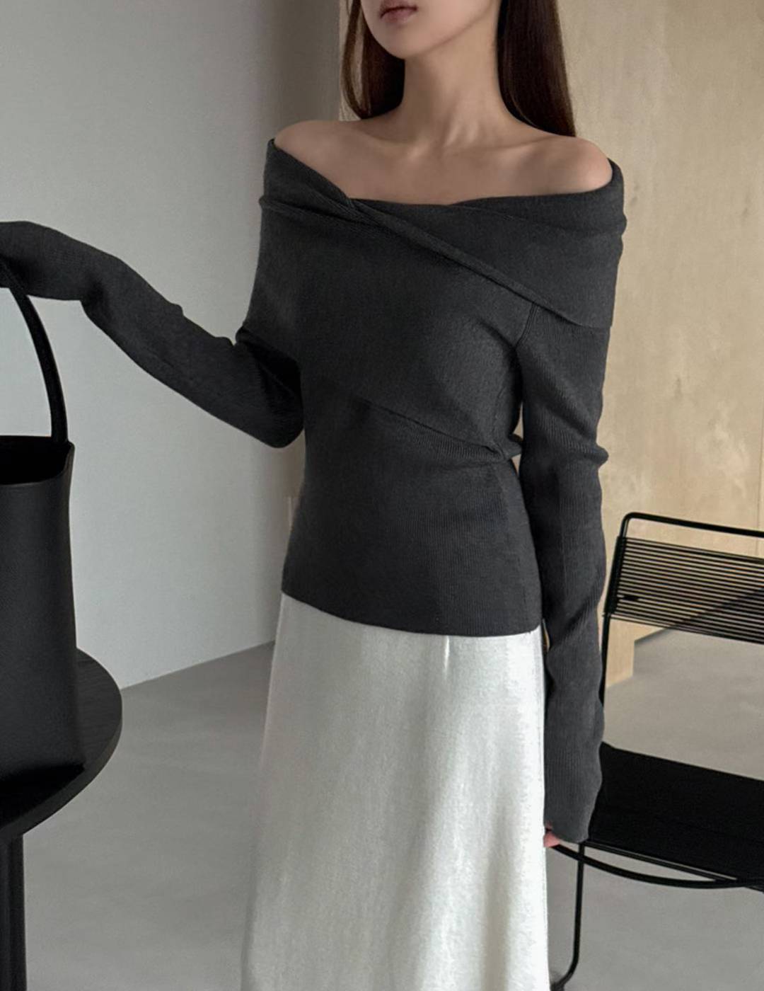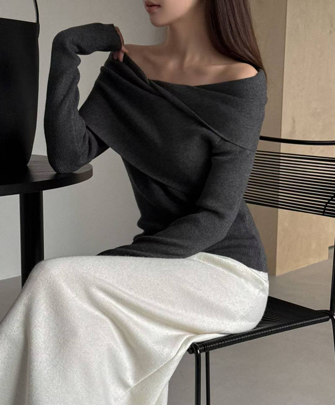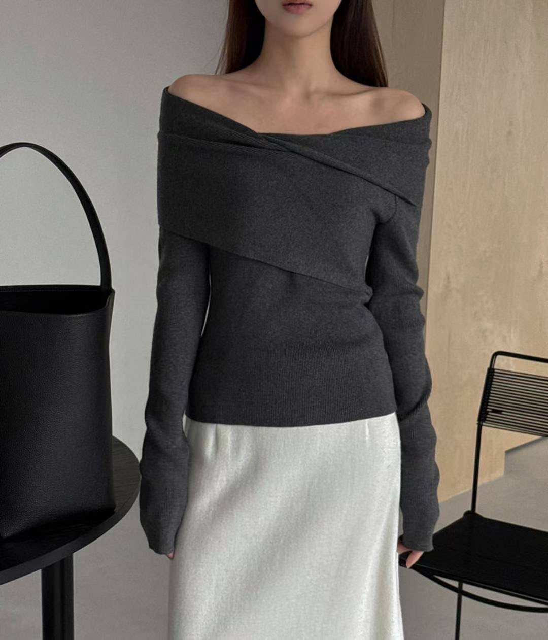 // 設計感交叉一字領小性感NT