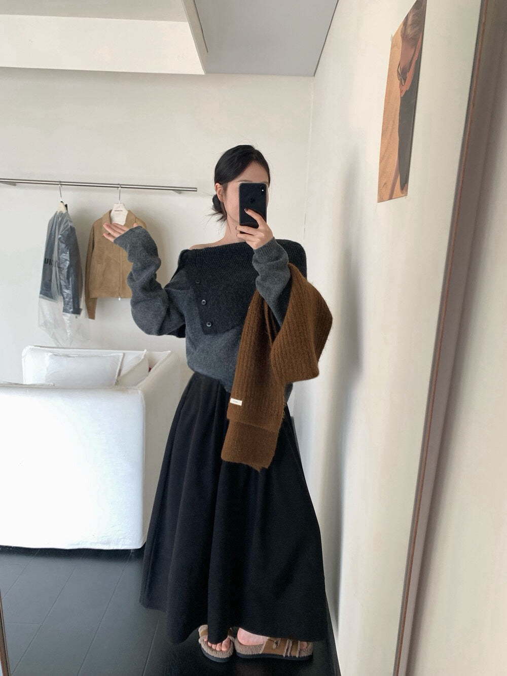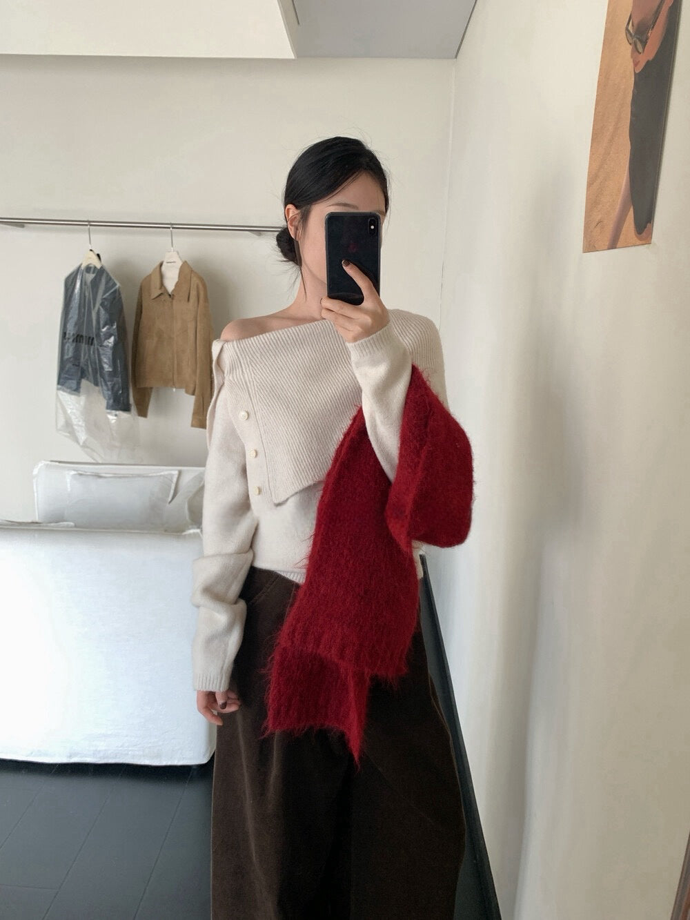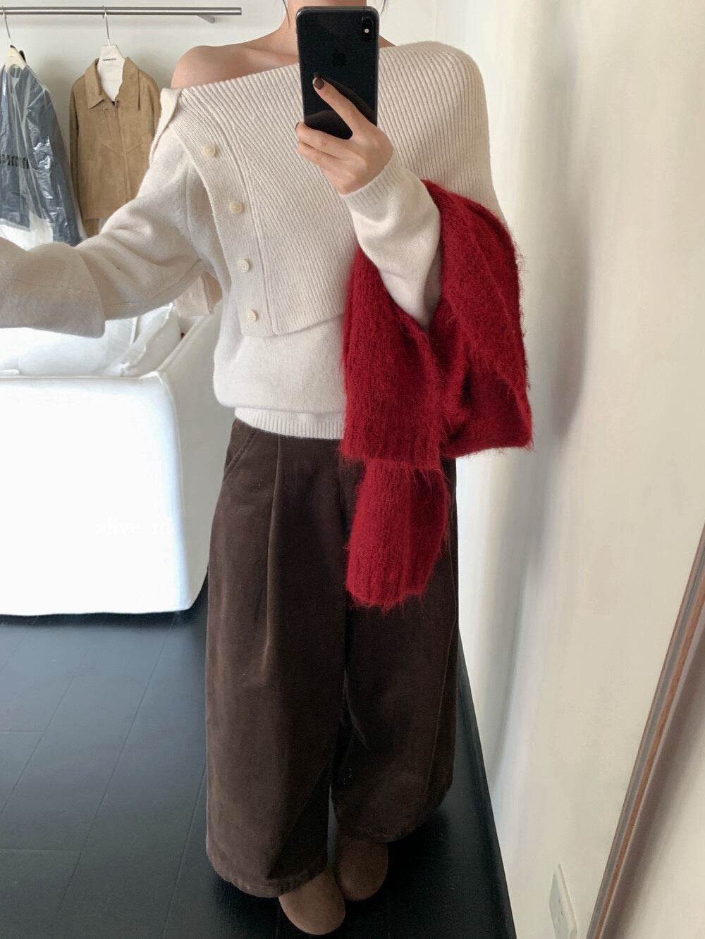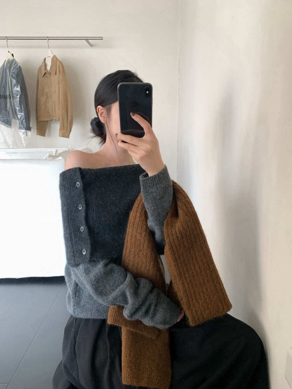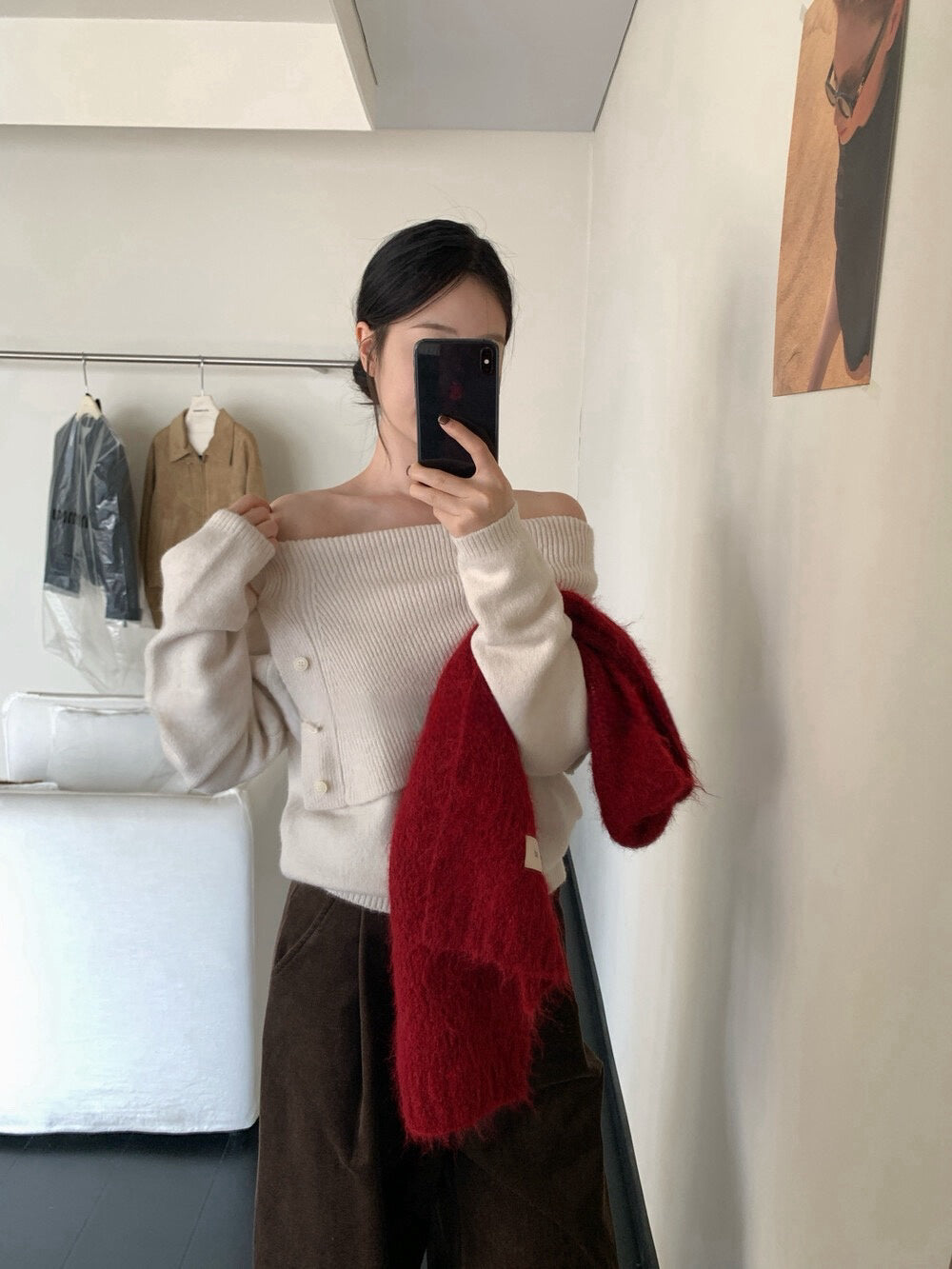 // 設計感側鈕扣雙層領一字領NT