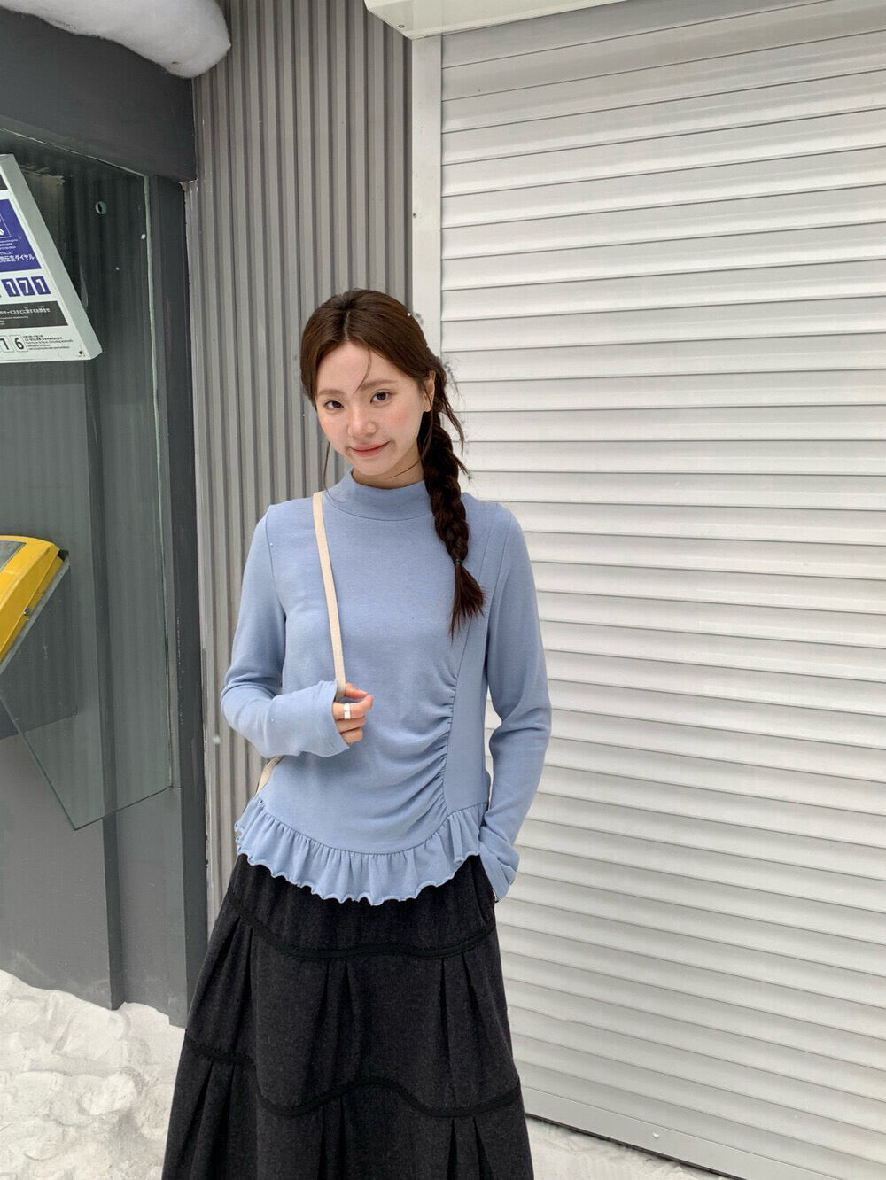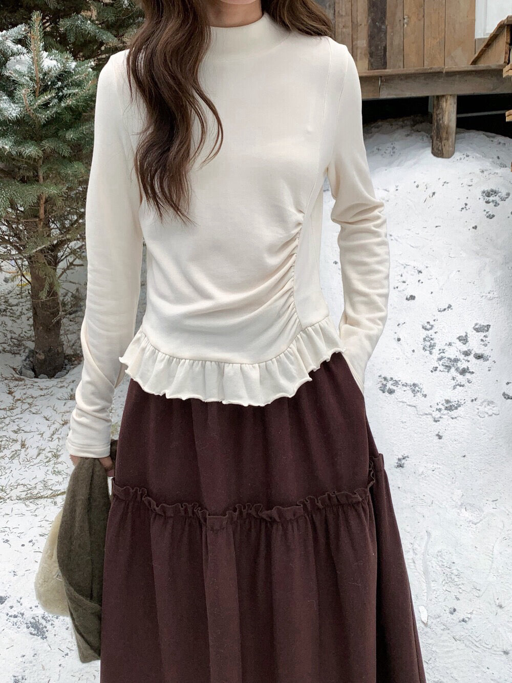 // 設計感皺褶小立領花邊上衣