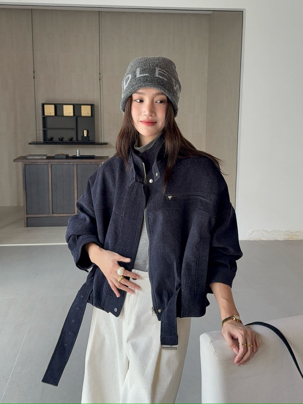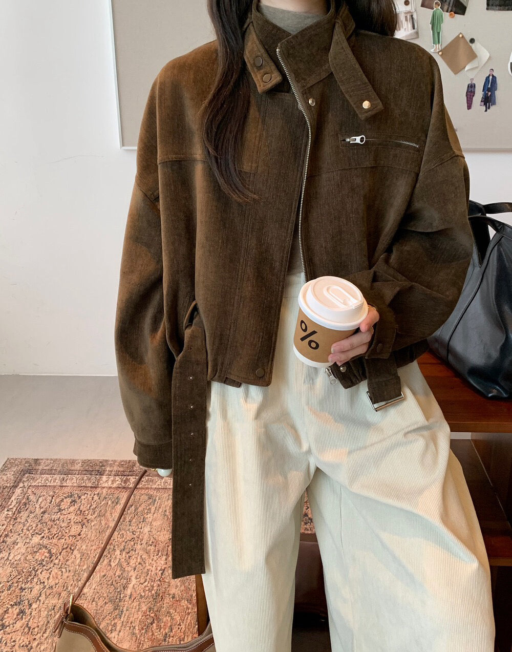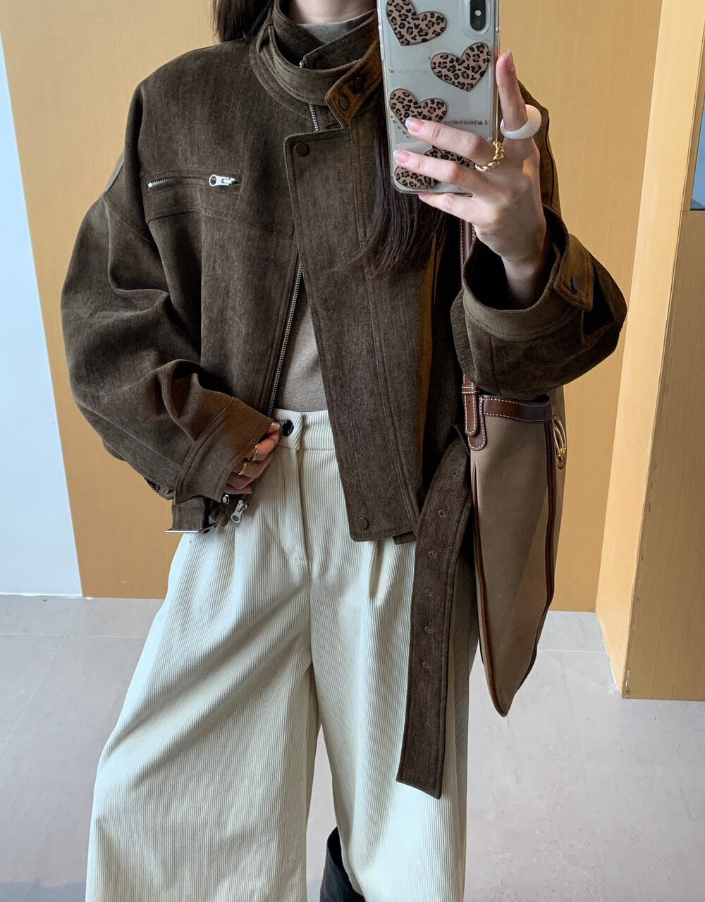 // 質感超好的雪尼爾絨帥氣短款外套