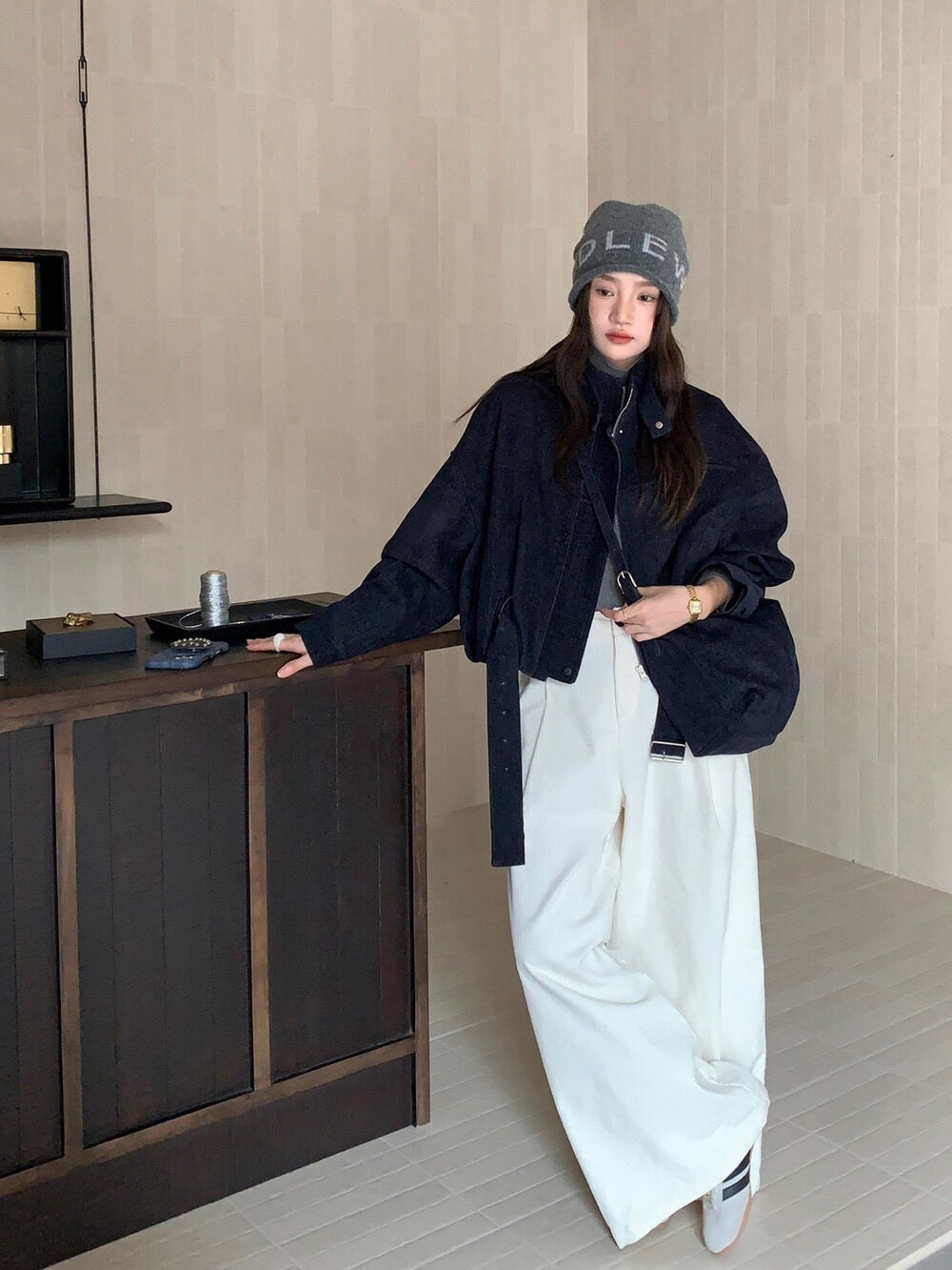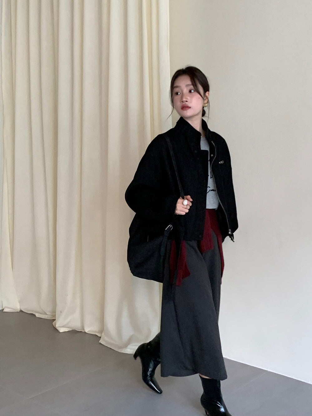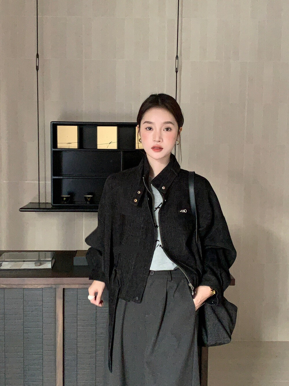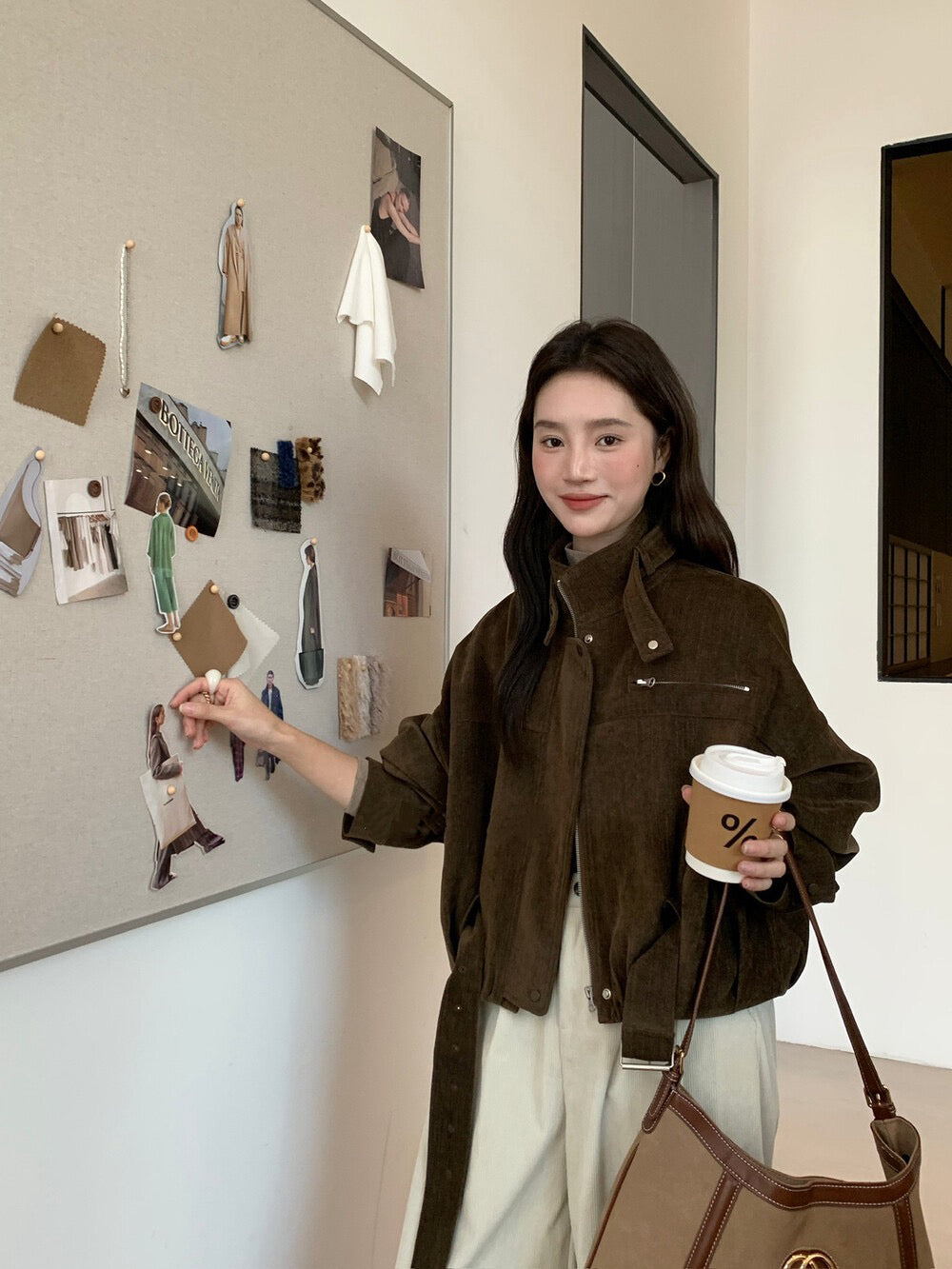 // 質感超好的雪尼爾絨帥氣短款外套