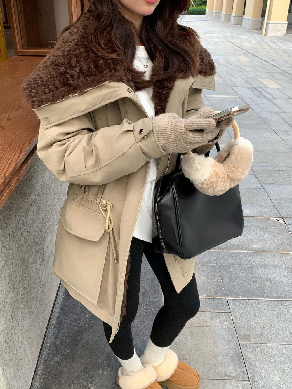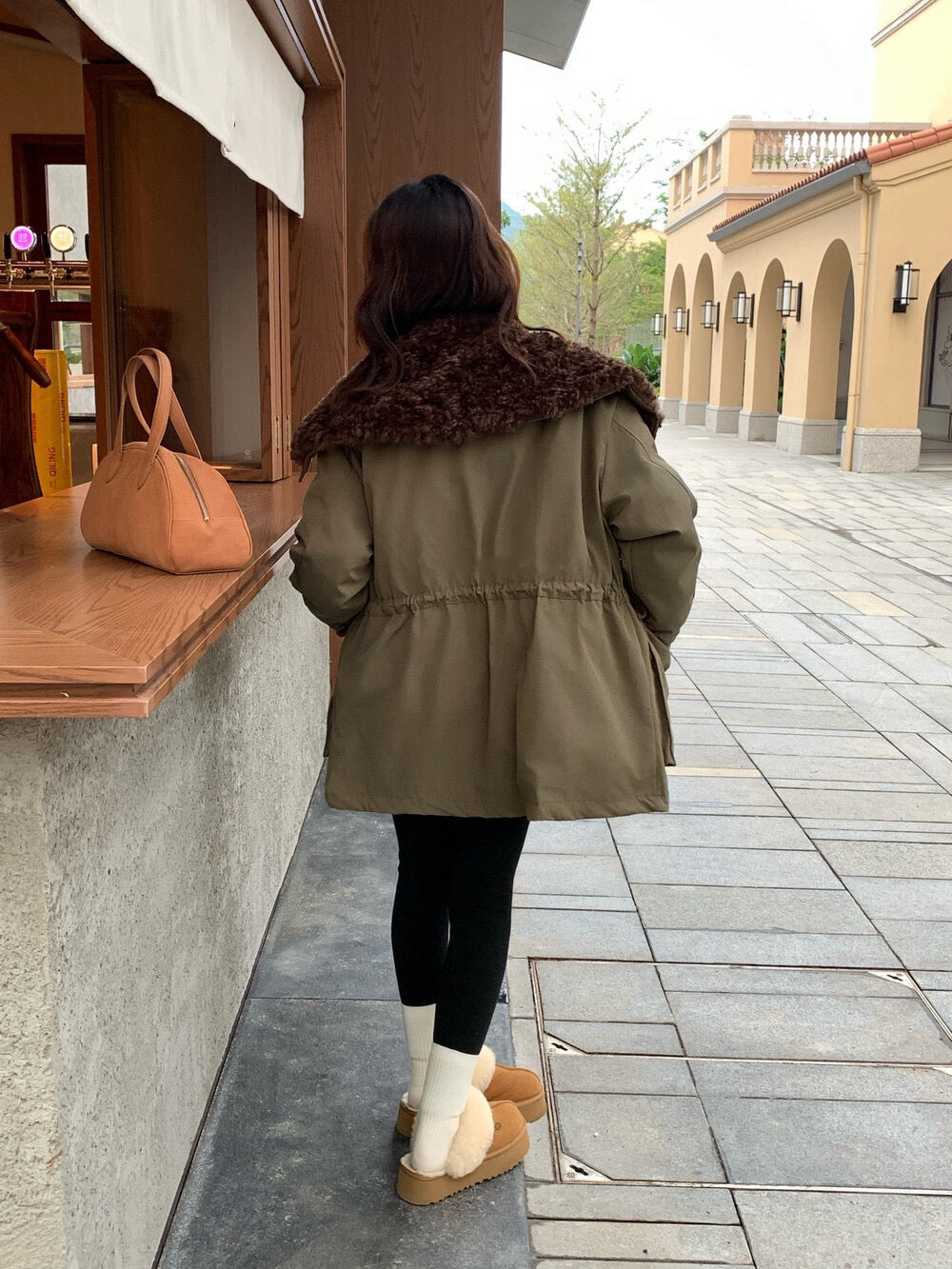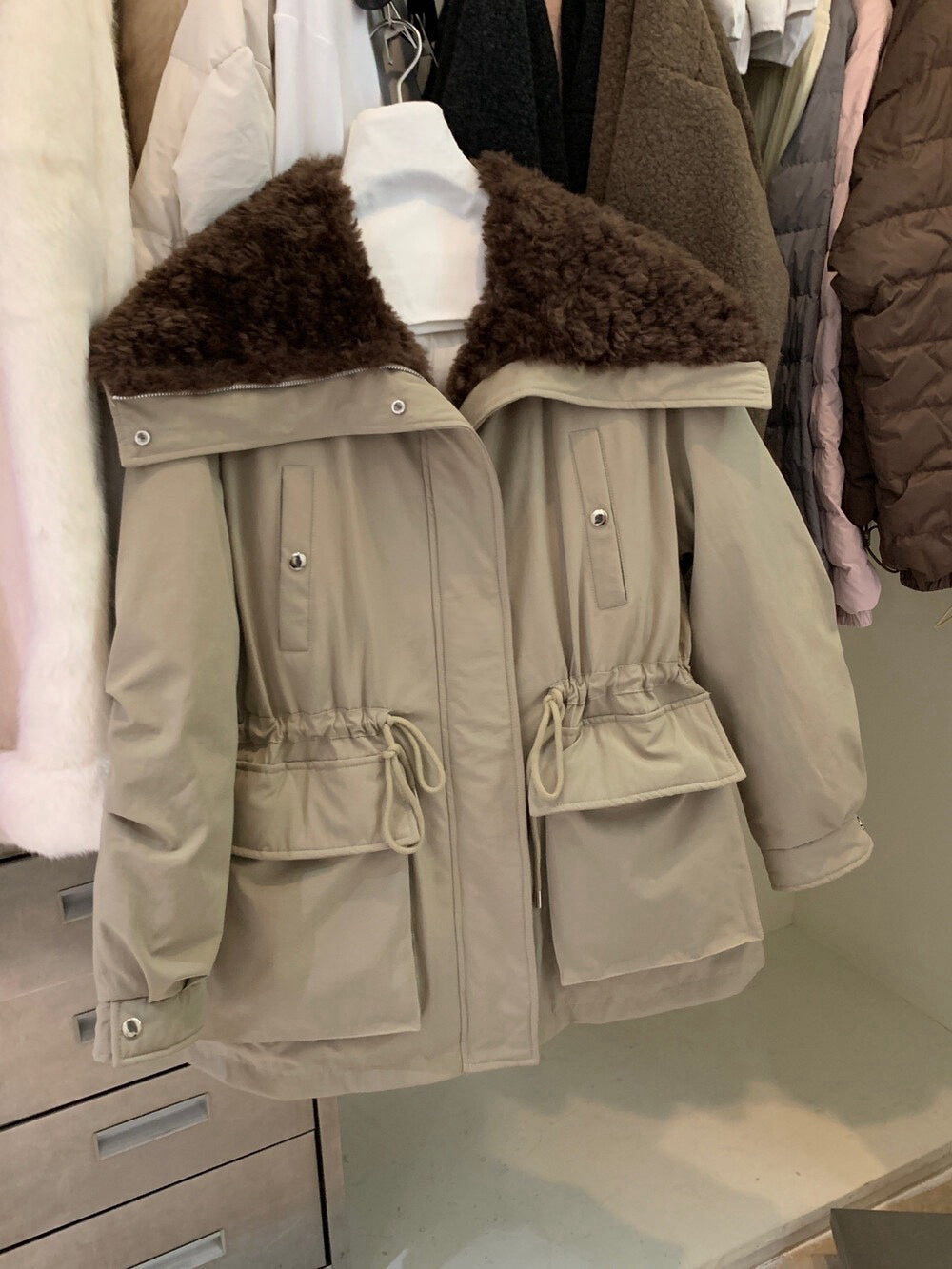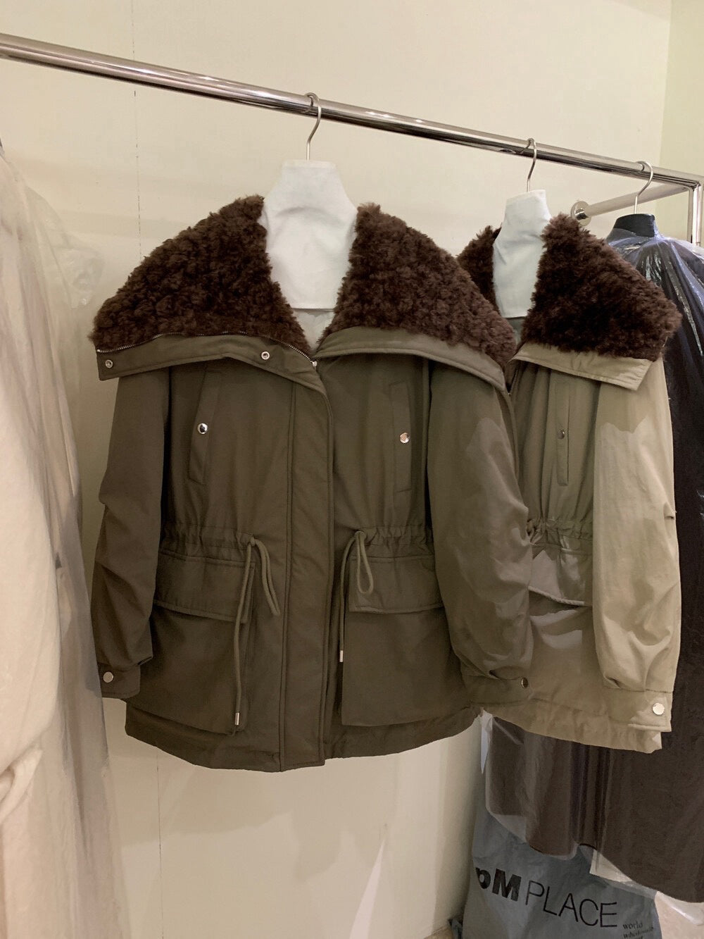 // 超帥大毛毛翻領可束腰口袋工裝外套