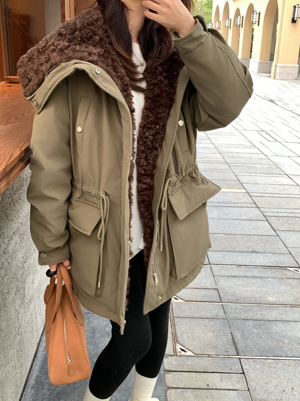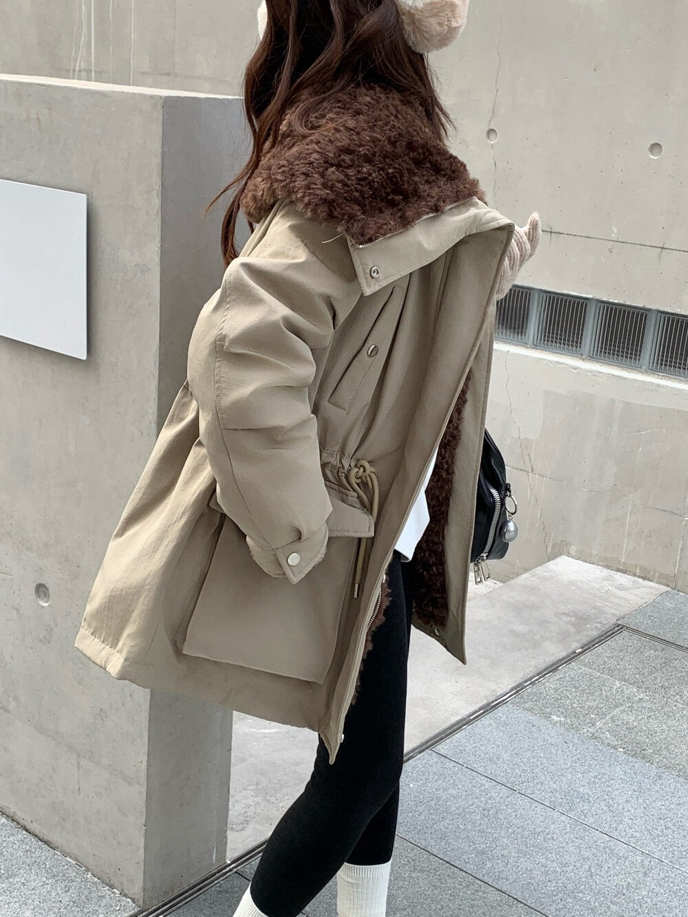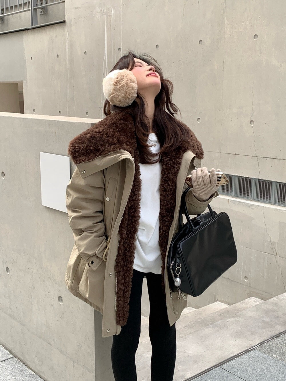 // 超帥大毛毛翻領可束腰口袋工裝外套
